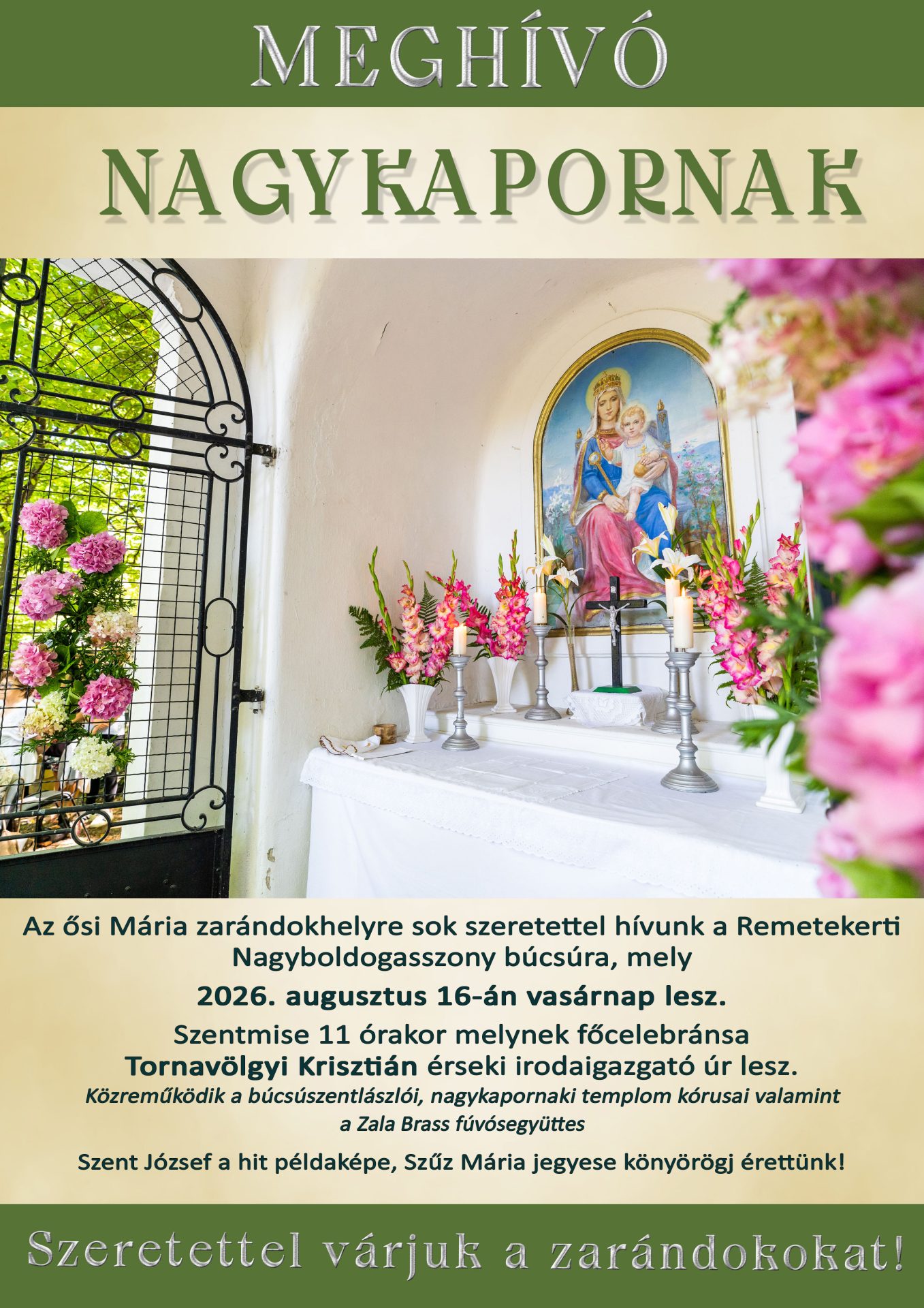 A Veszprémi Főegyházmegye területén, Zala megyében fekszik egyetlen kegyhelyünk, mely a nevében is őrzi a „búcsú” megjelölést.
