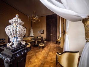 A látogatók végigsétálhatnak a palota reprezentatív szalonjain, ahol eredeti műtárgyak, barokk és rokokó bútorok, velencei tükör, egy reneszánsz táblakép és a frissen restaurált Szent Család festmény fogadja őket.