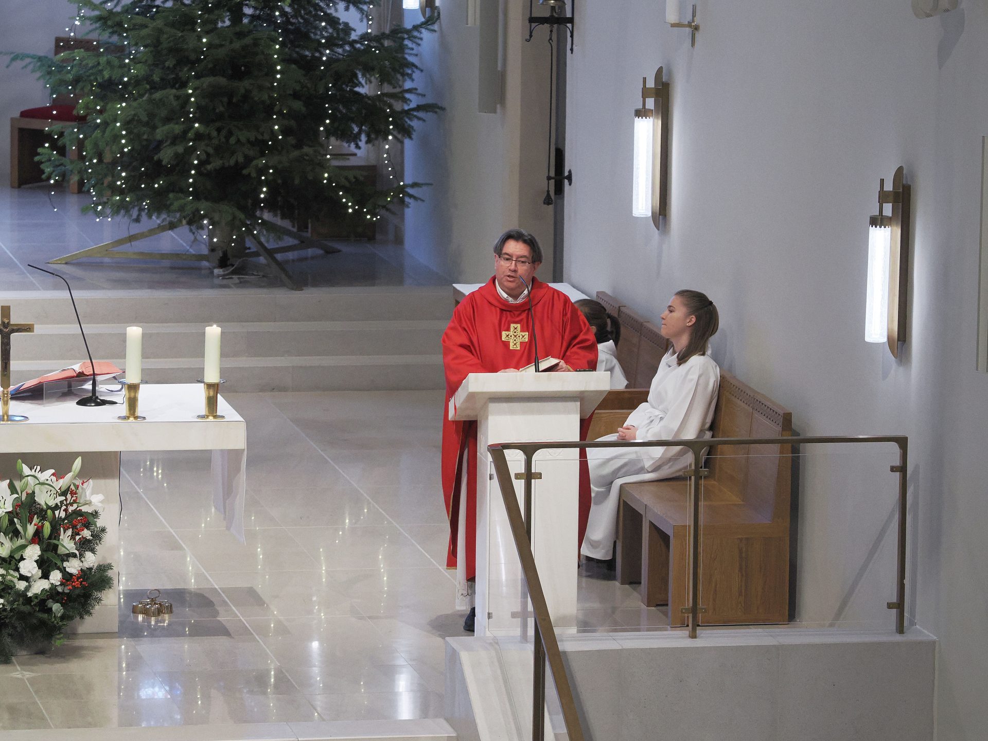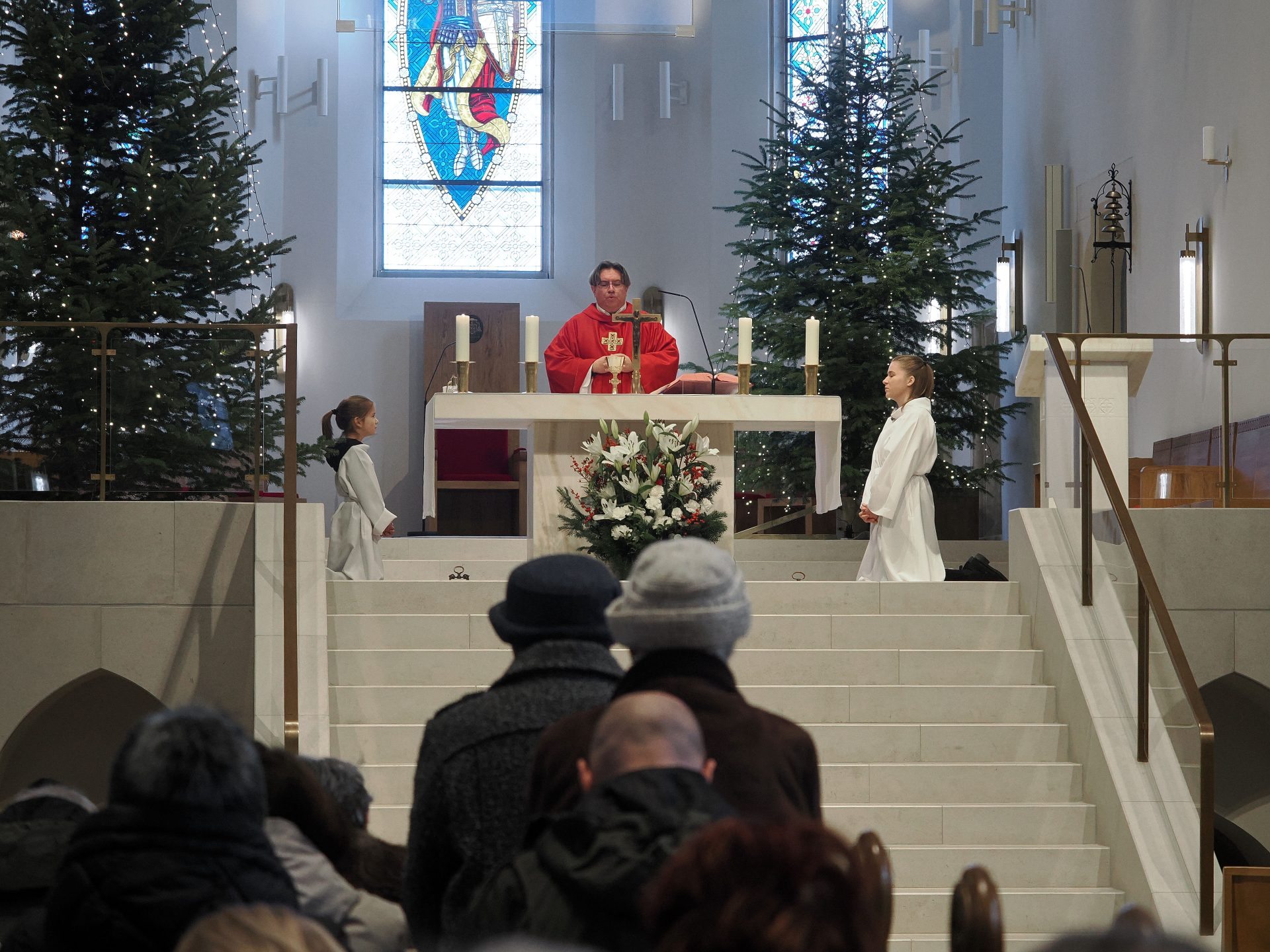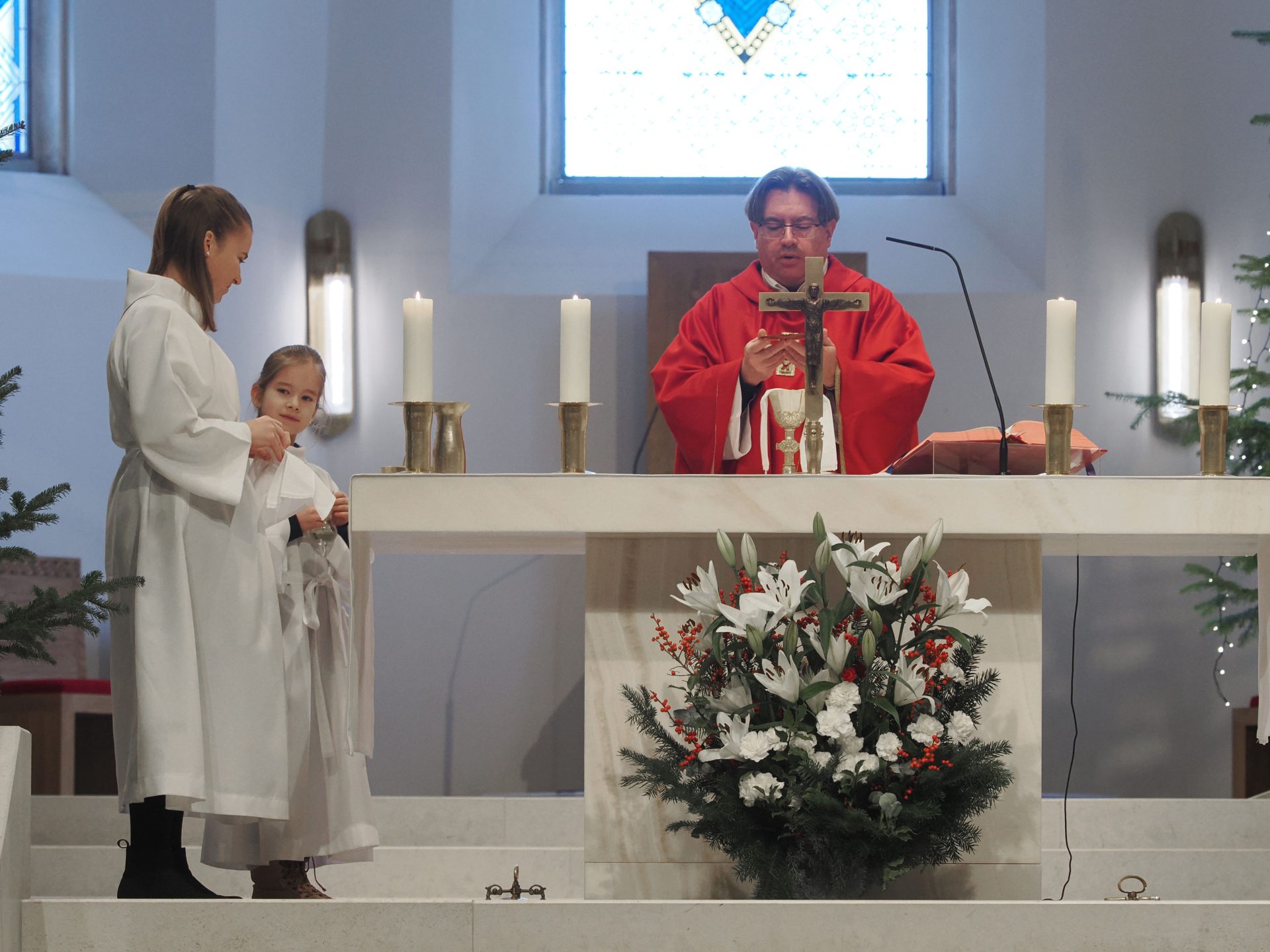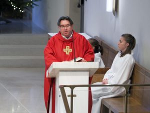 Karácsony másnapján, Szent István első vértanú ünnepén Takáts István atya, érseki általános helynök, a Szent Mihály Főszékesegyház plébánosa mutatott be szentmisét. Köszöntőjében hangsúlyozta: amikor Isten elé lépünk, soha nem vagyunk egyedül – egész életünket, szeretteinket, élőket és elhunytakat, örömeinket és terheinket visszük magunkkal az oltár elé.