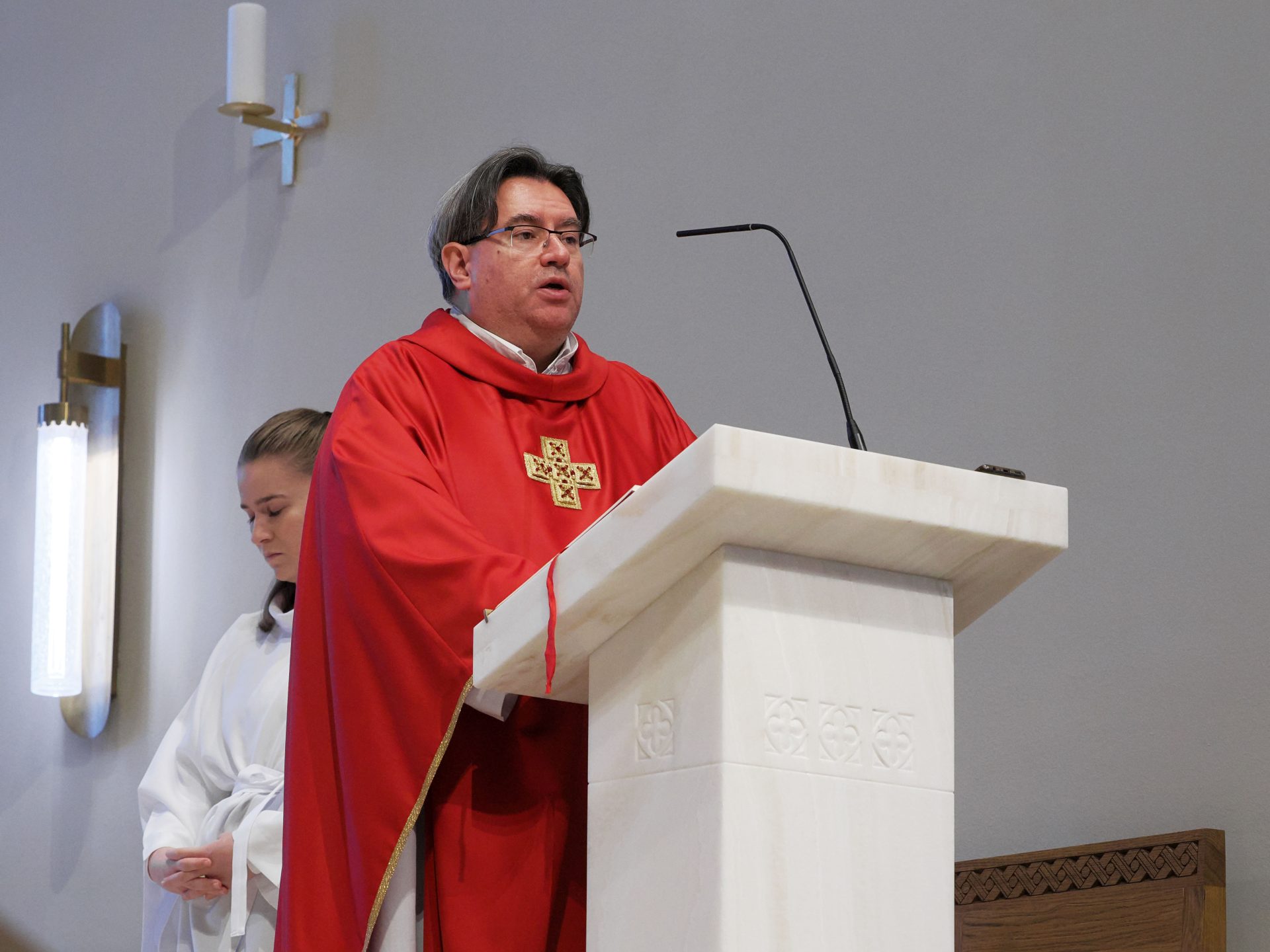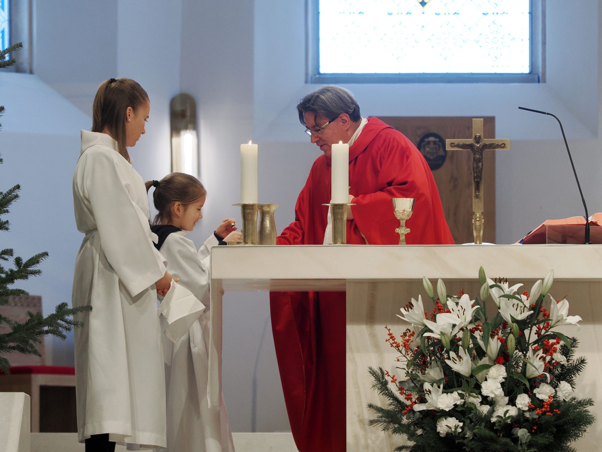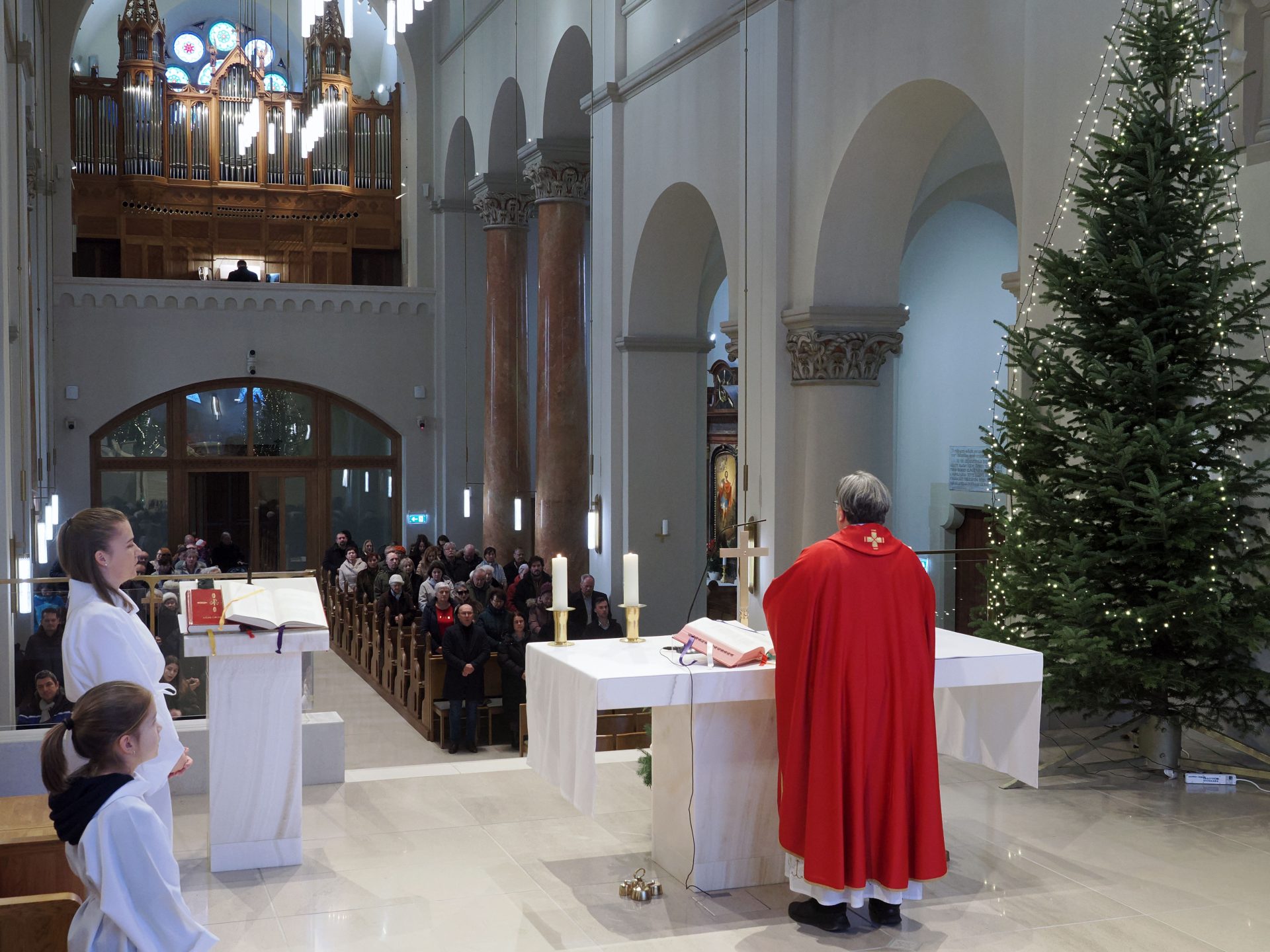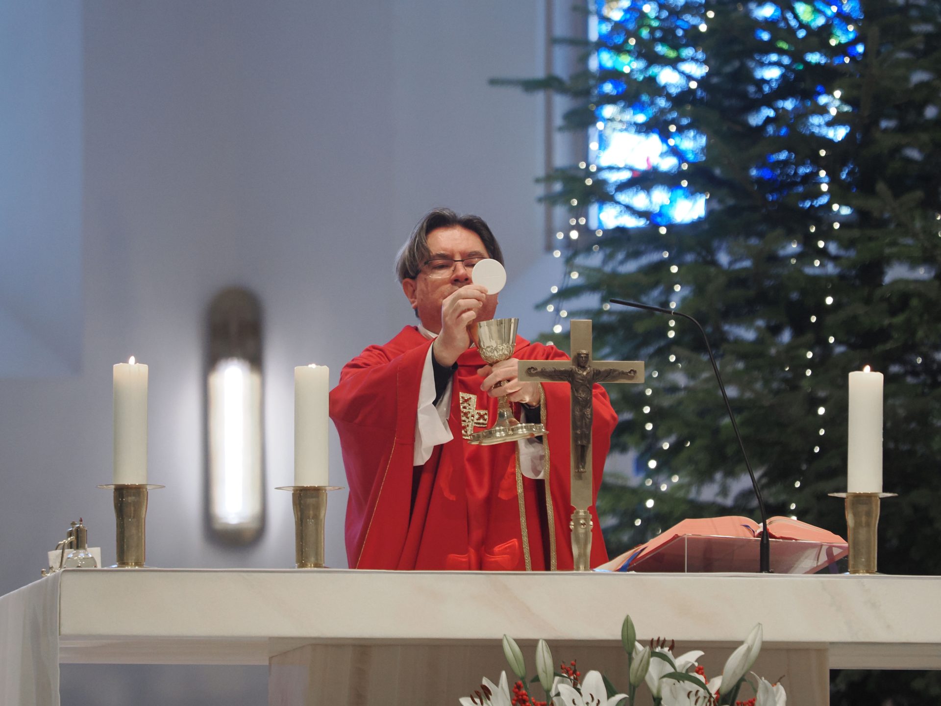 Karácsony másnapján, Szent István első vértanú ünnepén Takáts István atya, érseki általános helynök, a Szent Mihály Főszékesegyház plébánosa mutatott be szentmisét. Köszöntőjében hangsúlyozta: amikor Isten elé lépünk, soha nem vagyunk egyedül – egész életünket, szeretteinket, élőket és elhunytakat, örömeinket és terheinket visszük magunkkal az oltár elé.