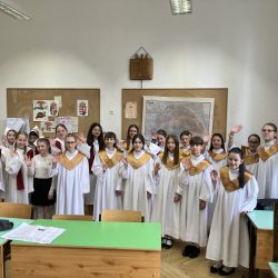 A Főszékesegyház Szent Mihály Gyermekkórusa idén is részt vett az Országos Rajeczky Benjamin gregorián- és népdalének- , népi hangszeres versenyen és ARANY minősítést szerzett. A rangos versenyt 25. alkalommal rendezték meg a Budai Ciszterci Szent Imre Gimnázium – ban. A kis énekkar lelkesen készült a megmérettetésre, amelynek kötelező anyaga a húsvéti ünnepkör gregorián tételei közül volt megadva. Húsvét vasárnap introitusa “Resurrexi et adhuc tecum sum alleluja” kezdetű, valamint a húsvéti szekvencia a “Victimae pascali laudes”. Mindkét tételt latinul tanulták meg. Magyarul a nagycsütörtöki szertartásból választottak előadási anyagot. Ubi caritas et amor – Hol szeretet és egyetértés – ezt az általánosan is használható liturgikus éneket több alkalommal is énekelhetik. A verseny magas színvonalát tükrözi, hogy az ország legnagyobb katolikus és szerzetesi iskoláinak kórusai mind bemutatkoznak. A résztvevő kórusok egymást hallgatva sokat tanulnak egymástól és gyakorlatot szereznek a gregorián ének megfelelő előadására. Szeretettel gratulálunk a szép eredményhez, köszönjük Zsilinszky Cecília felkészítő munkáját.