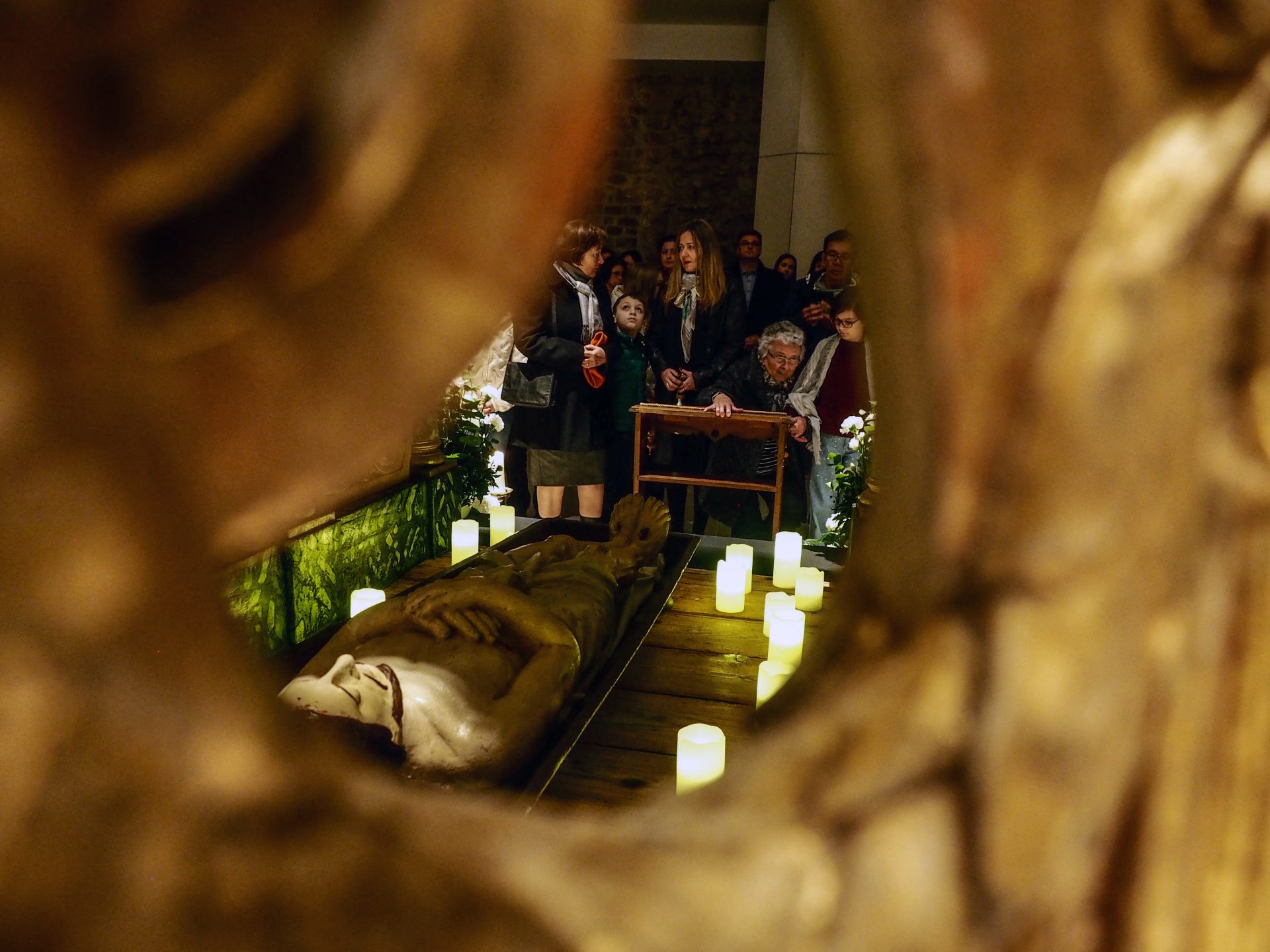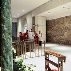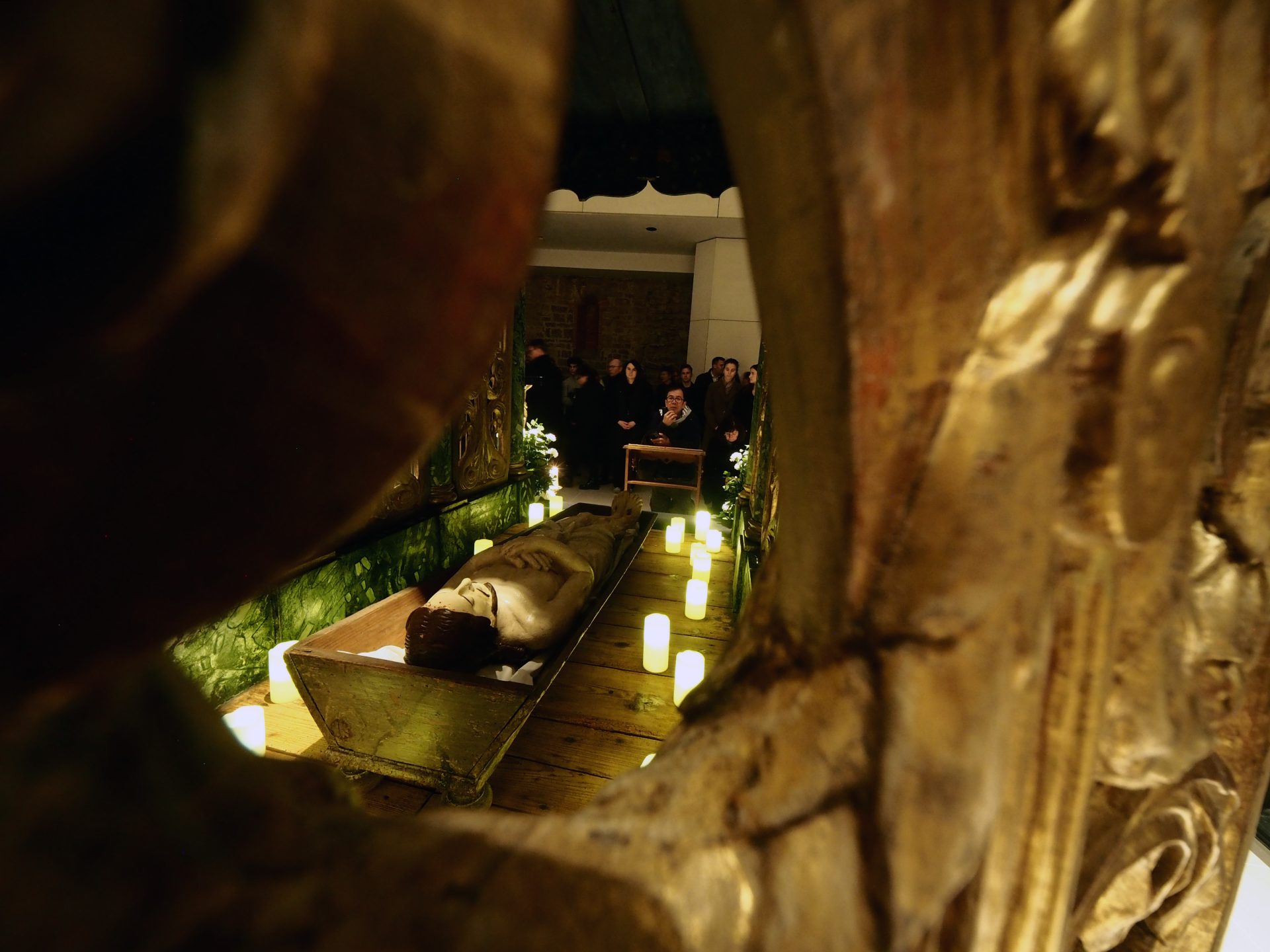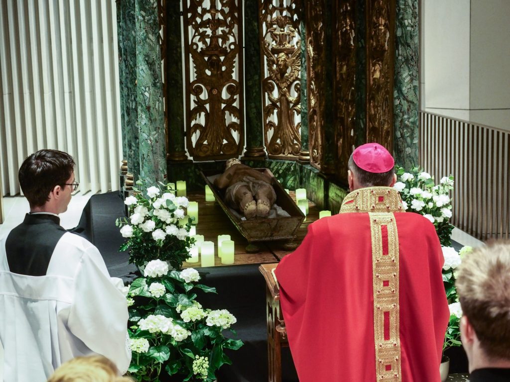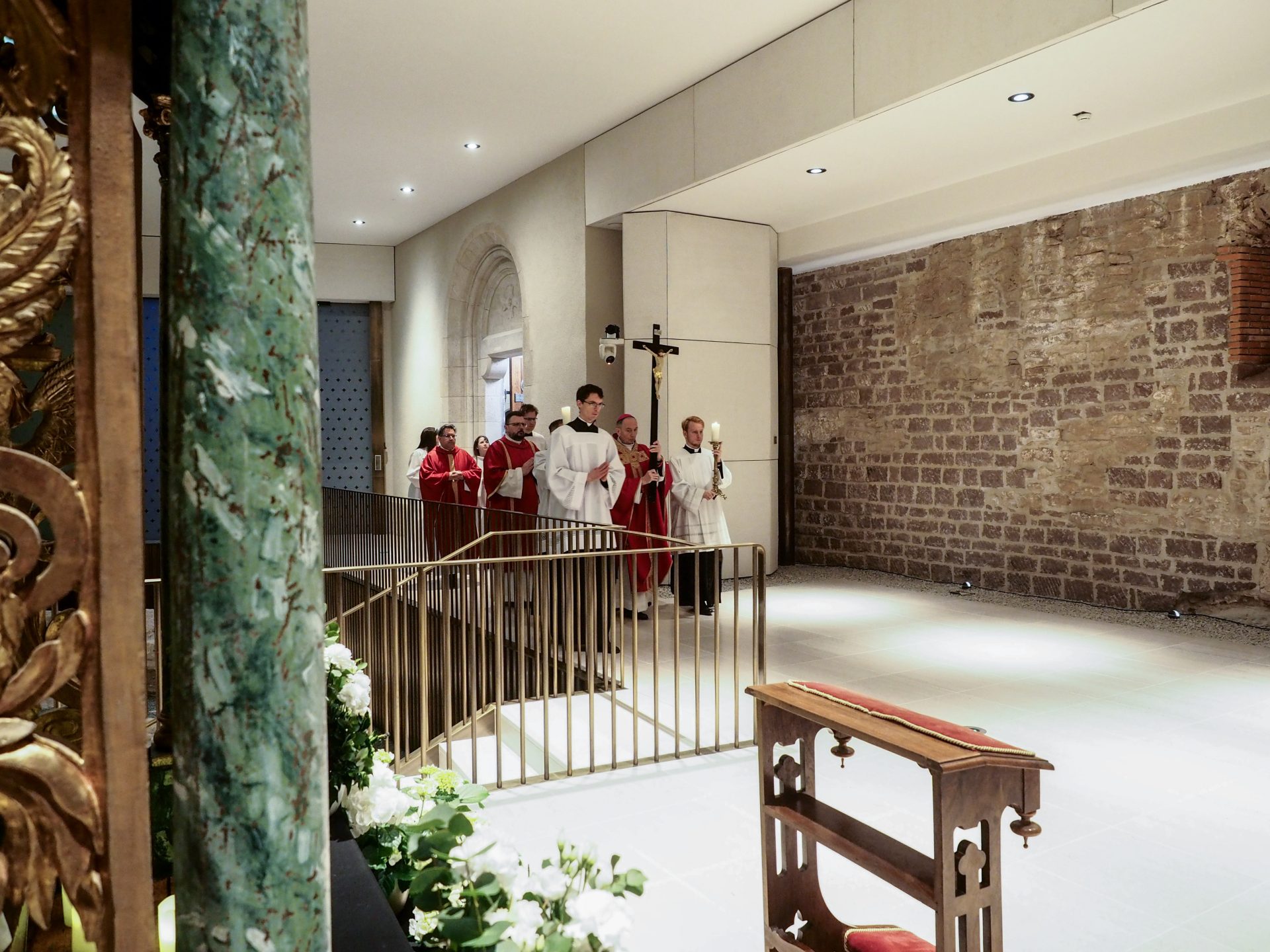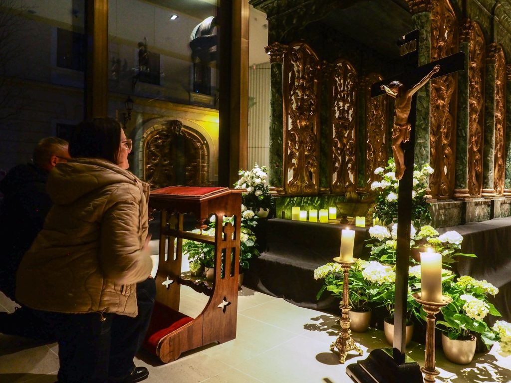 Az áldozást követően az ünneplés a Szent György-kápolna felé irányult, ahol a főpásztor megnyitotta a szent sírt. A különleges, barokk szentsír – amely a jeruzsálemi sír másaként készült, és a maga nemében egyedülálló eredeti műtárgy Magyarországon– nem csupán látvány, hanem lelki valóság: segít átélni Krisztus temetésének csendjét és a feltámadás reményét. A hívek csendben járultak a sírhoz, imádságban időzve a titok előtt, amely egyszerre hordozza a halál súlyát és az élet ígéretét.