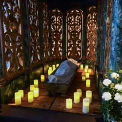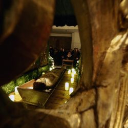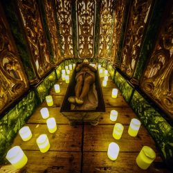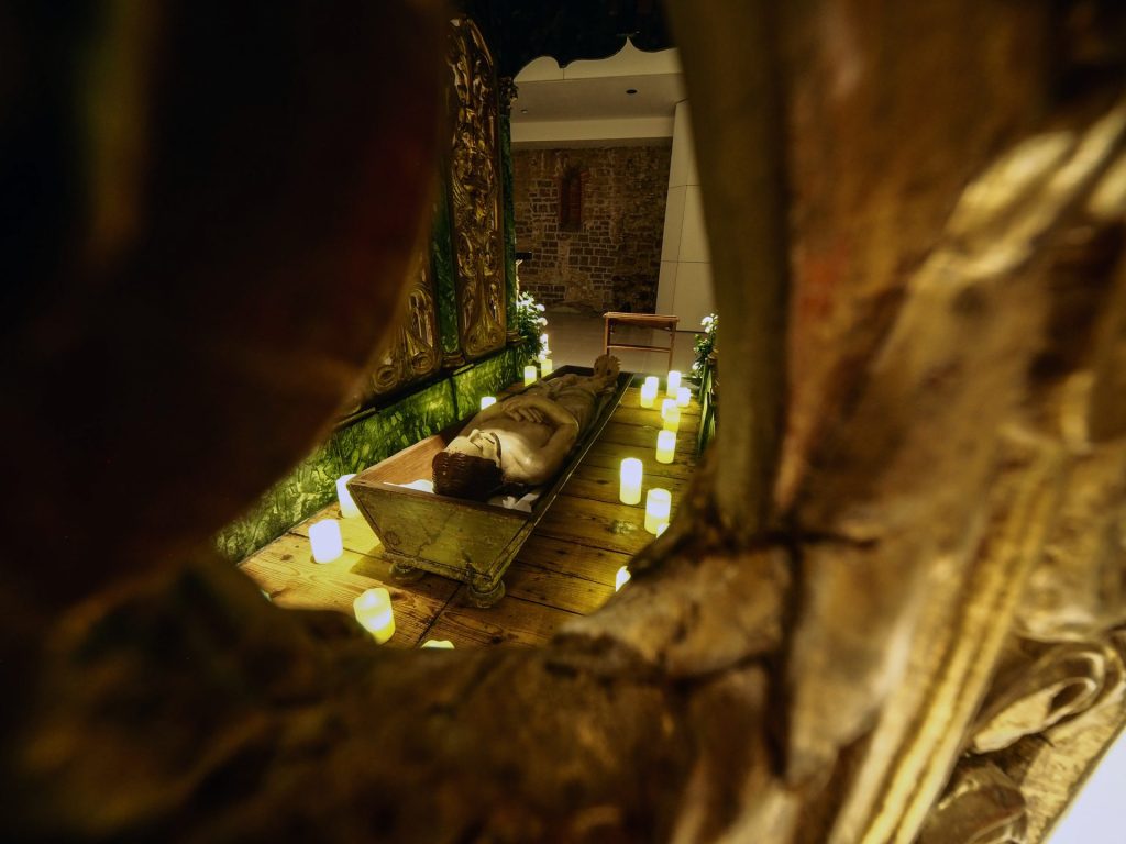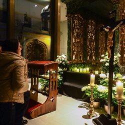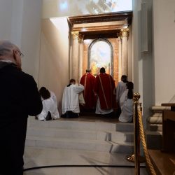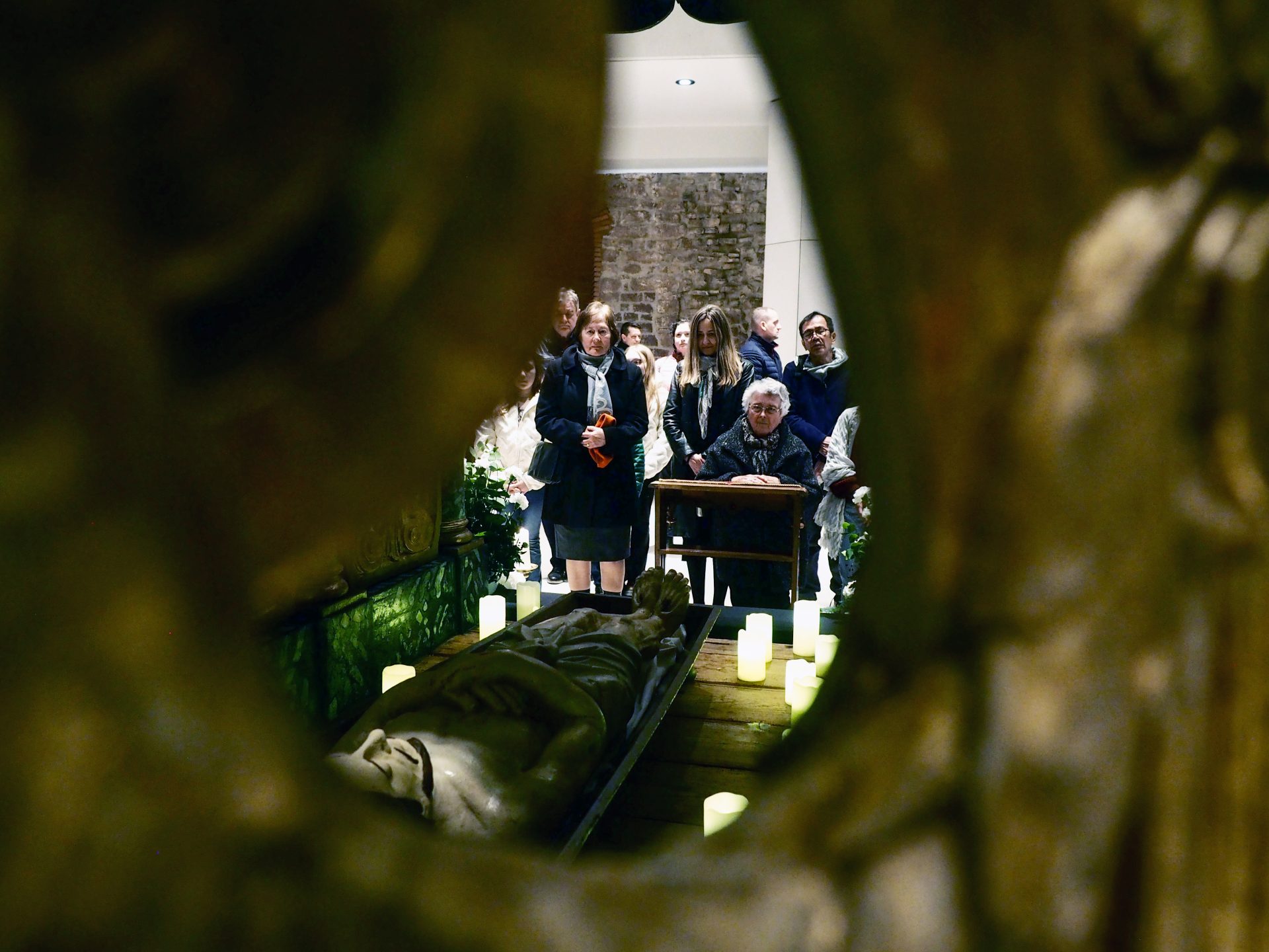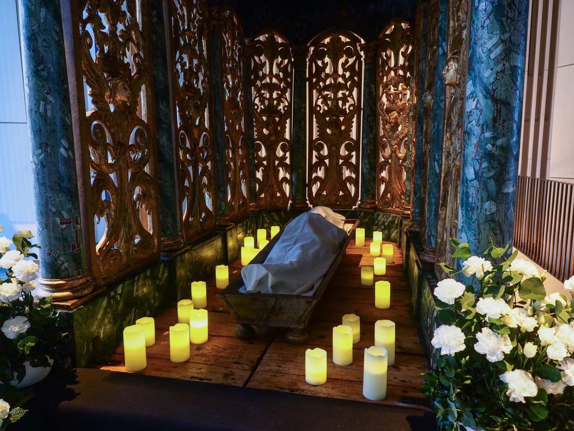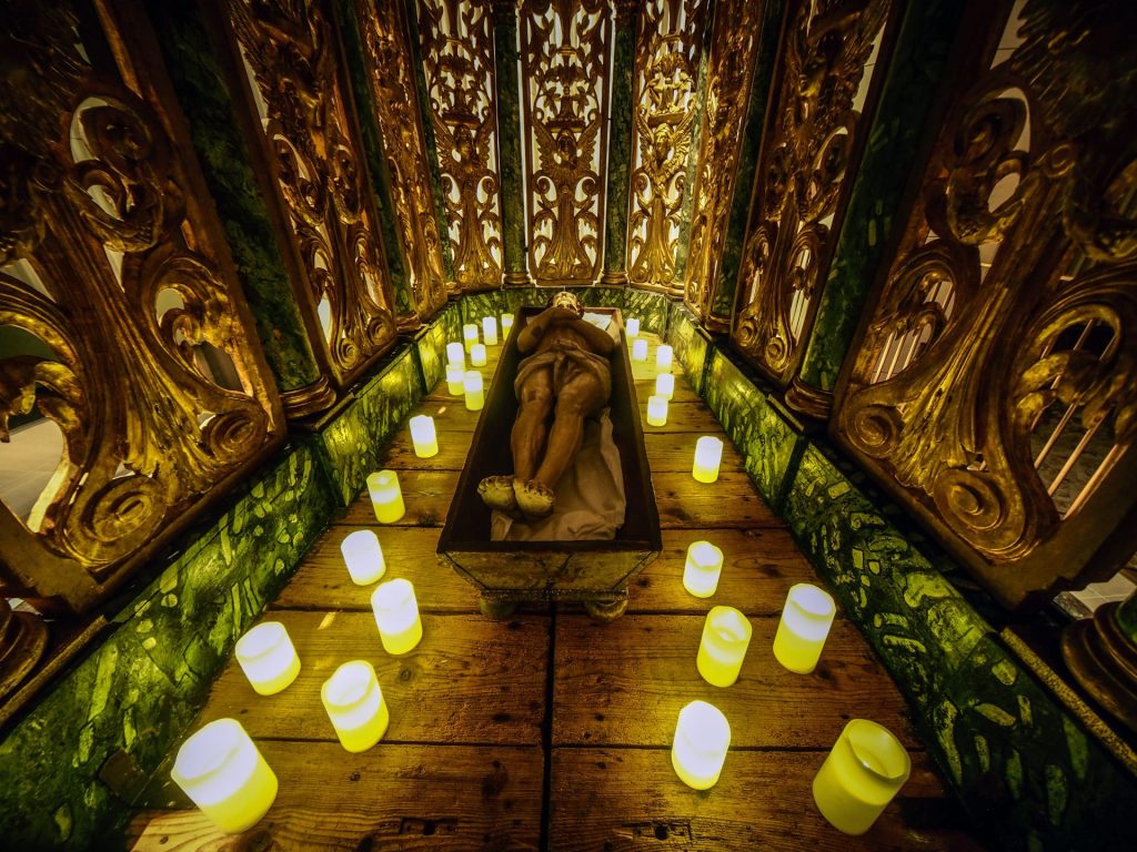 Az áldozást követően az ünneplés a Szent György-kápolna felé irányult, ahol a főpásztor megnyitotta a szent sírt. A különleges, barokk szentsír – amely a jeruzsálemi sír másaként készült, és a maga nemében egyedülálló eredeti műtárgy Magyarországon– nem csupán látvány, hanem lelki valóság: segít átélni Krisztus temetésének csendjét és a feltámadás reményét. A hívek csendben járultak a sírhoz, imádságban időzve a titok előtt, amely egyszerre hordozza a halál súlyát és az élet ígéretét.