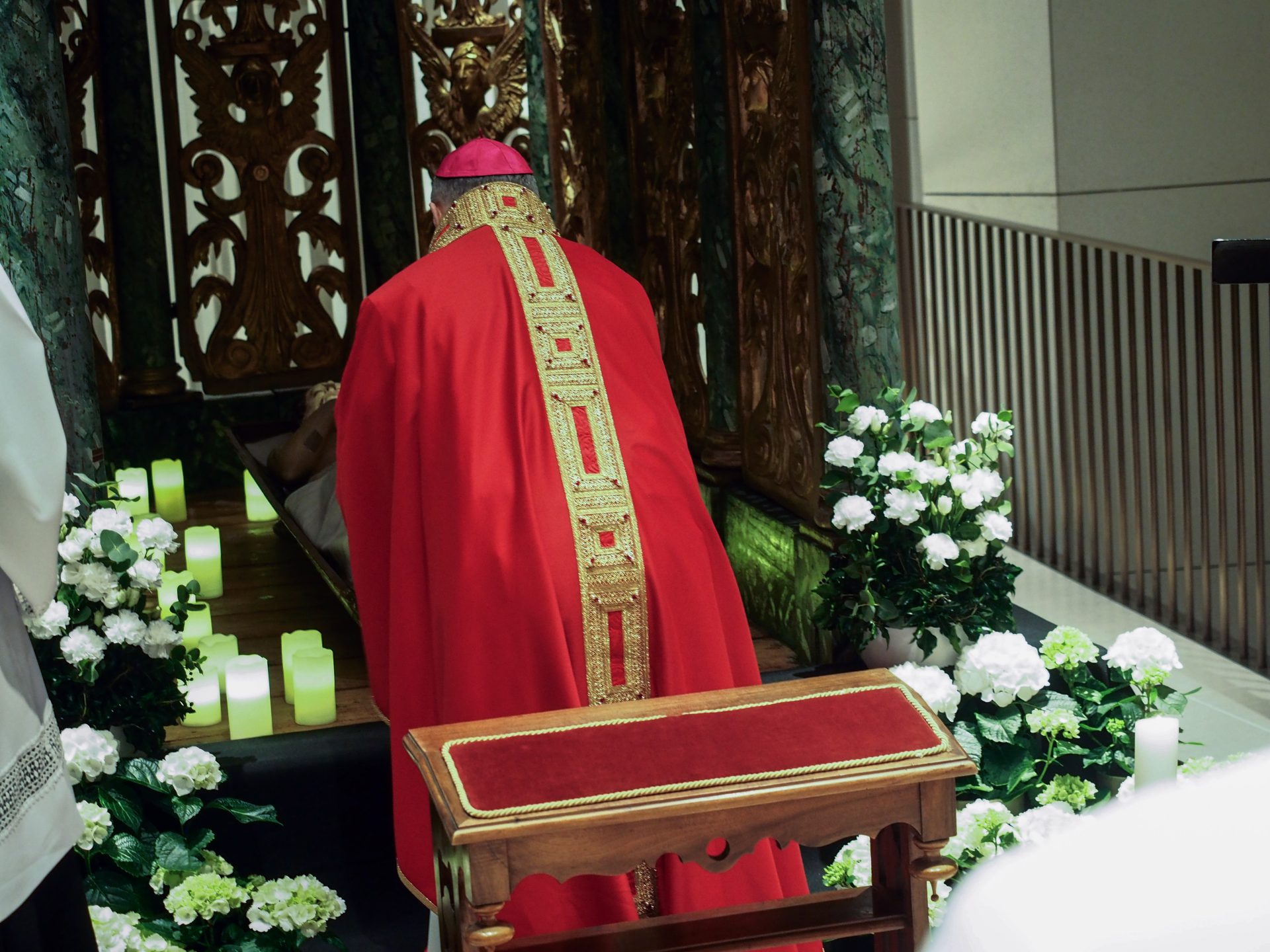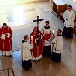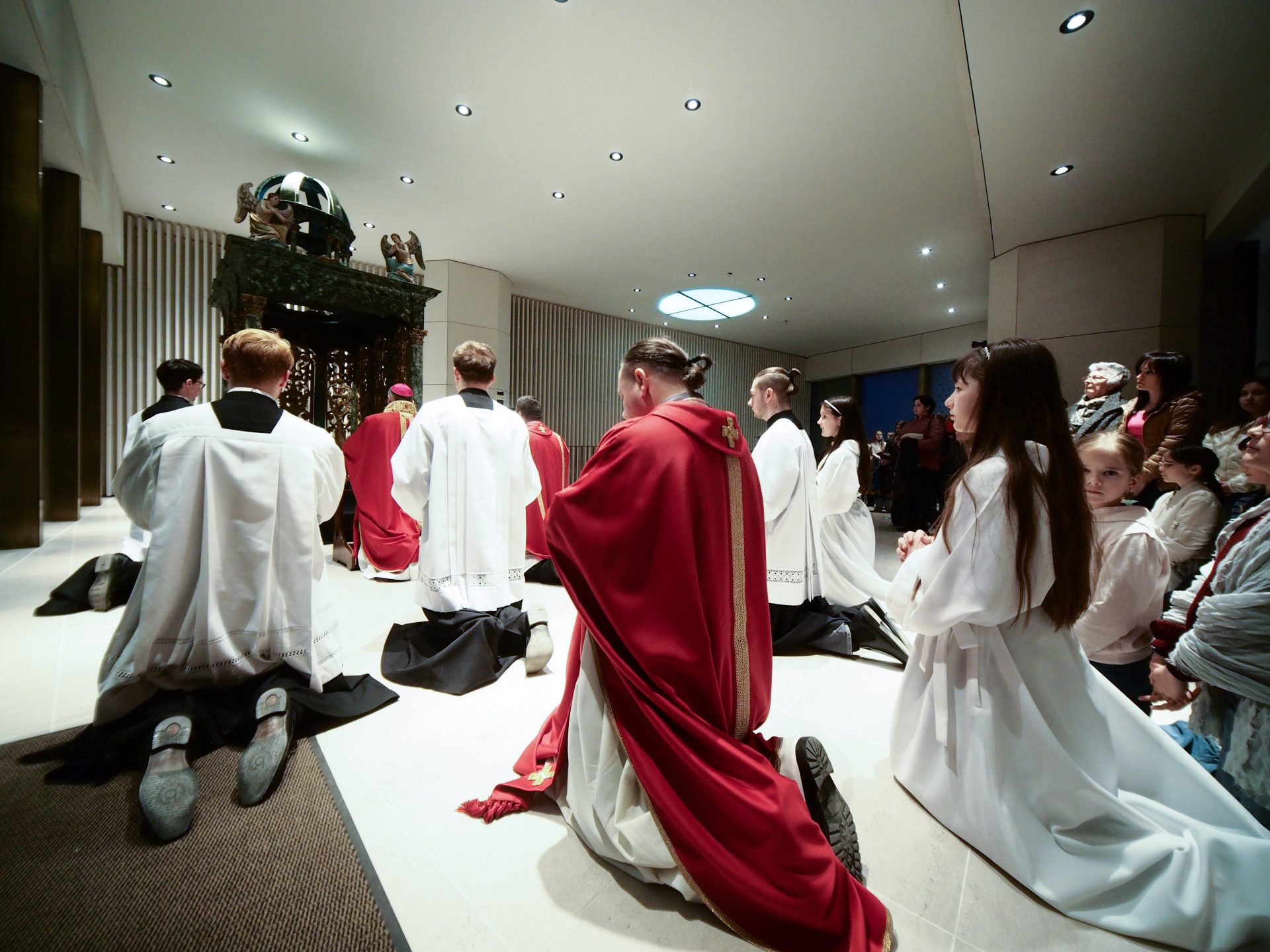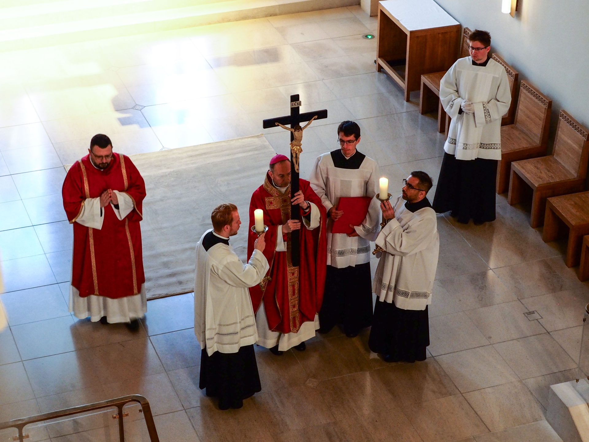 Nagypéntek csendje és megrendítő mélysége töltötte be a Szent Mihály Főszékesegyház falait, ahol Dr. Udvardy György érsek atya vezetésével tartották meg az Úr szenvedésének és halálának liturgiáját. Az egyház egyik legcsendesebb, mégis legbeszédesebb napján nem mutatnak be szentmisét – a „csonka mise” egyszerűsége még inkább ráirányítja a figyelmet a kereszt titkára.