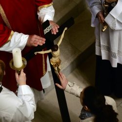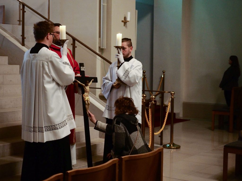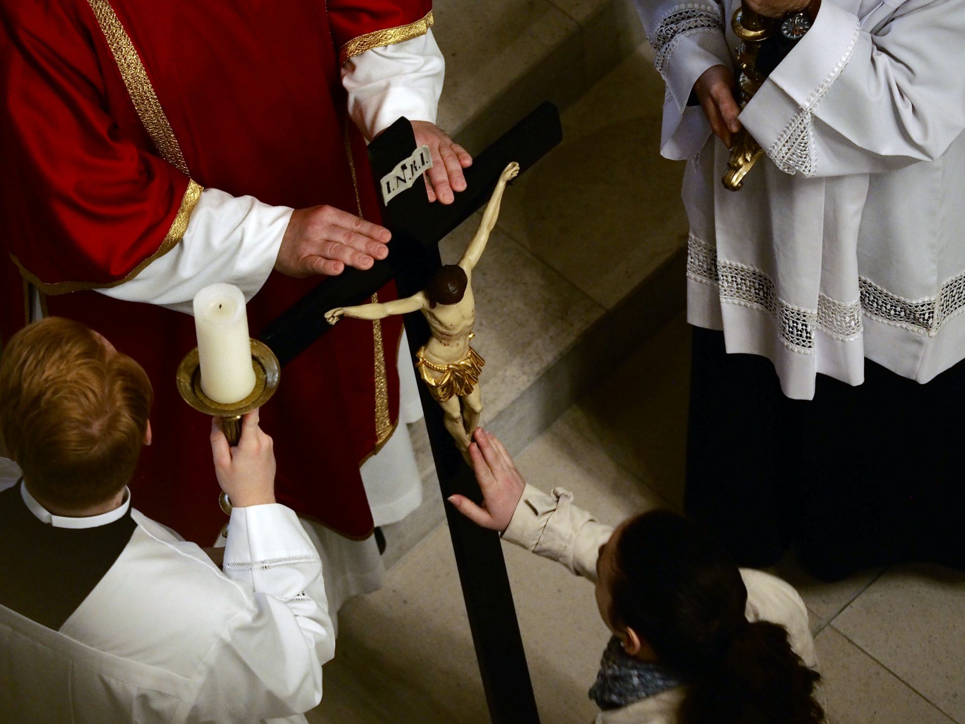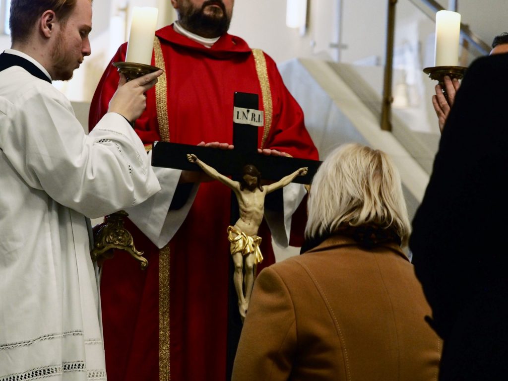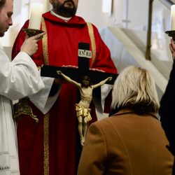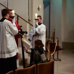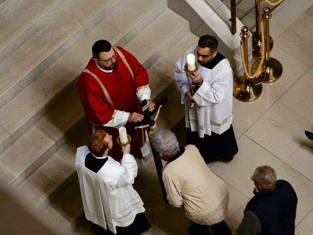 A liturgia csúcspontja a kereszthódolat volt. A leleplezett kereszt előtt sorra járultak a hívek, hogy csendben, személyesen találkozzanak azzal a Krisztussal, aki értük adta életét. Ez a gesztus nem csupán tiszteletadás, hanem hitvallás: elismerése annak, hogy a keresztben van az élet forrása.