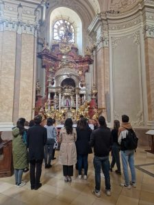 Az előadás után a fiatalok részt vettek a bencés közösség déli imaóráján. A zsolozsma után ebéd, majd délután kellemes lelki séta következett, amely az apátsági templomtól a barátlakásokig tartott. A csendben végigjárt útszakasz állomásain a csoport tagjai közösen imádkoztak és olvastak fel egy-egy odaillő szentírási részt és verset az András atya által összeállított füzetekből. Ezt követően az atya megmutatta a fiataloknak a könyvtárat, a templomot, az altemplomot I. András királyunk sírjával, a sekrestyét, a karzatot és a belső udvart is. A látogatóközpontban kézműves csokoládét is kóstolhattak, valamint egy kisfilmet láthattak, amely a tihanyi bencés közösség életébe nyújtott betekintést.