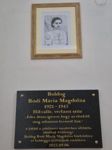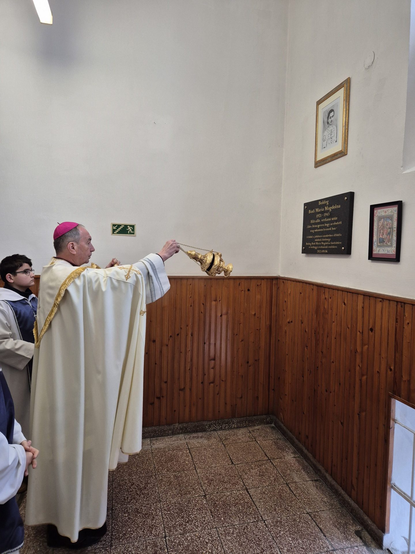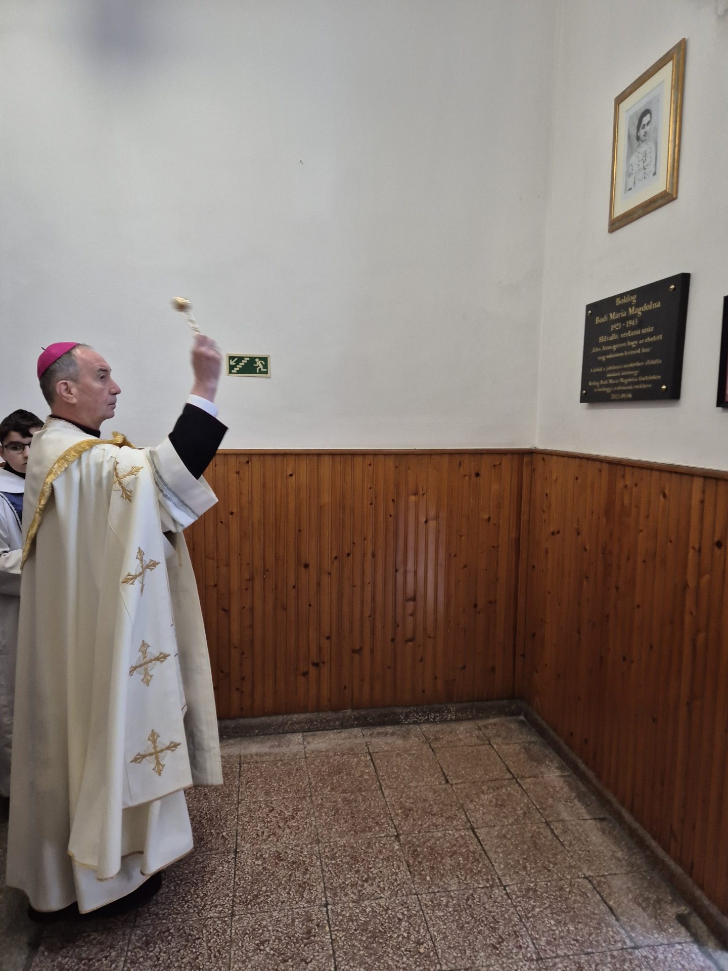Az ünnep a Szent István Katolikus Iskola falai között folytatódott, ahol érsek atya megáldotta az iskola folyosóján elhelyezett, Bódi Mária Magdolna emlékét őrző emléktáblát. Az áldás előtt hangsúlyozta: különösen nagy jelentősége van annak, hogy Magdi életpéldája éppen egy katolikus iskola közösségében válik láthatóvá és mindennap megszólítóvá.