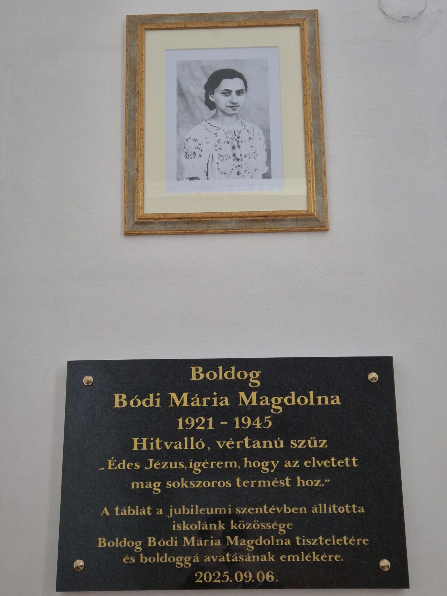 Az emléktábla megáldásával az iskola, – amely a főegyházmegye fenntartásában működő oktatási intézmények közül az első iskola, aki emlékhelyet alakított ki-, közössége így kapcsolódott be Boldog Bódi Mária Magdolna élő kultuszába, abba a lelki örökségbe, amely nem lezárt múlt, hanem ma is ható, jövőt formáló kegyelem.