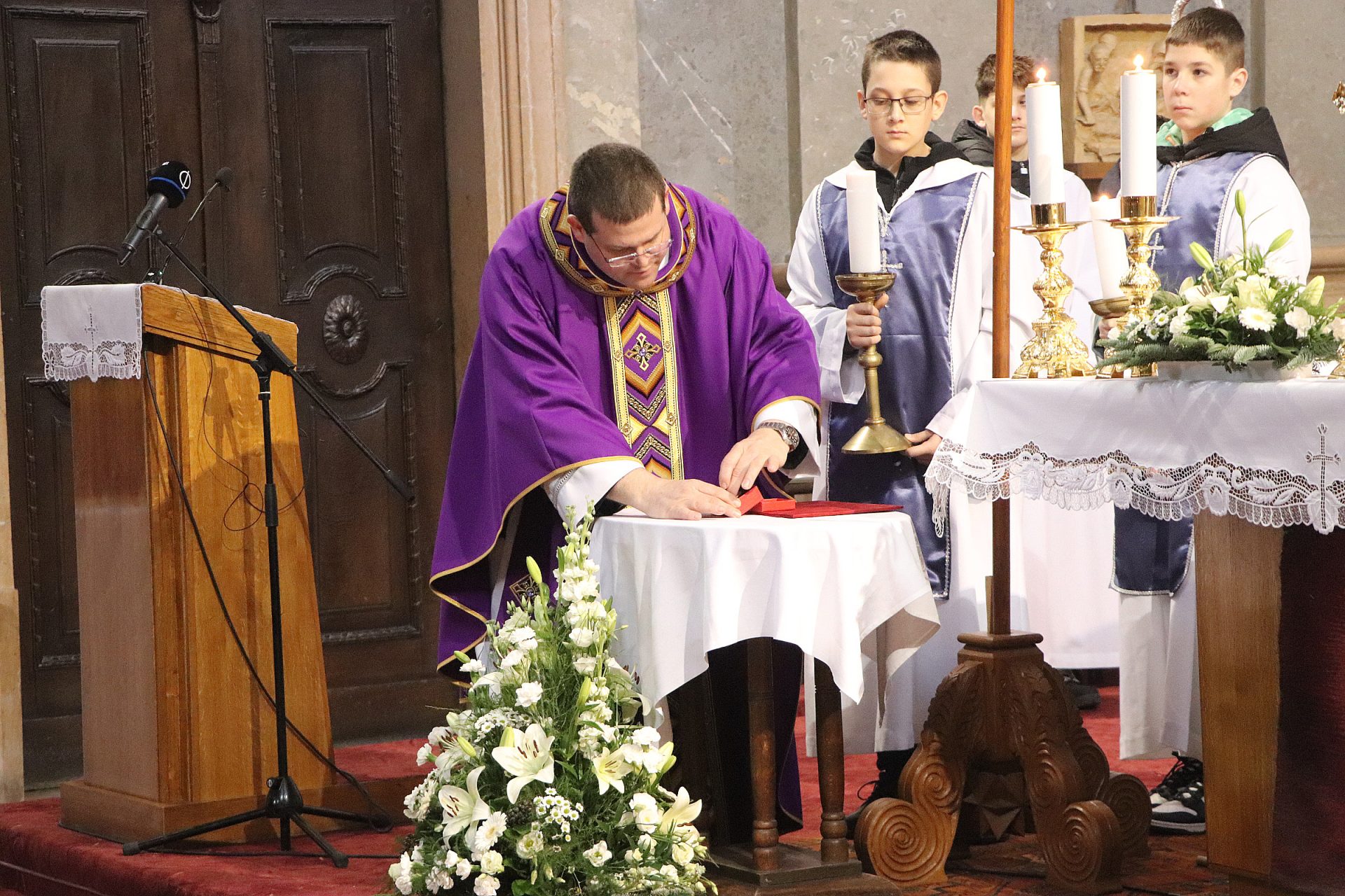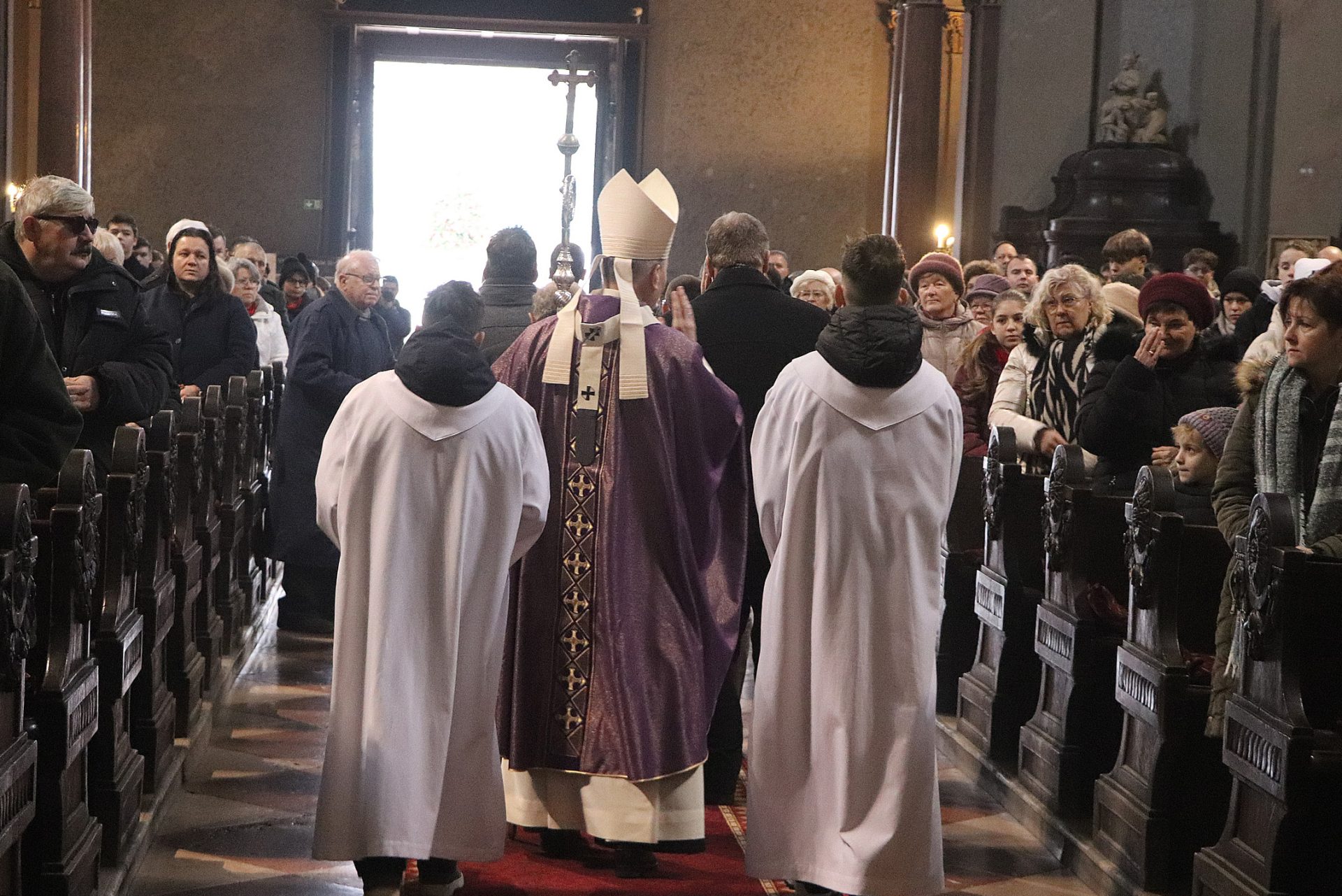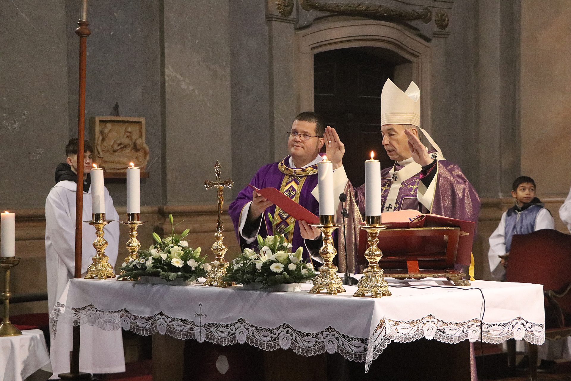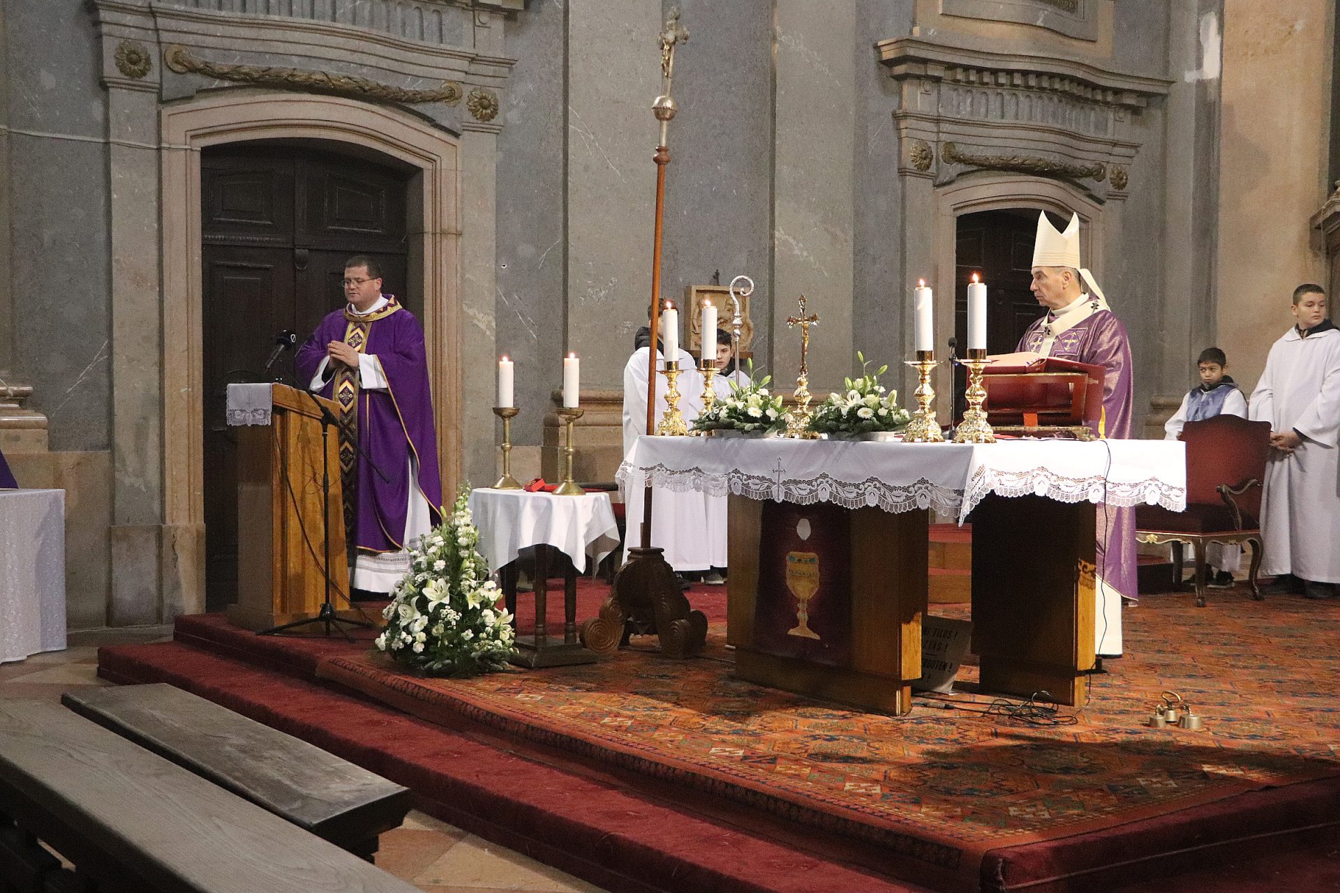 A szentmise elején Cséry Gergő plébános atya köszöntötte az ünneplő híveket és érsek atyát. Szavaiban hangsúlyozta: nagy öröm, hogy az adventi készület utolsó vasárnapján együtt adhatnak hálát azért, hogy az egyházmegye új boldoggal gazdagodott, és hogy a pápai közösség is részese lehet ennek a kegyelmi ajándéknak.