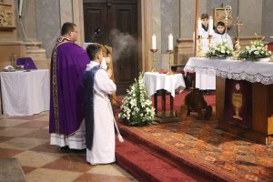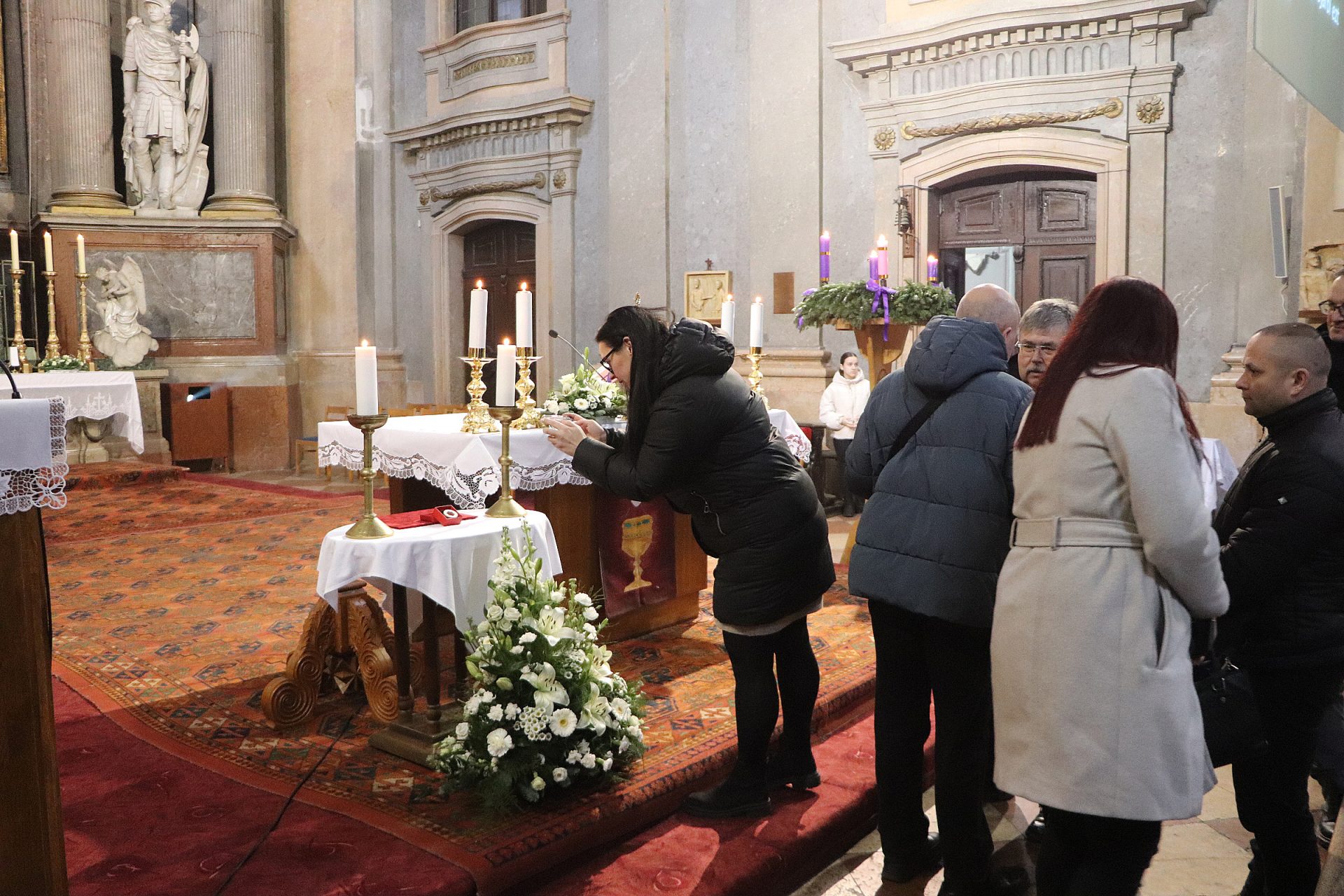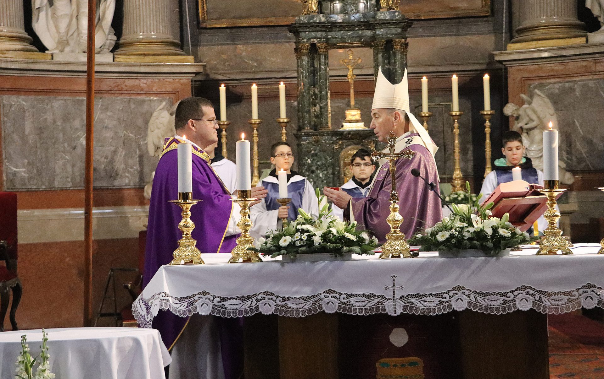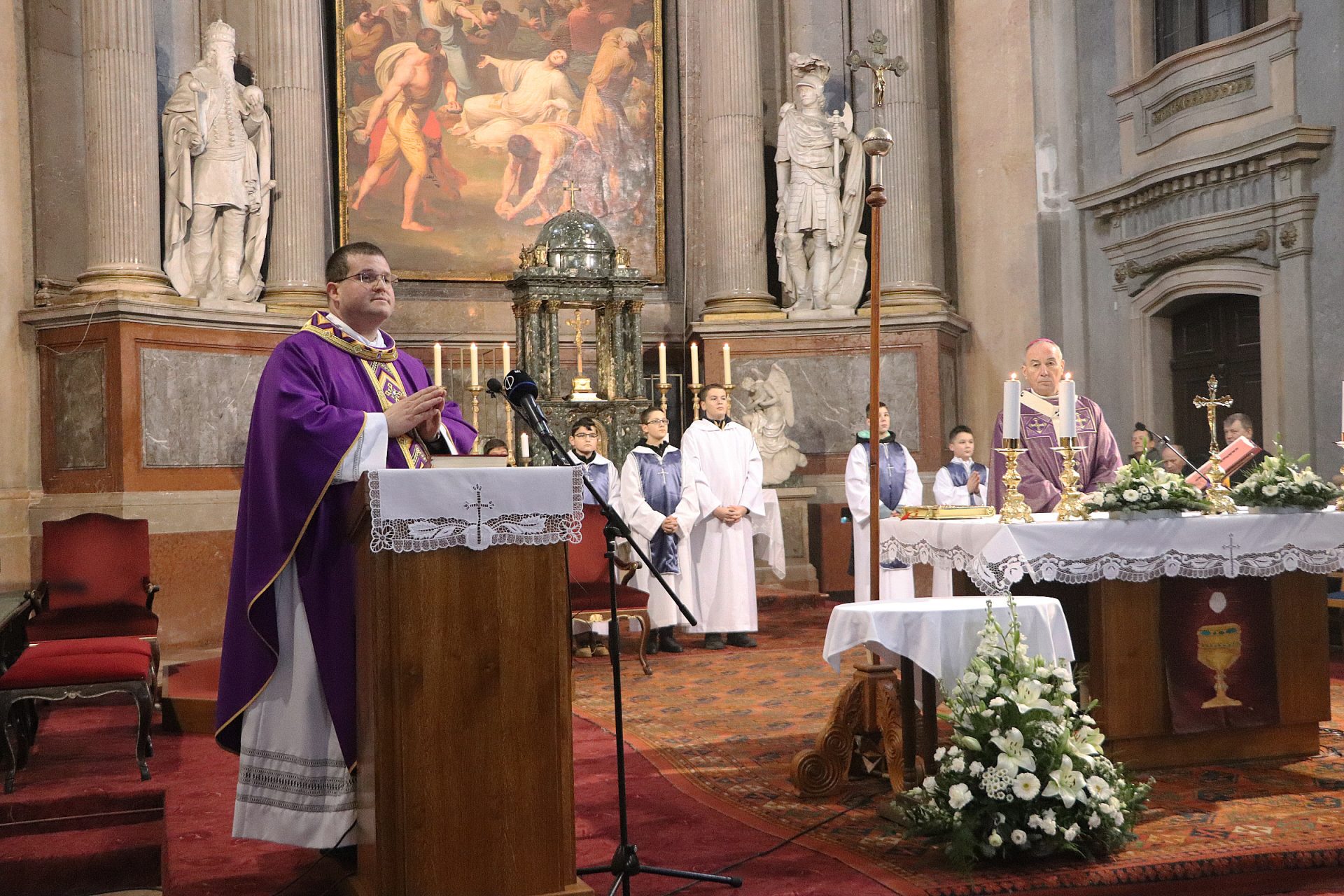 A szentmise elején Cséry Gergő plébános atya köszöntötte az ünneplő híveket és érsek atyát. Szavaiban hangsúlyozta: nagy öröm, hogy az adventi készület utolsó vasárnapján együtt adhatnak hálát azért, hogy az egyházmegye új boldoggal gazdagodott, és hogy a pápai közösség is részese lehet ennek a kegyelmi ajándéknak.