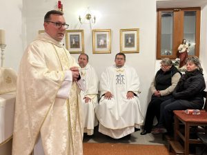 „Eljöttünk ünnepelni Szent Erzsébetet” Mokos János plébános atya szeretettel köszöntötte a híveket, a helyi és távolabbról érkezett vendégeket, valamint a jelen lévő atyákat: Szijártó László atyát, Huszár Lőrinc atyát Zircről. Külön megköszönte a Vári család áldozatos munkáját, akik idén teljesen felújították a kápolnát kívül-belül. Hálás szavakkal fordult a helyi közösség felé, külön említve Horváth Beáta polgármester asszonyt, aki egyben a kápolna sekrestyése is. „Köszönöm mindenkinek, aki bármit tesz a kápolnáért. Isten fizesse meg szolgálatotokat százszorosan” – zárta köszöntőjét a plébános. Ezt követően kérte fel Szijártó László atyát az ünnepi szentmise bemutatására és a Szent Erzsébet-kenyerek megáldására.