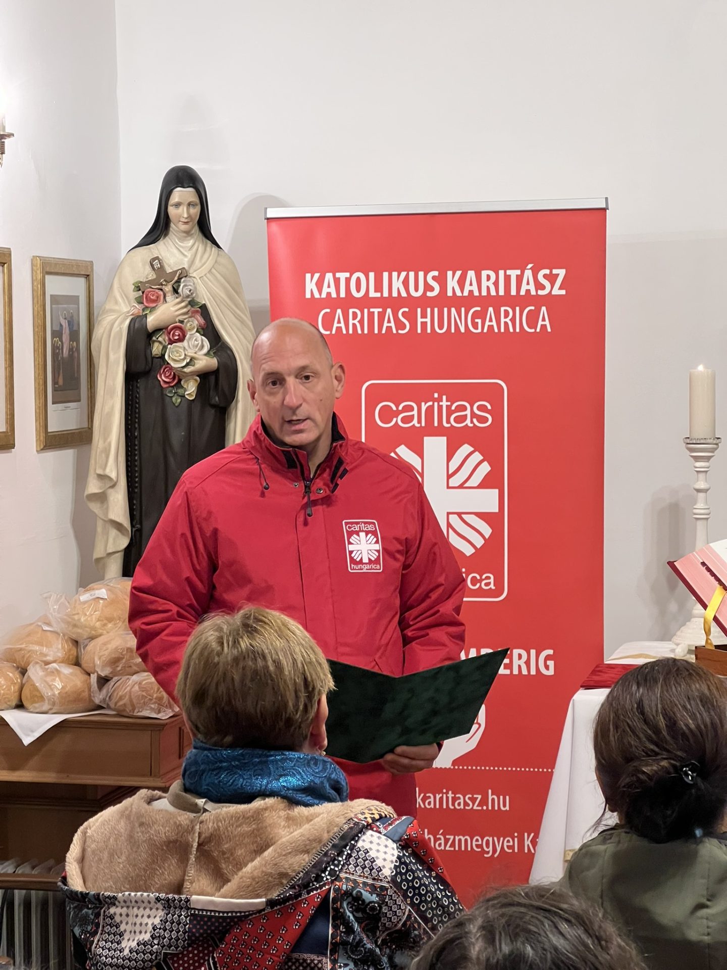 A szentmise végéhez közeledve Ghczy László a Veszprém – Főegyházmegyei Karitász igazgatója beszédében köszönetet mondott a főegyházmegye karitász önkénteseinek, akik nap mint nap segítik a rászorulókat: „Jézus ebben a világban rátok számít. Ti vagytok az Ő meghosszabbított kezei és lábai.” Hála a karitász munkatársaiért – „Jézus meghosszabbított kezei vagytok”