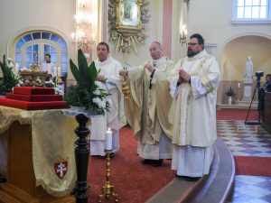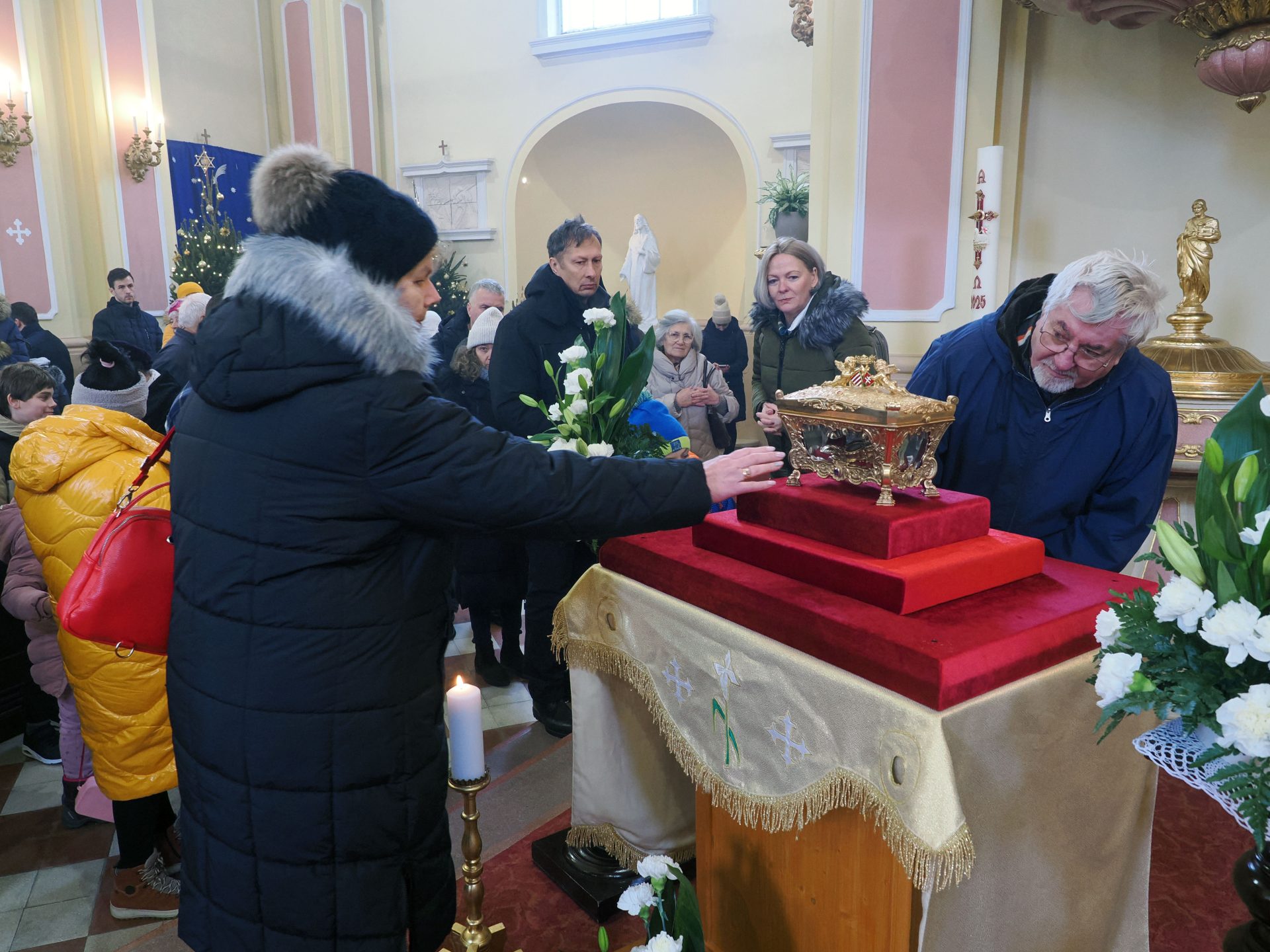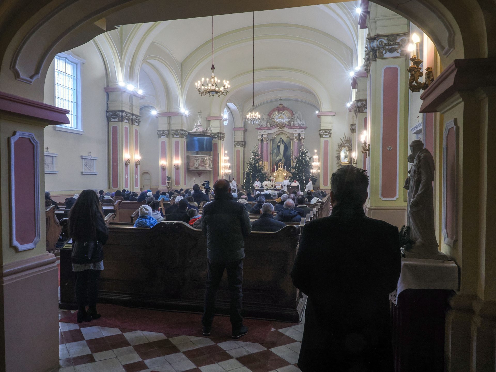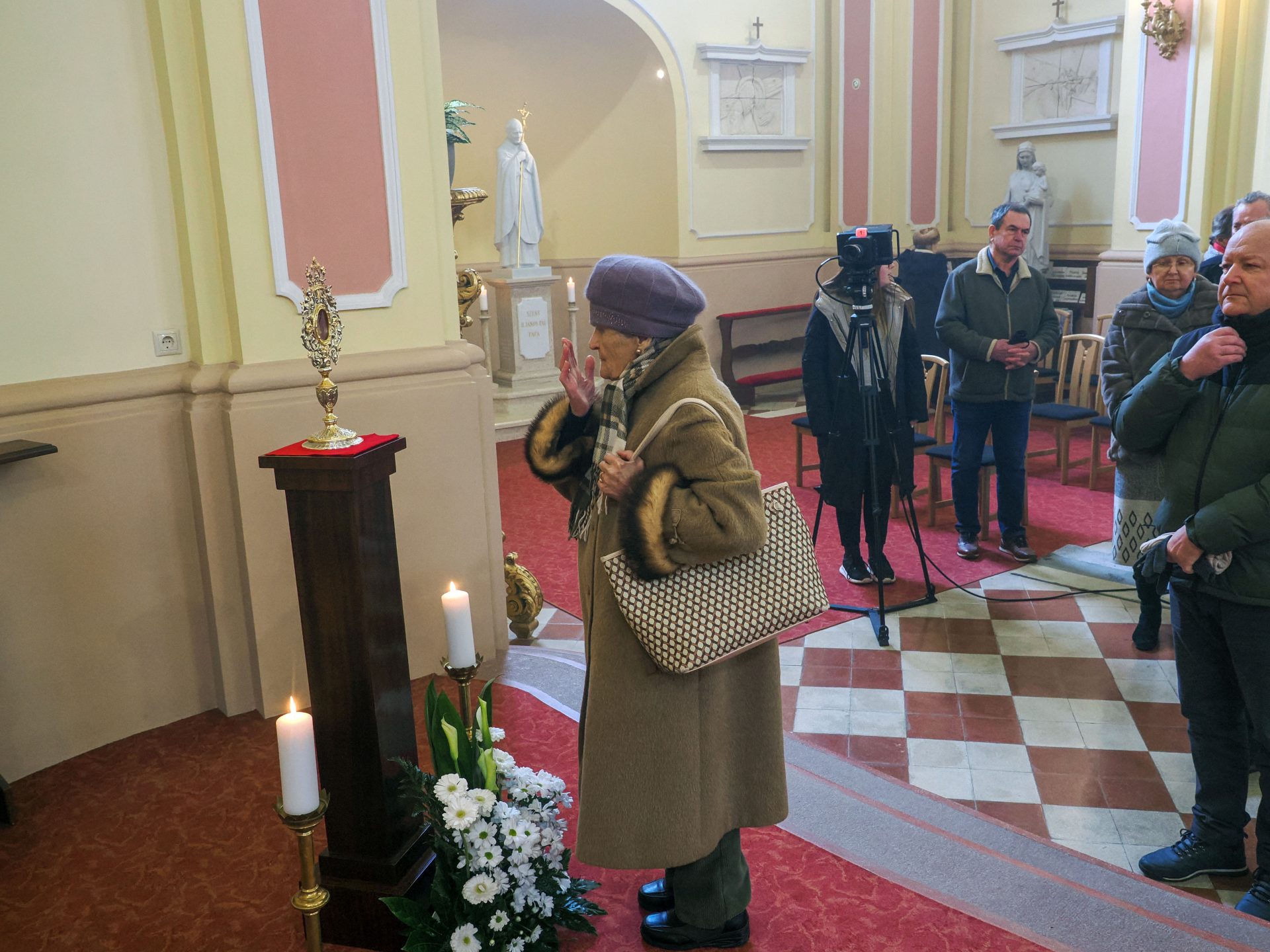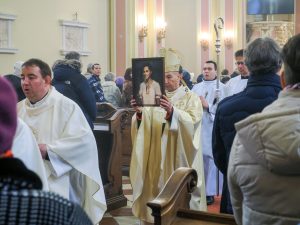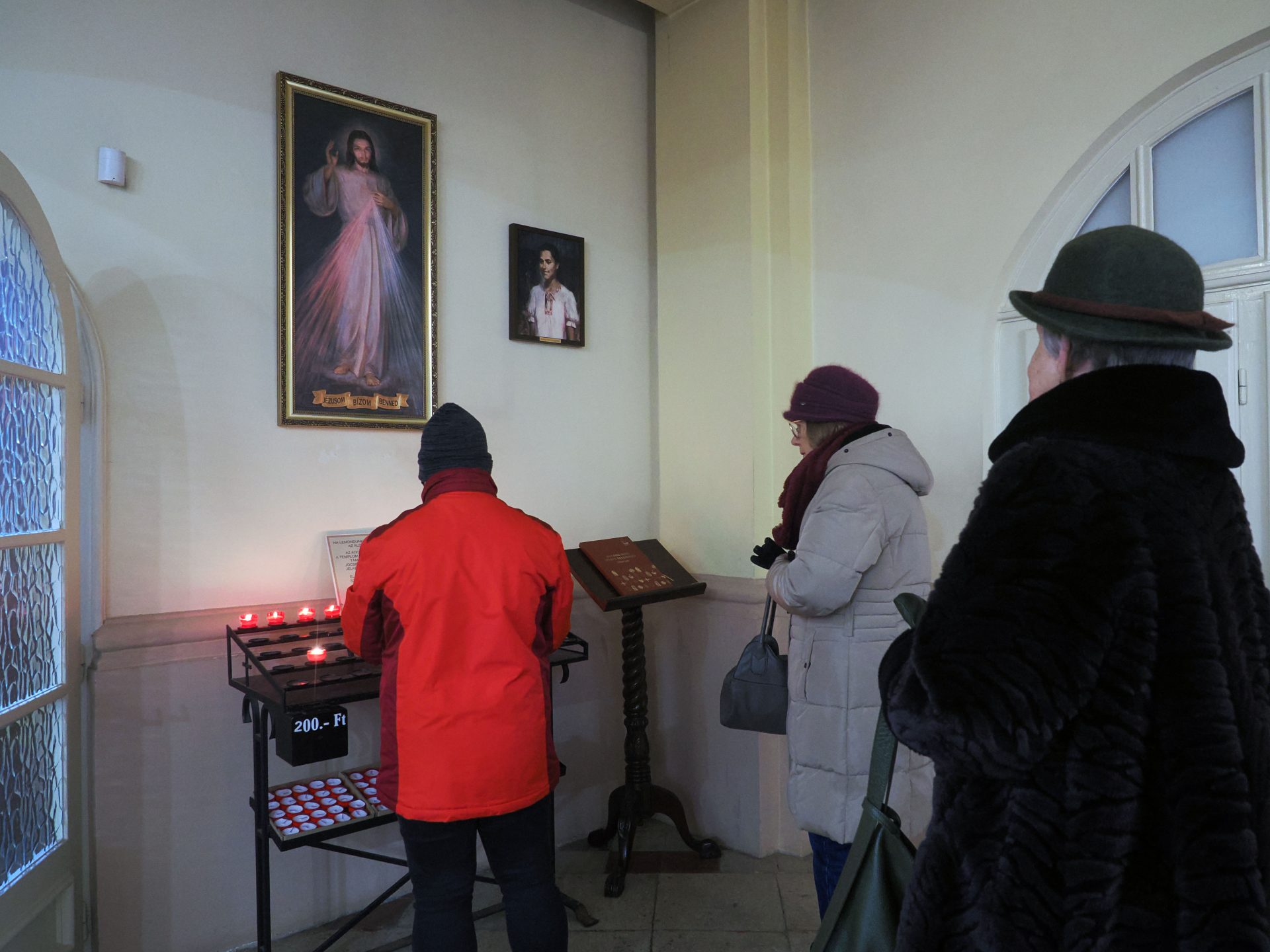 A liturgia végén a közösség – érsek atyával együtt – a templom bejáratához vonult, ahol ünnepélyesen elhelyezték Boldog Bódi Mária Magdolna képét és a hálanaplót.