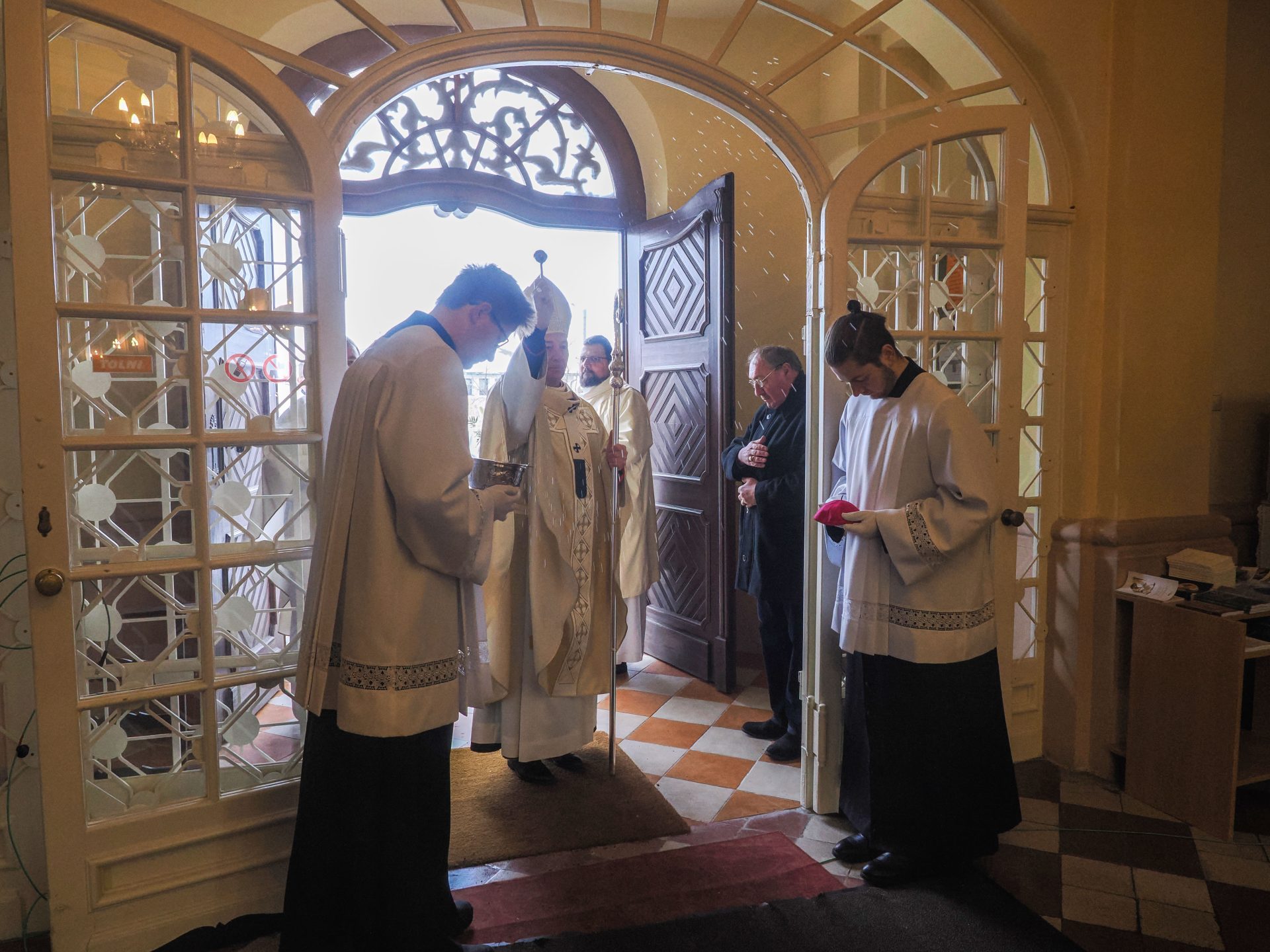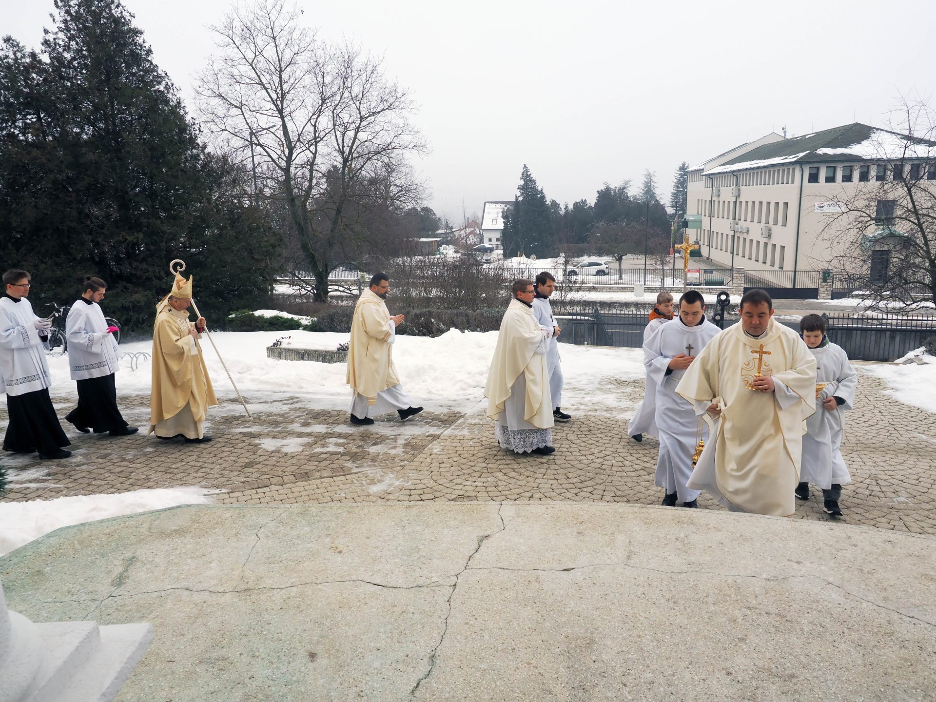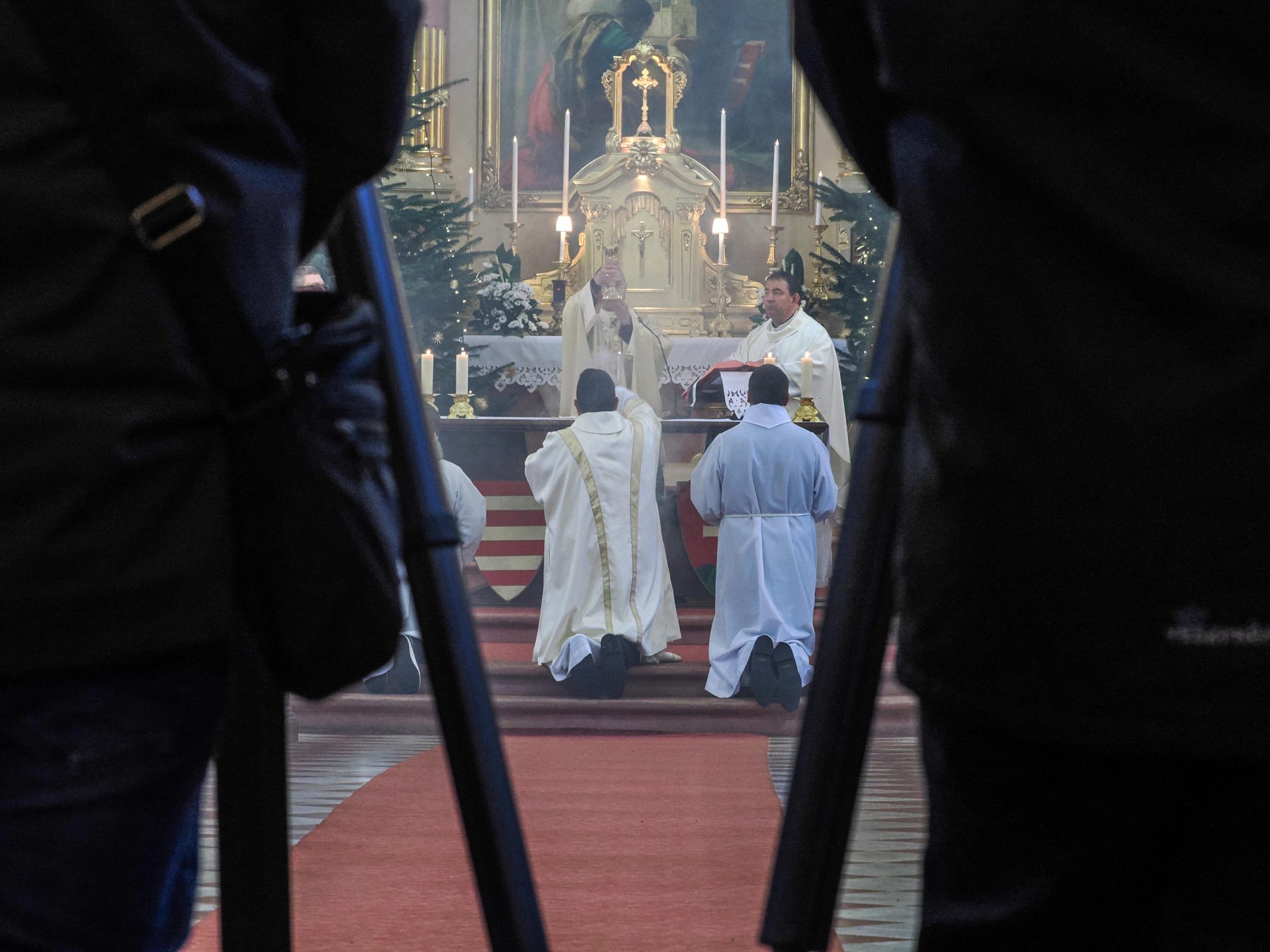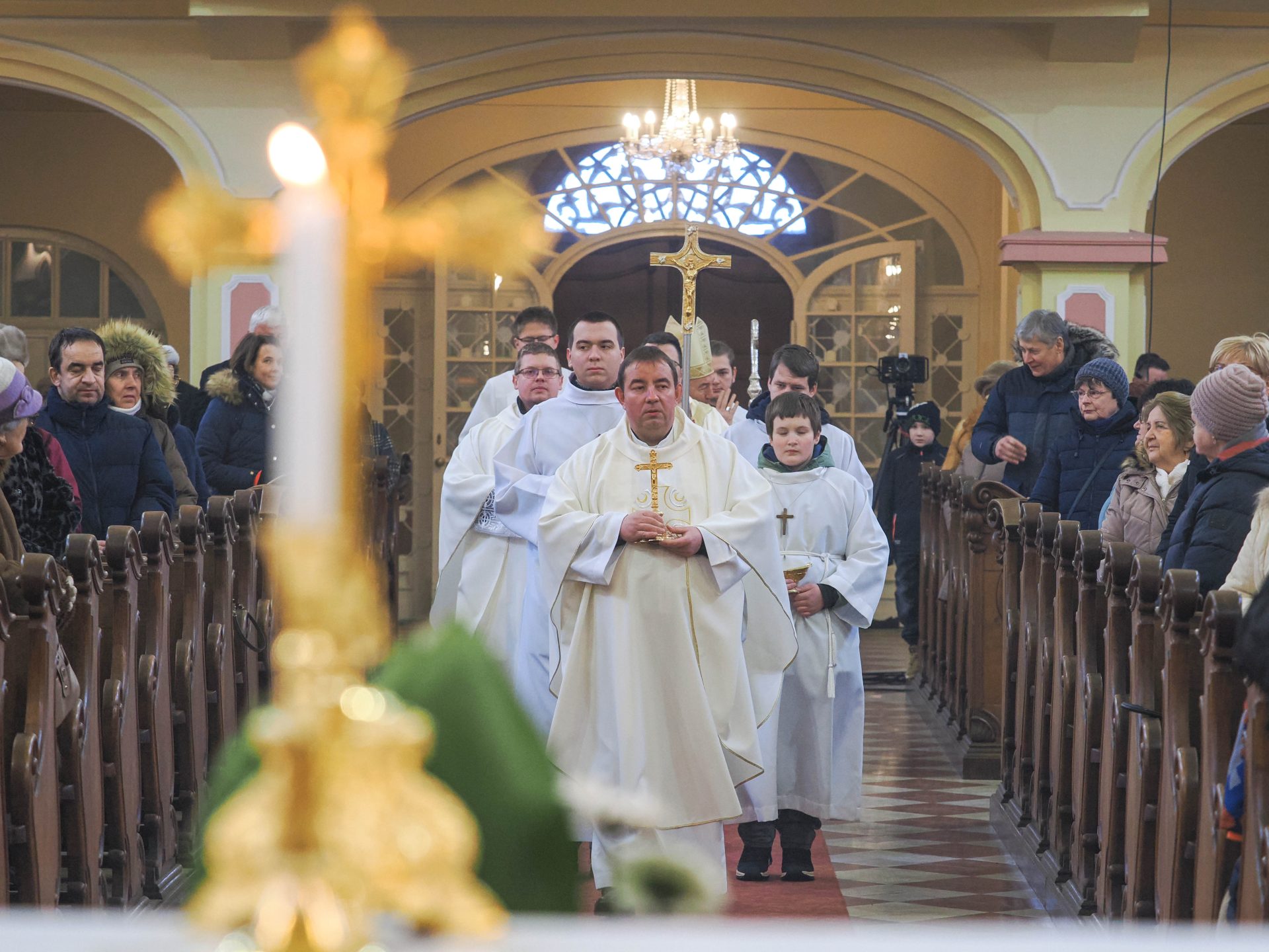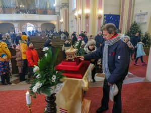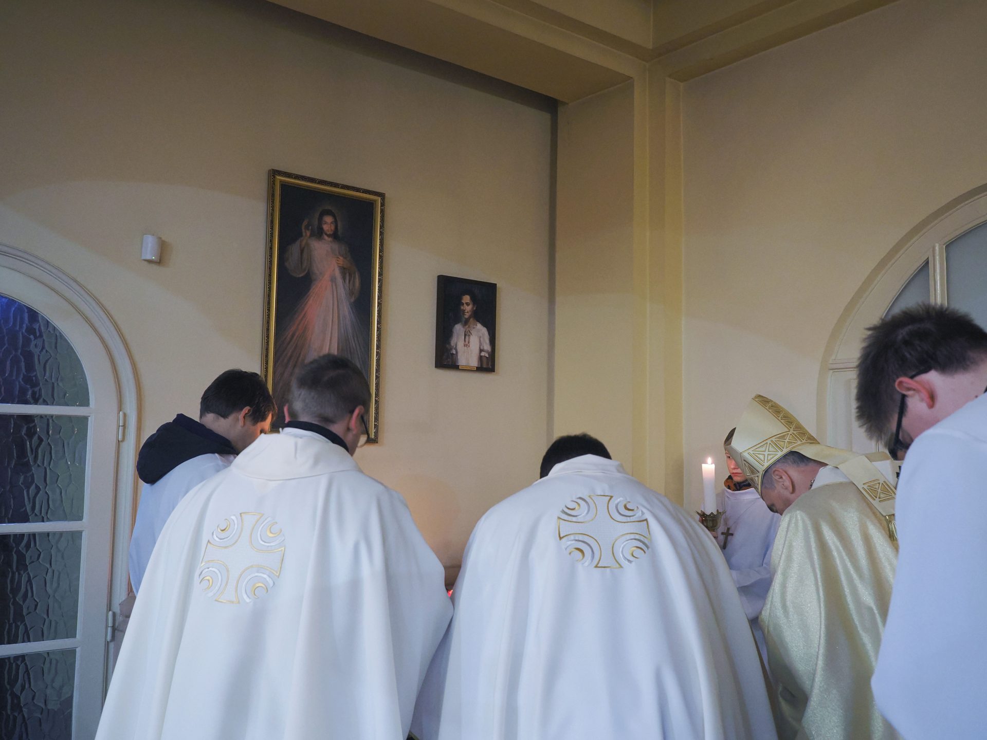 A liturgia végén a közösség – érsek atyával együtt – a templom bejáratához vonult, ahol ünnepélyesen elhelyezték Boldog Bódi Mária Magdolna képét és a hálanaplót.