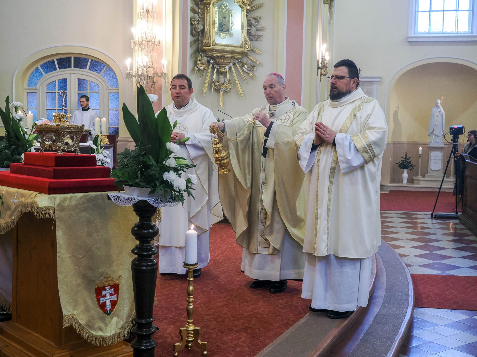 A záró részben elhangzott Árpád-házi Szent Margit ereklyéjének veszprémi története is, amely különösen szépen kapcsolja össze a templom, a plébánia és a főpásztorok életét. Felidézték: Mindszenty József veszprémi püspök 1944. december 3-án, a nyilas fogság idején – a veszprémi rendőrség fogházában – alapította meg a veszprémi Árpád-házi Szent Margit plébániát. Később, esztergomi érsekként sem feledkezett meg ígéretéről: 1946. január 25-én a püspöki palotában adta át a Szent Margit-ereklyét Szemes József atyának, majd 1946 tavaszán a hívek nagy sokasága kísérte át az ereklyét a Margit-templomba.