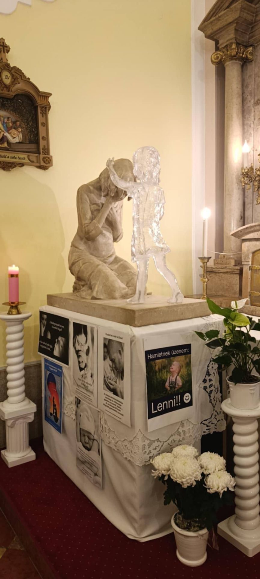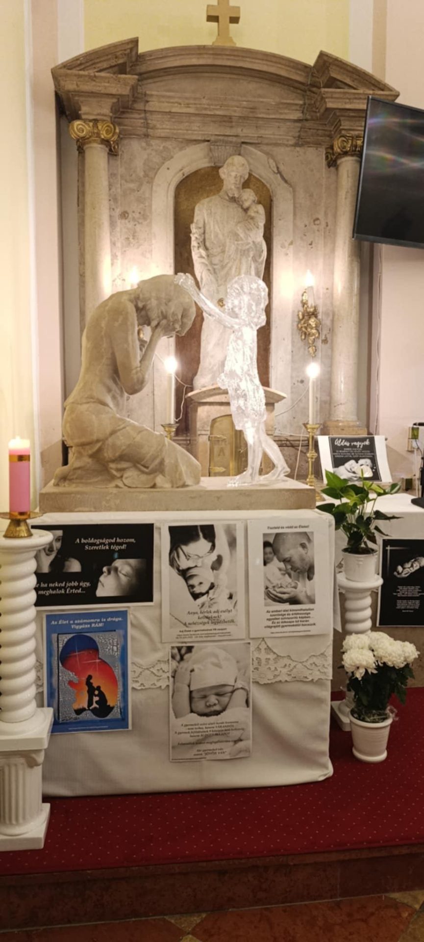 Az életvédelemről nem lehet eleget beszélni, sőt szükséges, hogy tettekkel is kifejezzük mérhetetlen fontosságát. Ez a szándék vezette Martin Hudáček cseh képzőművészt a Meg nem született gyermek c. szobrának megalkotásakor. A szobor a belső vívódásokat felszínre hozva ösztönöz bennünket párbeszédre, és egyben annak a szimbóluma, hogy mind a természetes, mind a művi magzatvesztés fájdalmából, gyászából Isten irgalmas szeretete által van gyógyulás. Az alkotás vándorszoborként járja már évek óta az országot. November eleje óta a Veszprémi Főegyházmegye plébániái, templomai adnak neki otthont, ahol szentmise, szentségimádás, keresztútjárás, rózsafüzér-imádság keretében emlékeznek meg az elvesztett magzatokról, imádkoznak a traumán étesett édesanyákért és édesapákért, valamint azokért a párokért, akik vágyva vágynak gyermekáldásra.