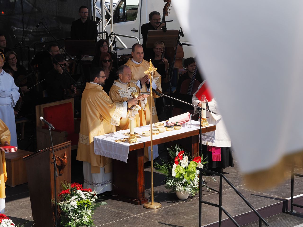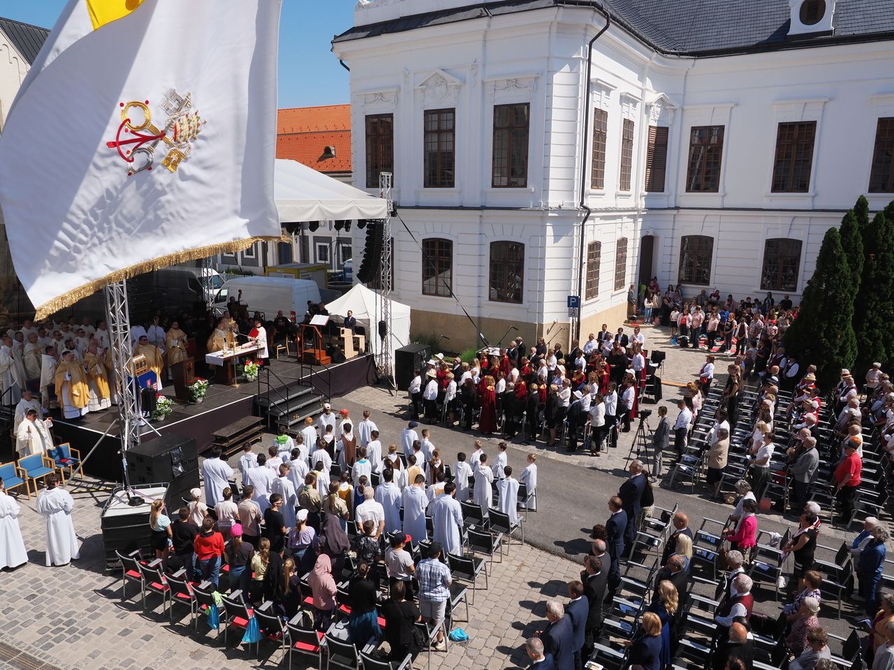 Igazi lélekemelő esemény várta a Gizella Napok nyitó szentmiséjének vendégeit. A hívőkkel együtt a Veszprémi Érsekség által meghirdetett országos hittanos és kórustalálkozó résztvevőivel több mint másfélezren gyűltek össze a Szentháromság téren.