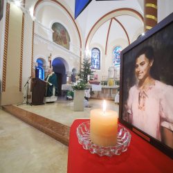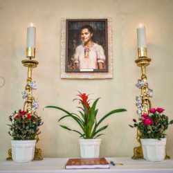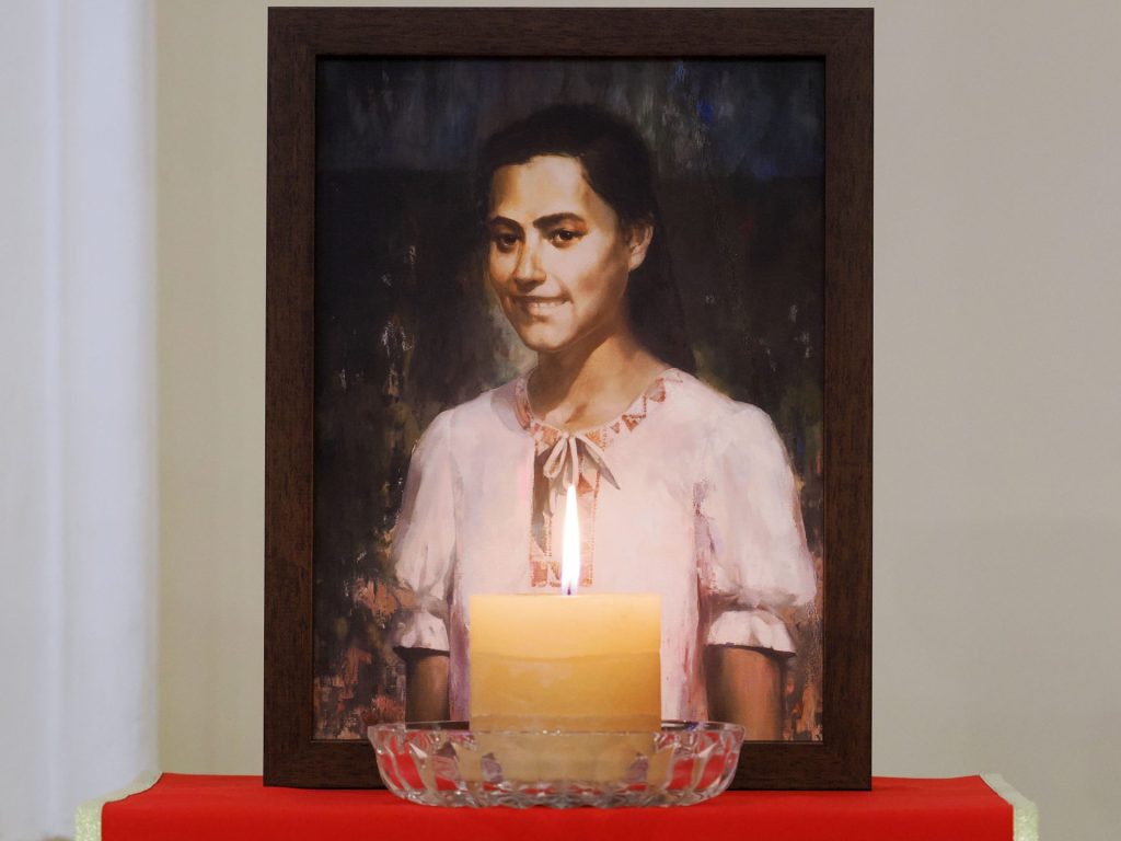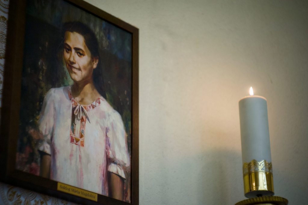 Boldog Bódi Mária Magdolna képe nem pusztán emlékeztet egy fiatalon vértanúságot szenvedett életpéldára. Amikor a hívek tekintete megpihen Magdi mosolyán, Krisztus arcának szelíd fényével találkozhatnak: azzal a szeretettel, amely nem vonul el a szenvedés elől, hanem jelen van benne, és átalakítja azt. A kép így válik csendes tanúságtétellé arról, hogy a szentség nem rendkívüli élethelyzetek kiváltsága, hanem a mindennapokban megélt hűség gyümölcse.