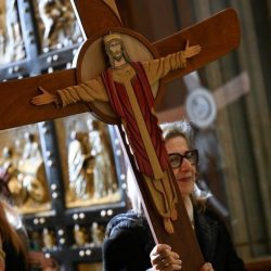 – Nagy öröm, hogy összejöhettünk Nagycsütörtök délelőttjén. Különleges alkalom következik most, amikor bemutatjuk a főszékesegyház új harangjait. Azoknak a szenteknek a tiszteletére ajánlottuk ezeket a harangokat, amelyek a főszékesegyházhoz, illetve a főegyházmegyénkhez is kötődnek – köszöntötte Kulcsár Dávid atya a krizmaszentelési misére érkező atyákat.