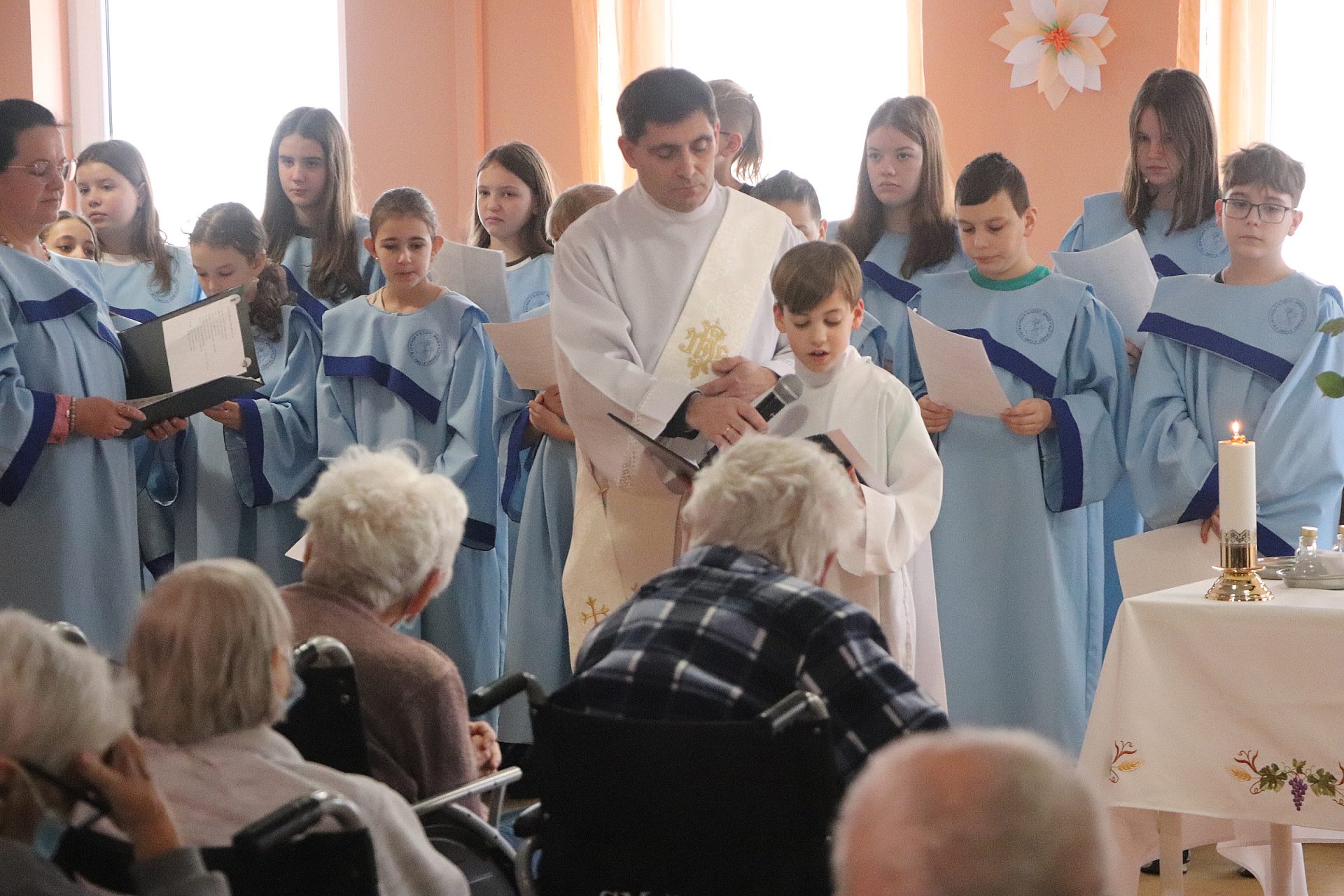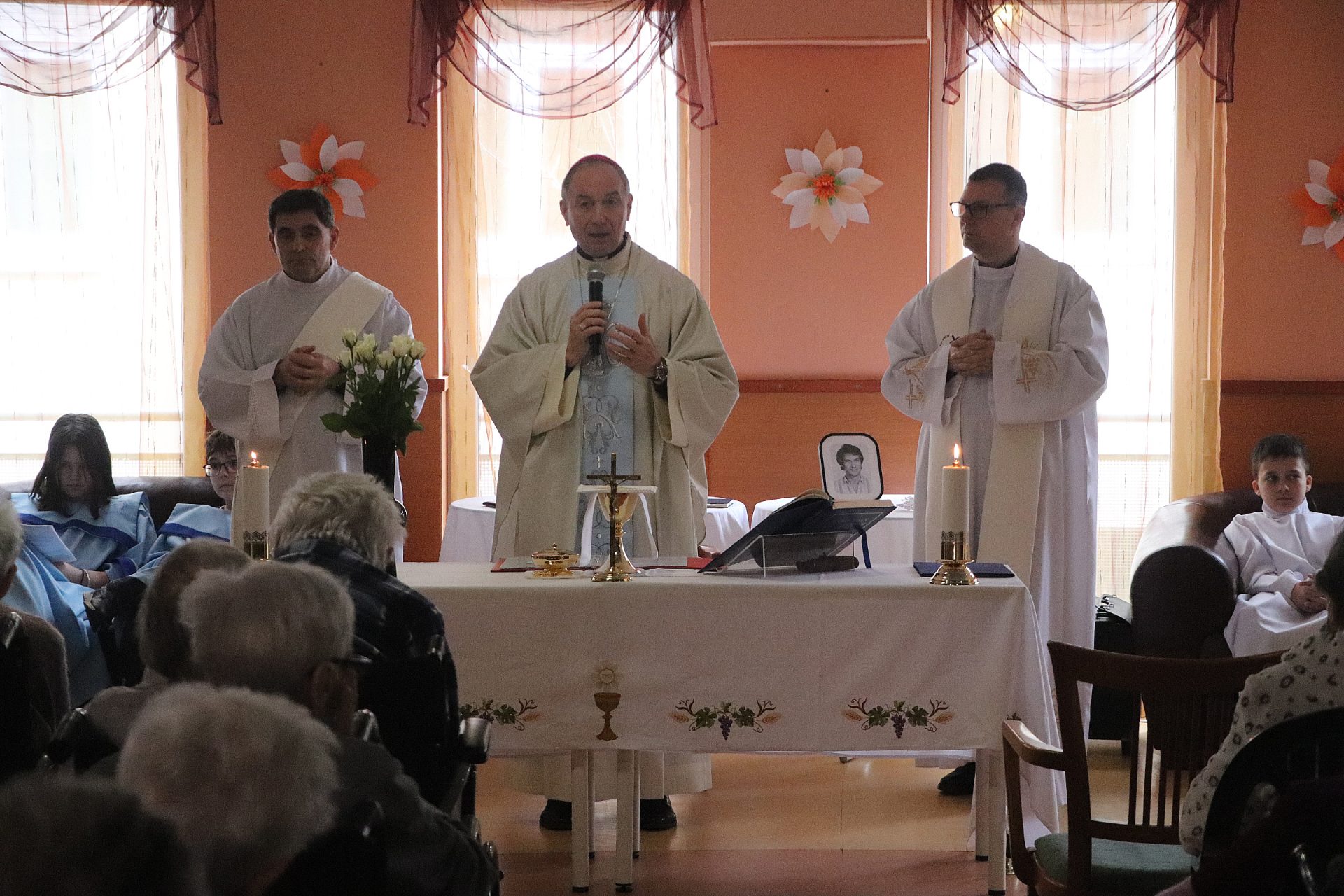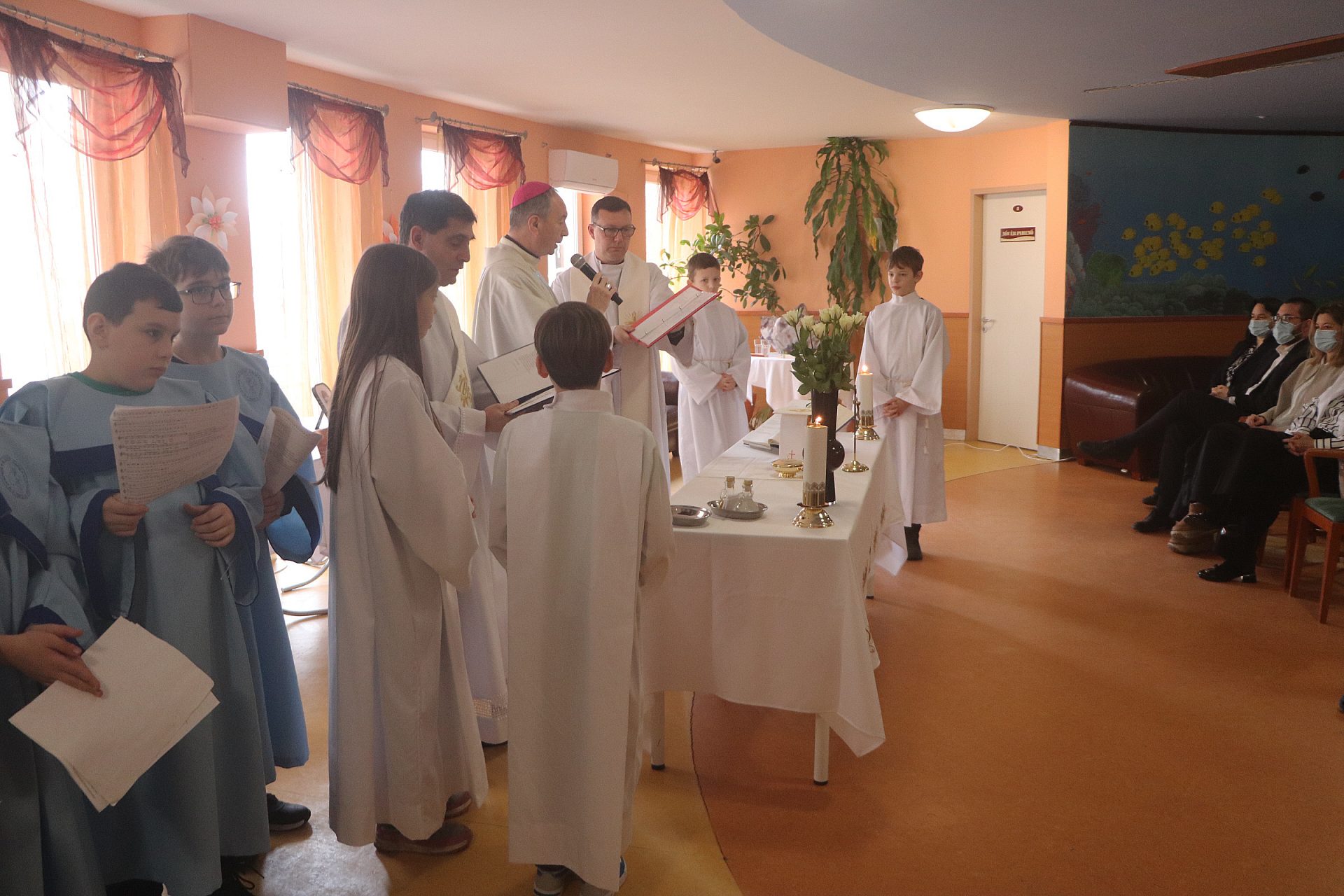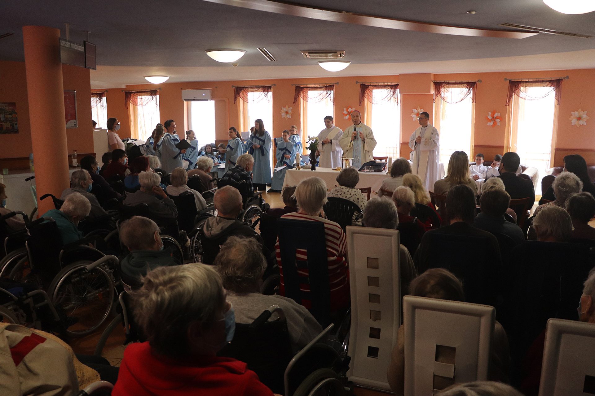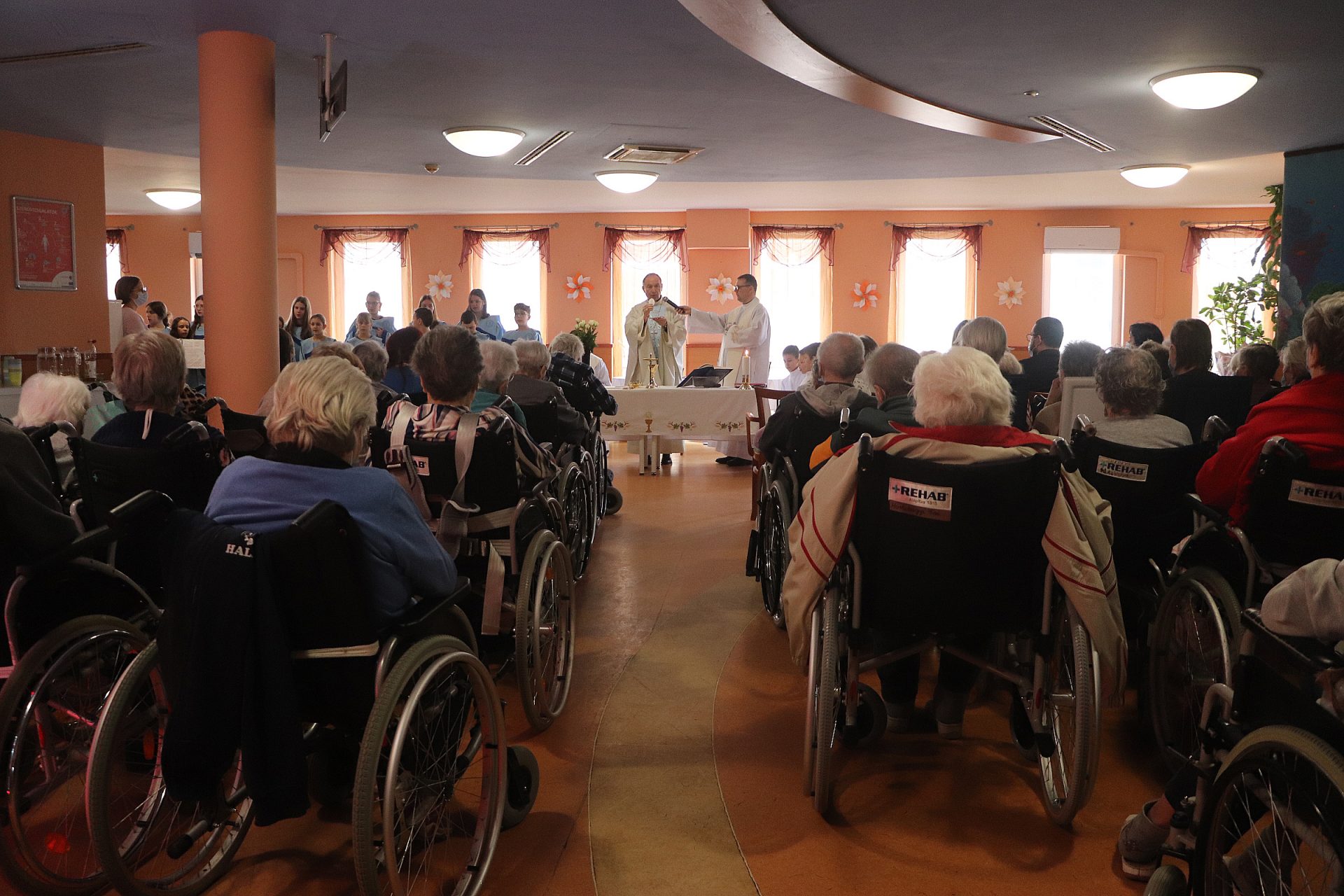 A szentmisén közreműködött a Nepomuki Szent János Katolikus Iskola kórusa. A liturgia után érsek atya meglátogatta az osztályokon fekvő betegeket, személyesen is bátorította őket, megköszönte az ott dolgozók áldozatos szolgálatát, majd megáldotta a hospice osztályon kialakított emlékhelyet.
