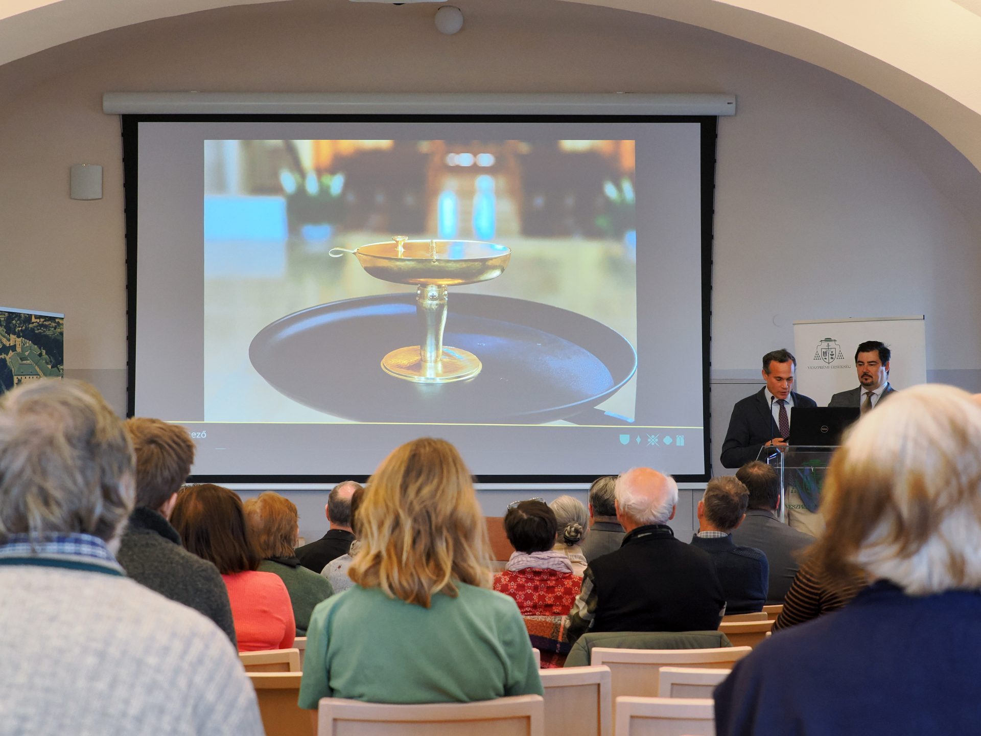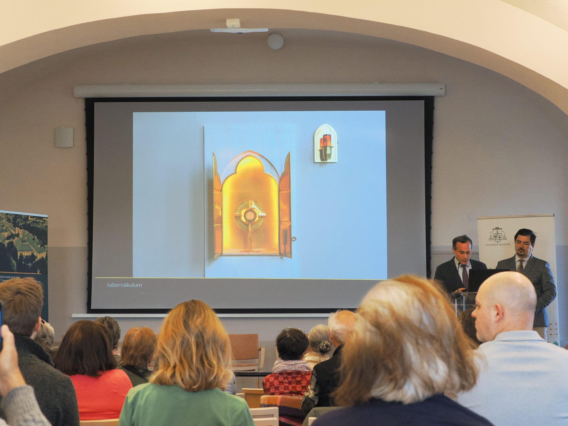 A napot Dr. Török Csaba, az esztergomi bazilika plébánosa nyitotta meg, majd Gelley Kristóf és Mátyás Zoltán ötvös-, fémműves-iparművészek a főszékesegyház új liturgikus tárgyait ismertették. Wölfinger Barnabás üvegtervező iparművész a templom új üvegablakainak üzenetét és művészi kivitelezését tárta a hallgatóság elé és beavatott mindenkit a restaurálás folyamatába.