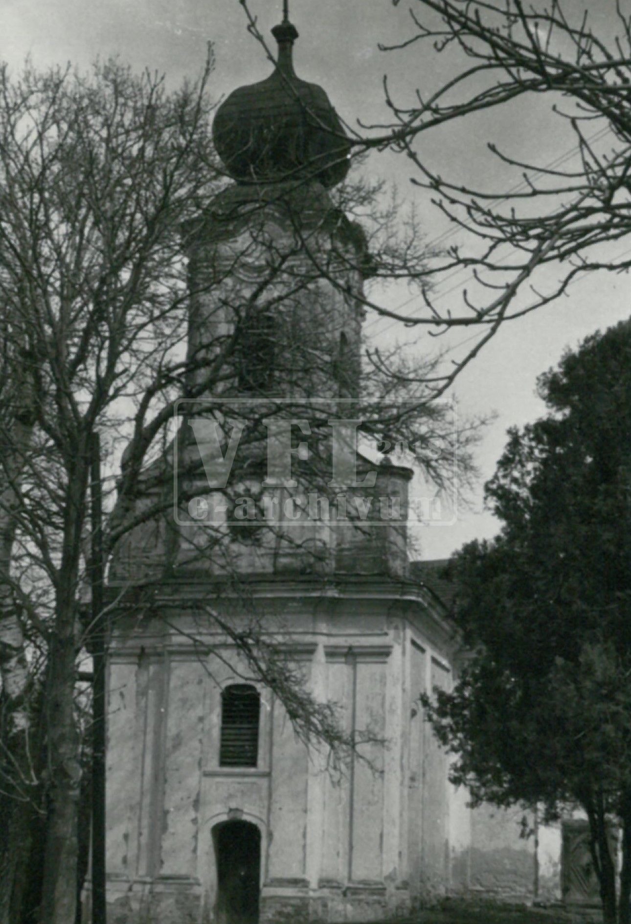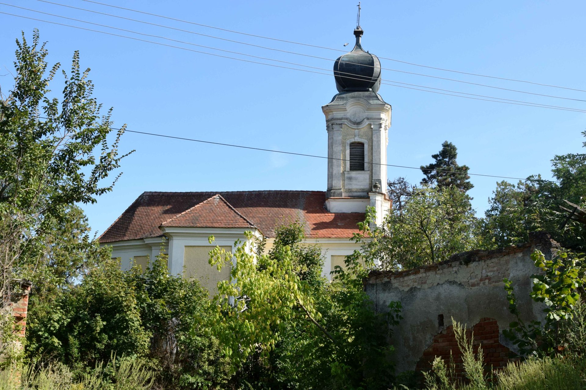 A településen átmenő út kanyarulatában, kis dombon áll a keletelt késő barokk templom. A szentély mögött középkori temetőt azonosítottak a régészek. A háromrészes főhomlokzat középső szakaszában nyílik a kőkeretes bejárat, felette magas attikafalon emelkedik az órapárkányos, hagymasisakos torony. Az attikafal ad helyet az építtető házaspár kettős kőcímerének. A homlokzatokat lizénák és mélyített tükrök tagolják, egységesen körbefutó lábazat és tagolt koronázópárkány fogja össze a szabálytalan görögkereszt alaprajzon tagolt tömegű templomtestet. A toronyaljból modern vasrácson át kétszakaszos hajó nyílik, csehsüveg-boltozatát a hevedereken és a záradékban egyszerű profilú keretezés tagolja. Az első szakasz felét a falazott, hasábos pilléreken és kosáríves boltíveken nyugvó, egyenes mellvédű orgonakarzat foglalja el. A tágas egyhajós hosszházhoz kosáríves diadalív közvetítésével keskenyebb, kívül-belül szabálytalan poligonális, nyújtott szentély csatlakozik.