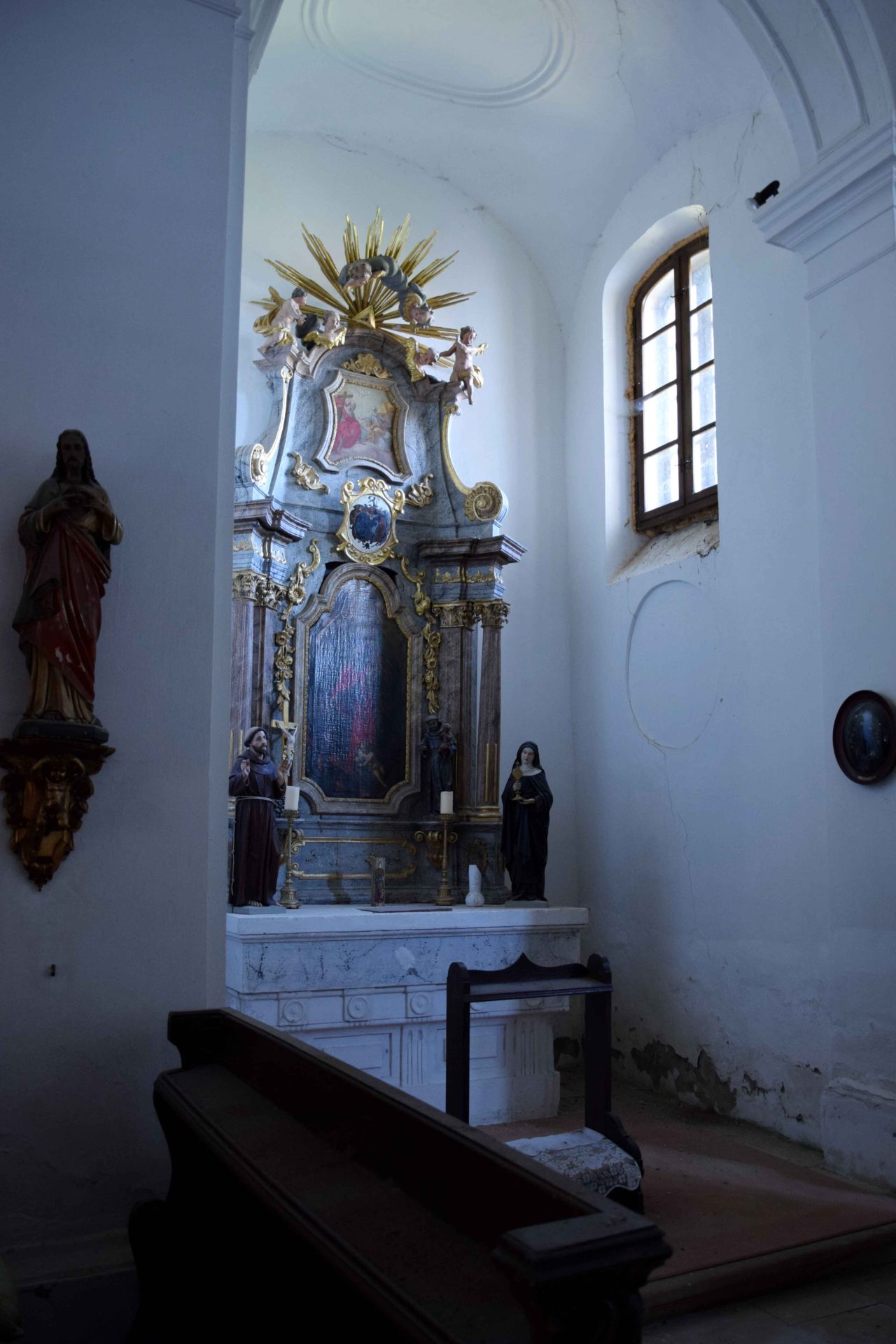 A második szakaszban a hajóhoz mindkét oldalon, de eltérő alaprajzú bővítmény csatlakozik. A déli nagyobb kiugrású, kétszintes: a földszinten sekrestyével, az emeleten oratóriummal, azaz kegyúri karzattal, amely kívülről, a nyugatról nyíló falépcsőn át megközelíthető. A karzat a belsőben nem bontja meg az egyhajós teret: a földszinten széles festett fakeretes ajtóval, az emeleten mellvéd felett a falszakasz teljes szélességét elfoglaló négyszárnyú ablakkal nyílik. Az északi toldalék egy mellékkápolna, amely azonban teljes magasságában árkádívvel nyílik a hajóra. Az oltár „keresztirányban”, az északi végfal előtt kapott helyet, a keleti falon a hajó nyílássorába illeszkedő állótéglány, íves záradékú ablak nyílik. Az alatta lévő falmezőben – mindkét oldalon – ovális mélyített tükör látható.