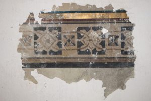 A restaurátori megfigyelés szerint a 20. század eleji kifestés rossz megtartású enyves festékkel készült, ami hamar pusztulásnak indult, és később gyenge minőségű felülfestésekkel javították. A diadalív felett a feltárásokat követően is megmaradt a 20. század eleji alakos kifestés felső része: angyalok harsonákkal és bíborosi jelvényekkel.