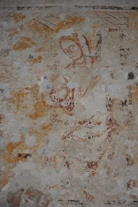 A 2001. évi szondázás már előre jelezte, amit a 2022-es feltárások igazoltak: a szerény méretű, egyszerű középkori templombelső is teljes mértékben festett volt. Bibliából vett jelenetek sora, a szentélyben szentek mellképei, evangélista szimbólumok és további, töredékes ábrázolások maradtak fenn. A kutatási eredmények részletes közlése még nem történt meg. A konzervált falkép-töredékek helyreállításra várnak.