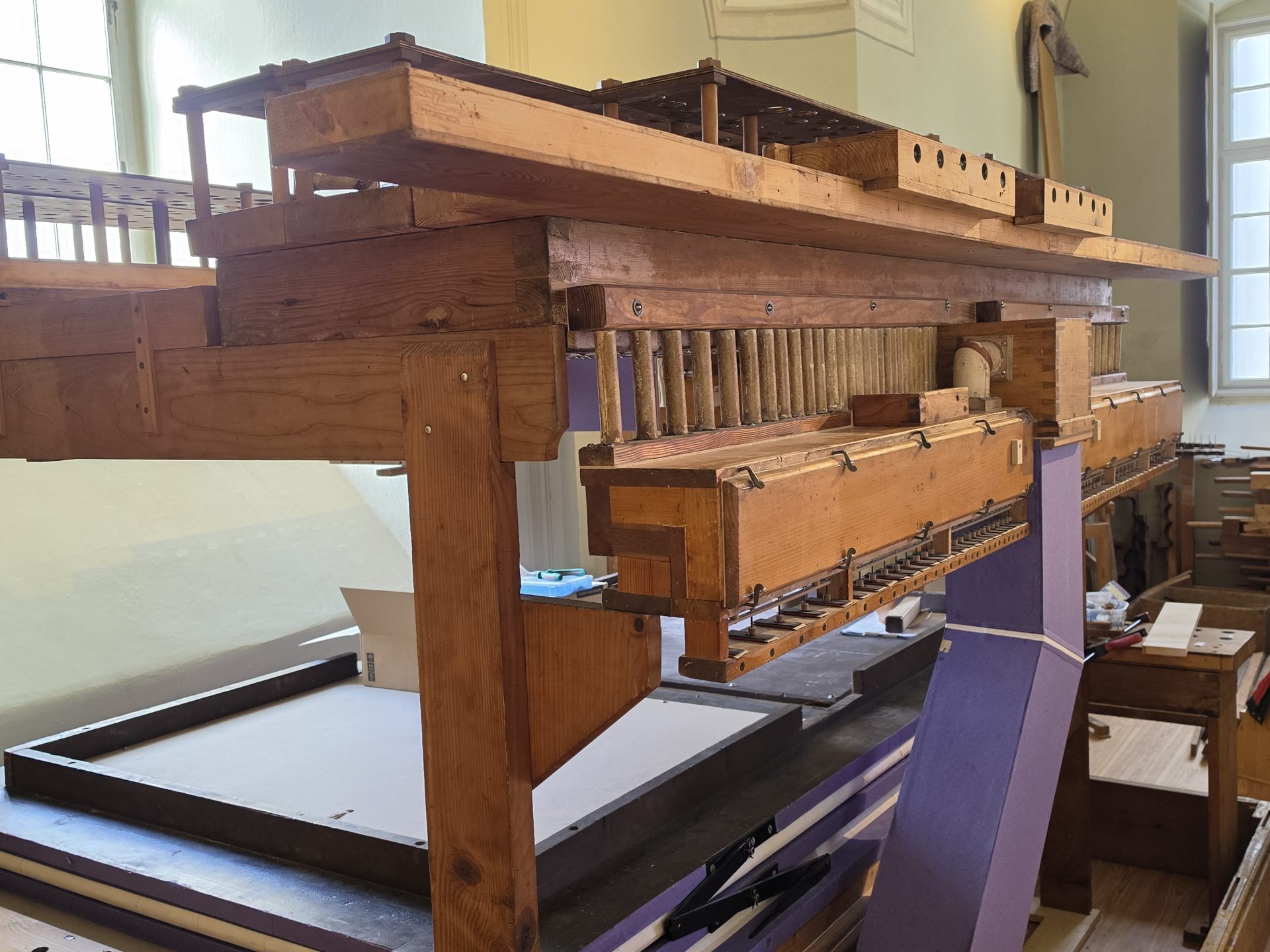 A felújítás során az orgona gyakorlatilag minden alkatrészét átvizsgálták és szükség esetén megújították. A hangszer belsejében található több tízezer apró alkatrészt – köztük a bőrből készült membránokat és fúvókat – restaurálták vagy kicserélték. A szakemberek minden esetben az eredeti anyagokhoz és technológiákhoz igazodva dolgoztak.