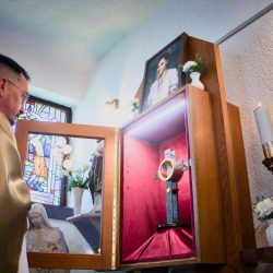 A szentmise záró áldását követően György érsek Boldog Mária Magdolna ereklyéjével áldotta meg a jelenlévőket, majd a hívek elzarándokoltak Boldog Bódi Mária Magdolna vértanúságának helyszínére. Az emlékműnél érsek atya és Magdi élő családtagjai helyezték el az emlékezés virágait.