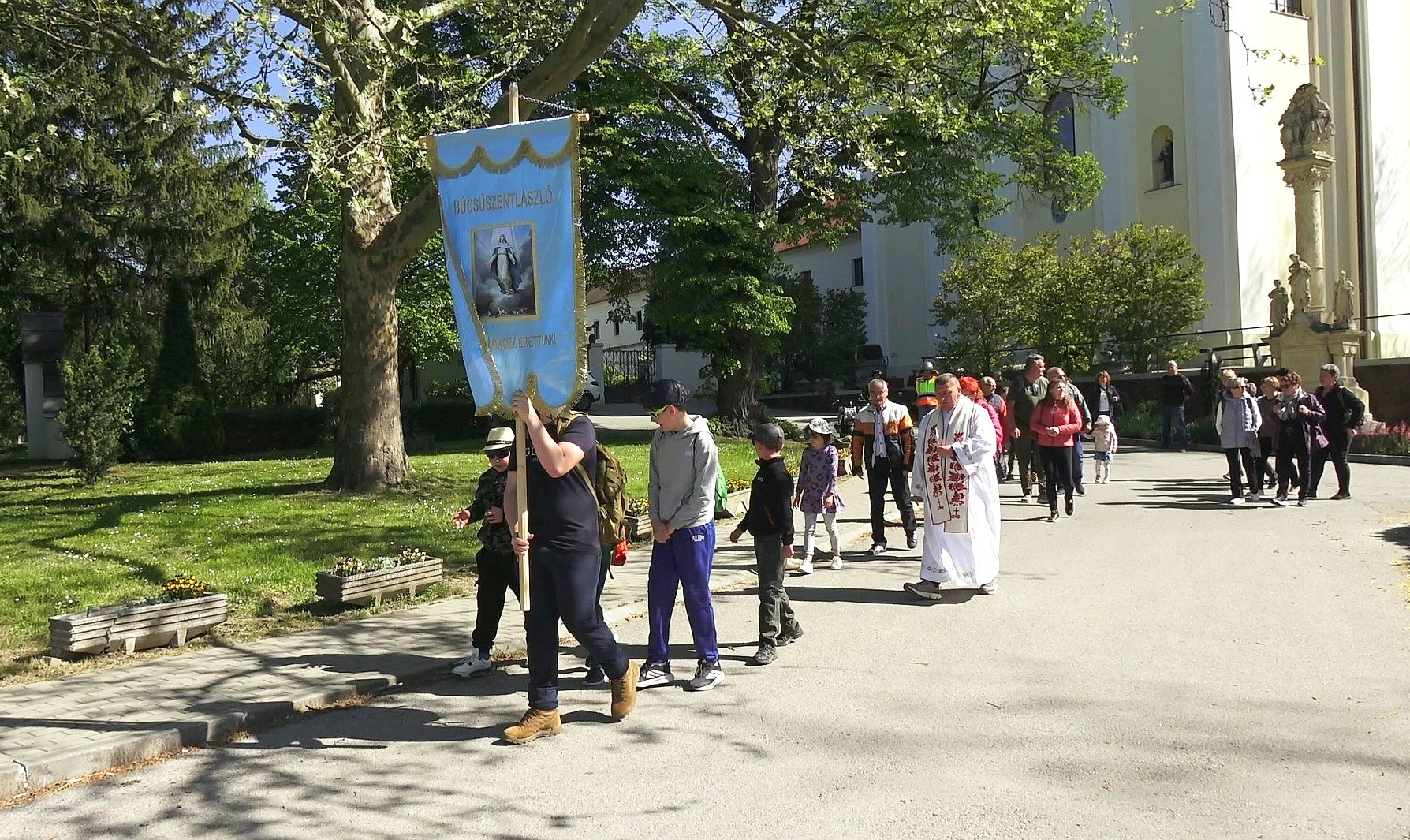 A gyalogos keresztalja a délelőtti órákban indult a búcsúszentlászlói templom elől. A résztvevők imádságos lélekkel járták be a határt, kérve a feltámadt Krisztus áldását a teremtett világra és az emberi munkára.