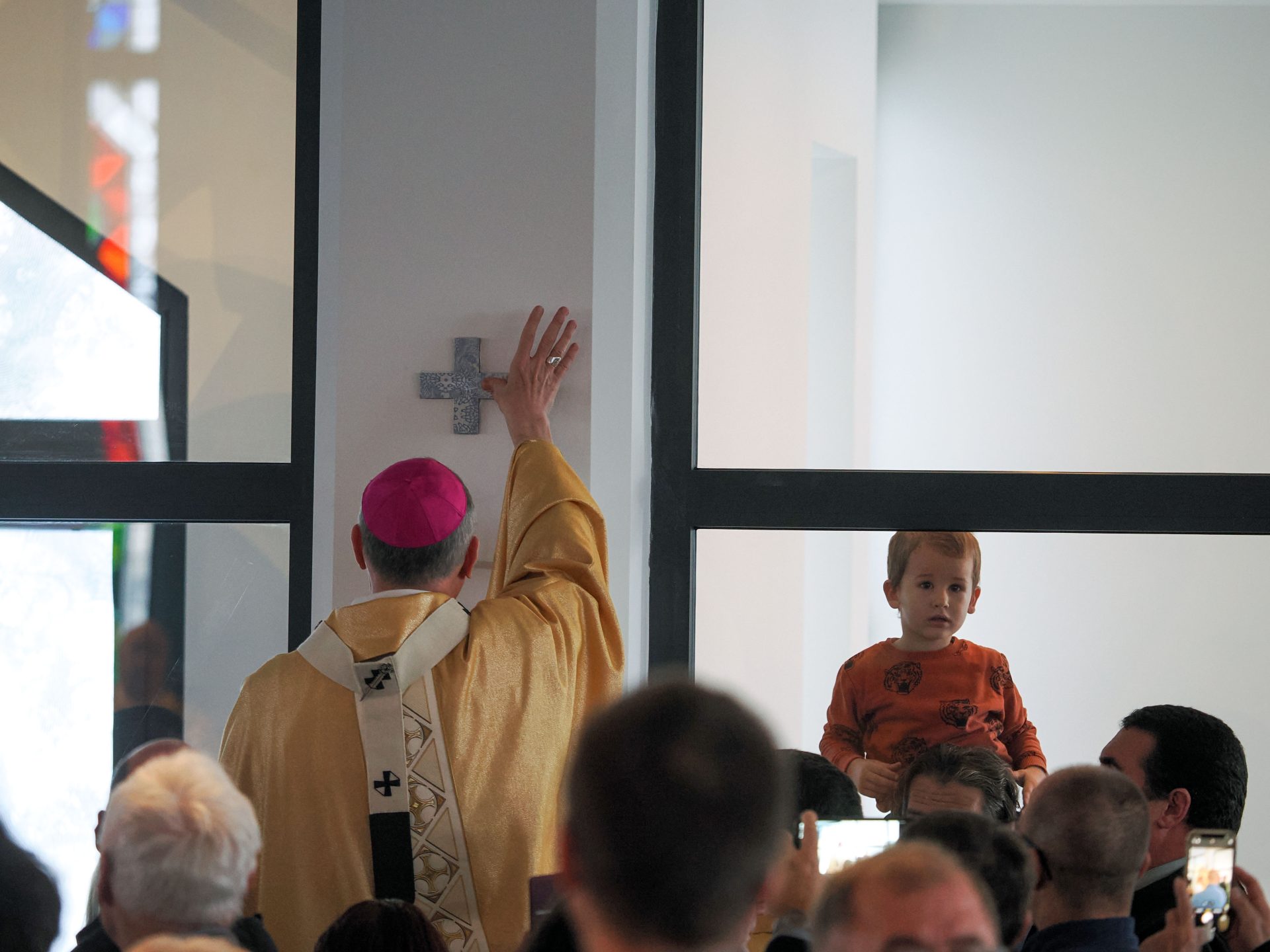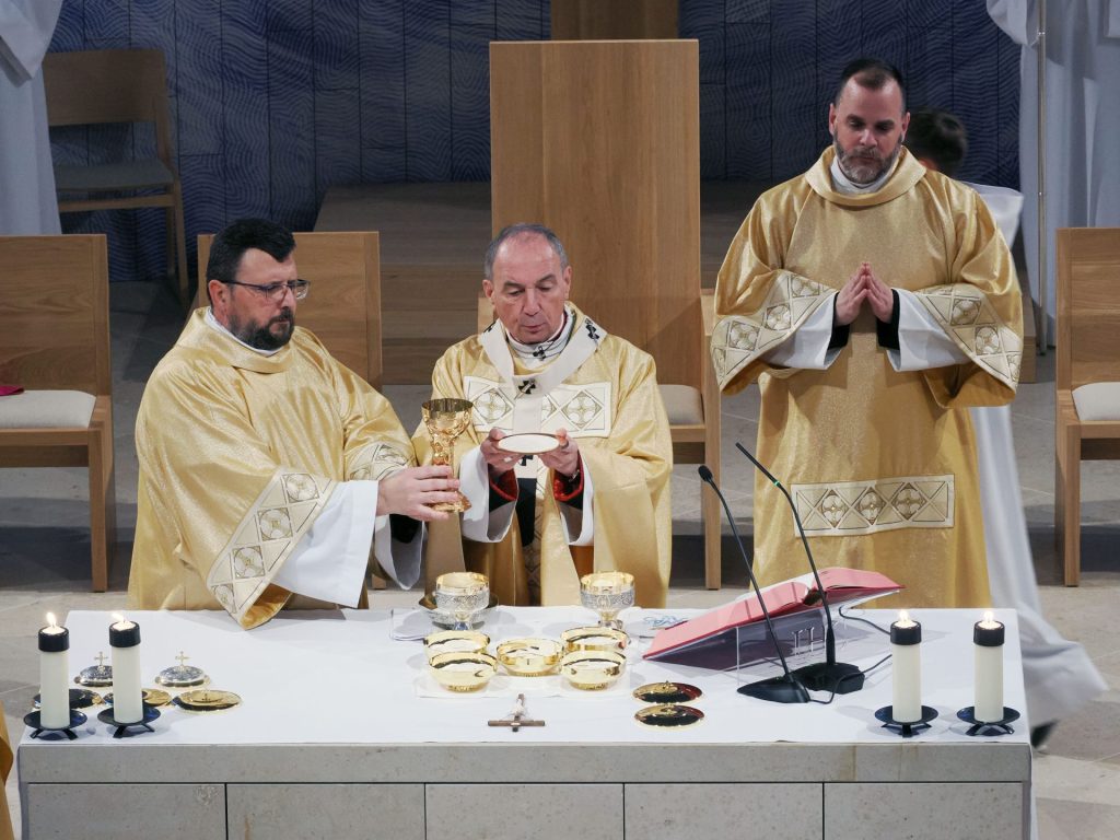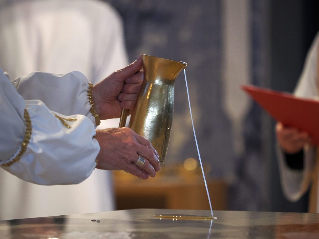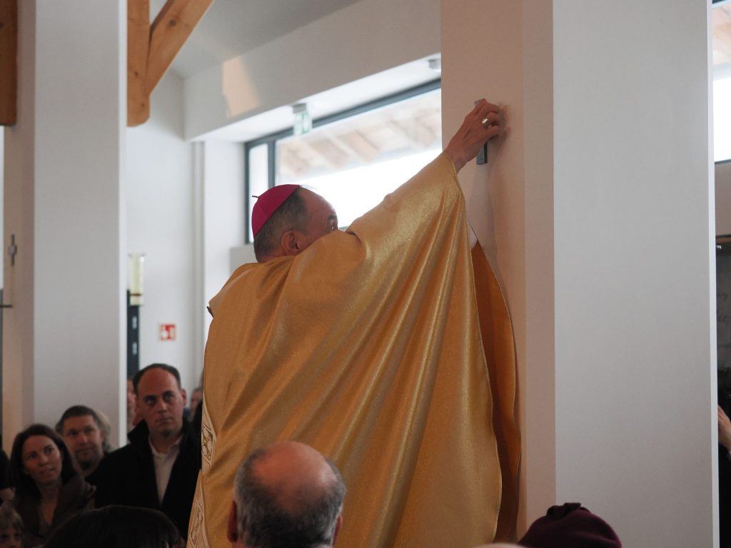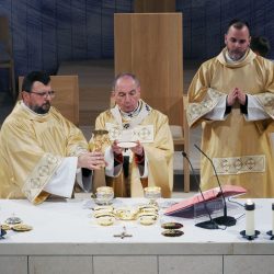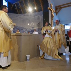 A templomszentelés liturgiájának egyik legmegrendítőbb pillanata az oltár krizmával való megkenése. A krizma – az egyház legillatosabb és legszentebb olaja – Krisztus erejét, jelenlétét és a Szentlélek kiáradását jelképezi. A főpásztor a szent olajjal kereszt alakban megkente az oltárt, ezzel szentelte fel azt arra, hogy Isten és ember találkozásának helye, Krisztus áldozatának asztala legyen. Ettől a pillanattól kezdve az oltár nem egyszerű kő, hanem a szentmise misztériumának központja lett.