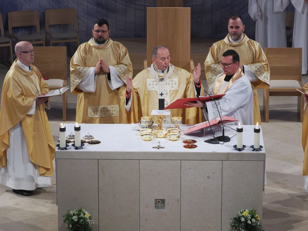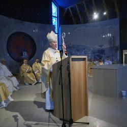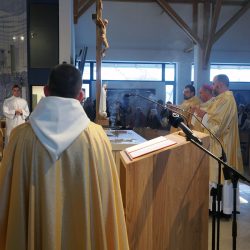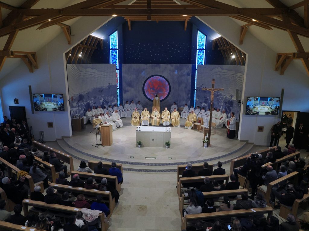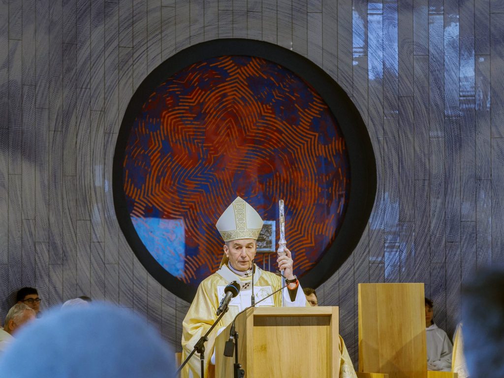 „Krisztus győzött – és ránk bízta a kiengesztelődés szolgálatát” Dr. Udvardy György érsek atya homíliájában Krisztus Király ünnepének üzenetével világította meg az új templom küldetését.