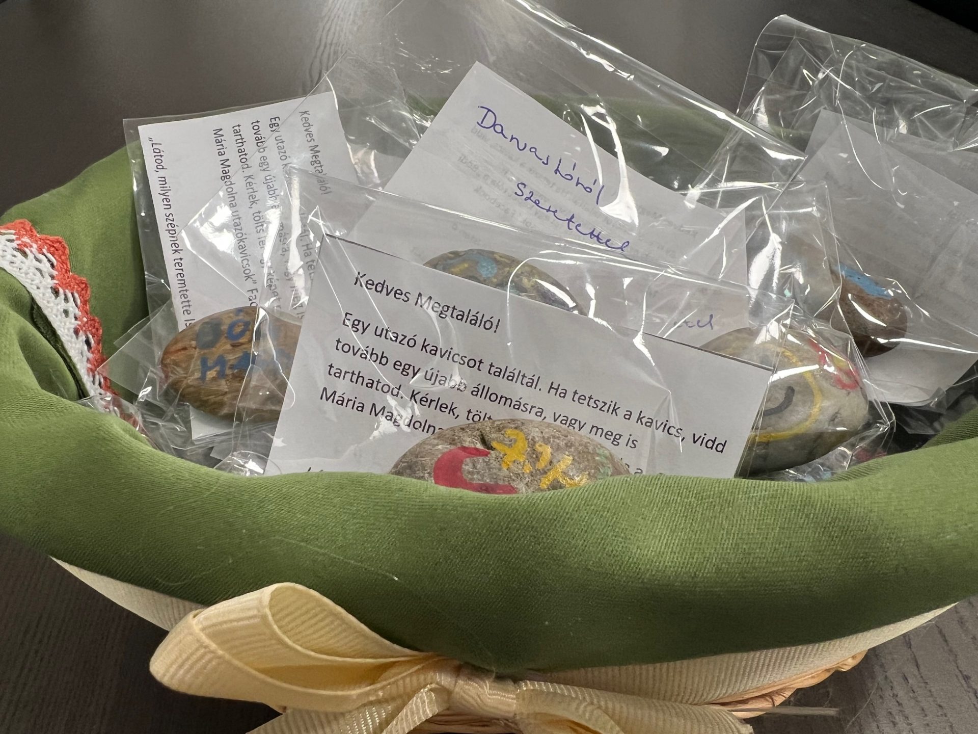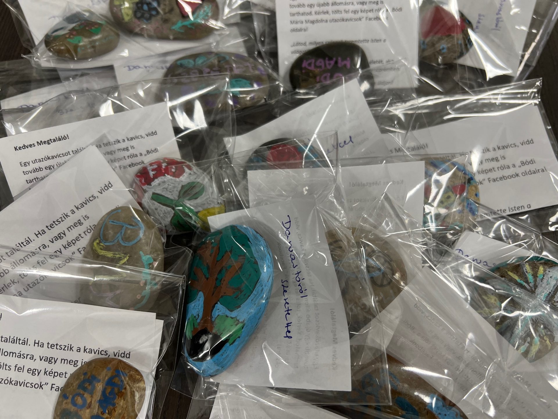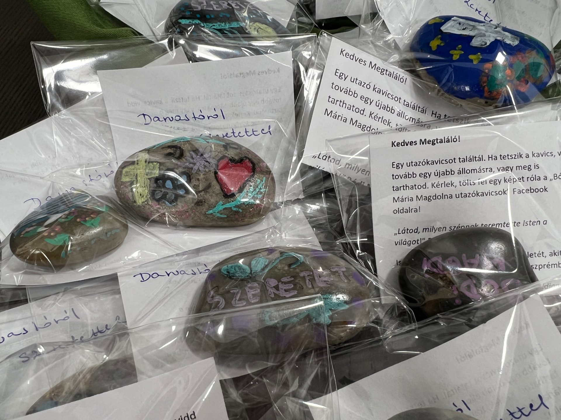 A látogatás végén érsek atya különleges ajándékot kapott: az intézmény lakói saját kezűleg készített, gondosan becsomagolt Boldog Bódi Mária Magdolna utazókavicsokkal lepték meg. Ezek a színes, üzenetet hordozó kövek nemcsak kézműves alkotások, hanem személyes tanúságtételek is: annak jelei, hogy az emberi kreativitás, az odafigyelés és az öröm ajándéka minden élethelyzetben megszülethet.