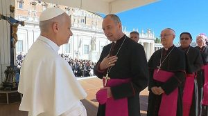 Érsek atya megköszönte a Szentatyának, hogy a szeptember 6-án, Veszprémben történt boldoggá avatási szertartás során Egyházunk oltárra emelte és immár a boldogok között tiszteli Boldog Bódi Mária Magdolna szűz, vértanút.