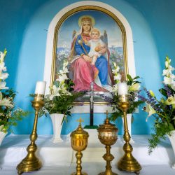 Az ünnepélyes szentmise elején Dr. Székely János megáldotta a megújult kápolnát és a haranglábat is.