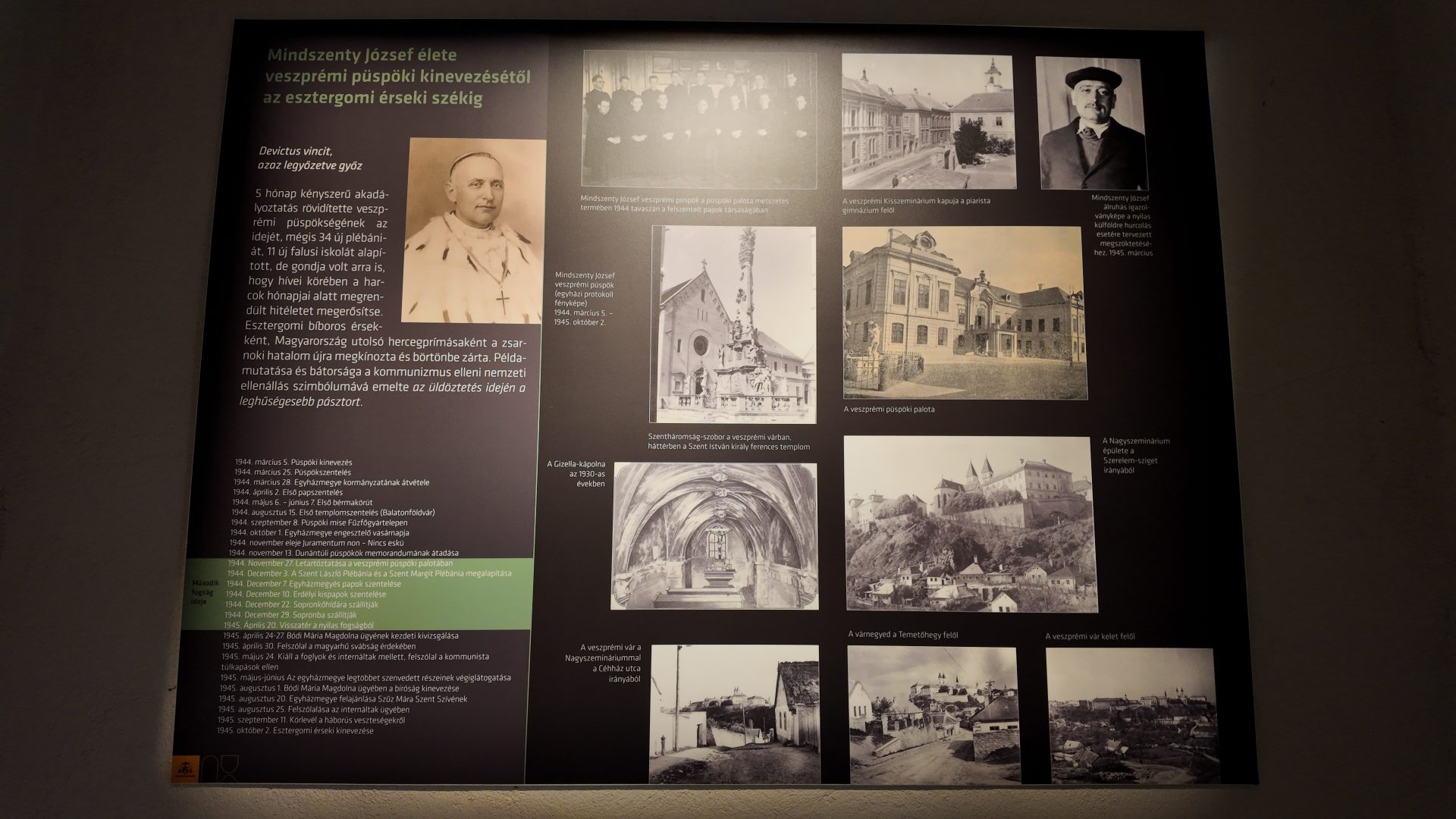 Érsek atya a tárlatvezetés elején felidézte, milyen történelmi körülmények között került Mindszenty püspök a veszprémi egyházmegye élére. 1944. március 5-én nevezték ki püspökké, a szentelésére márc. 25-én került sor Esztergomban, március 28-án pedig hivatalosan átvette az egyházmegye irányítását.
