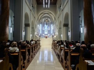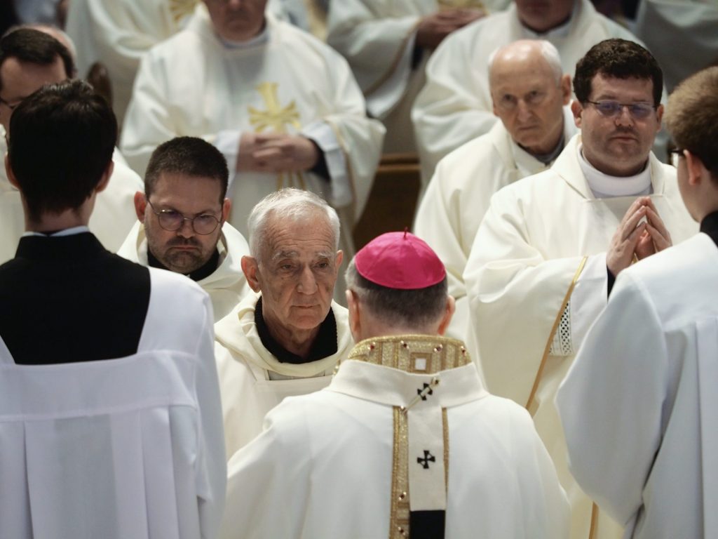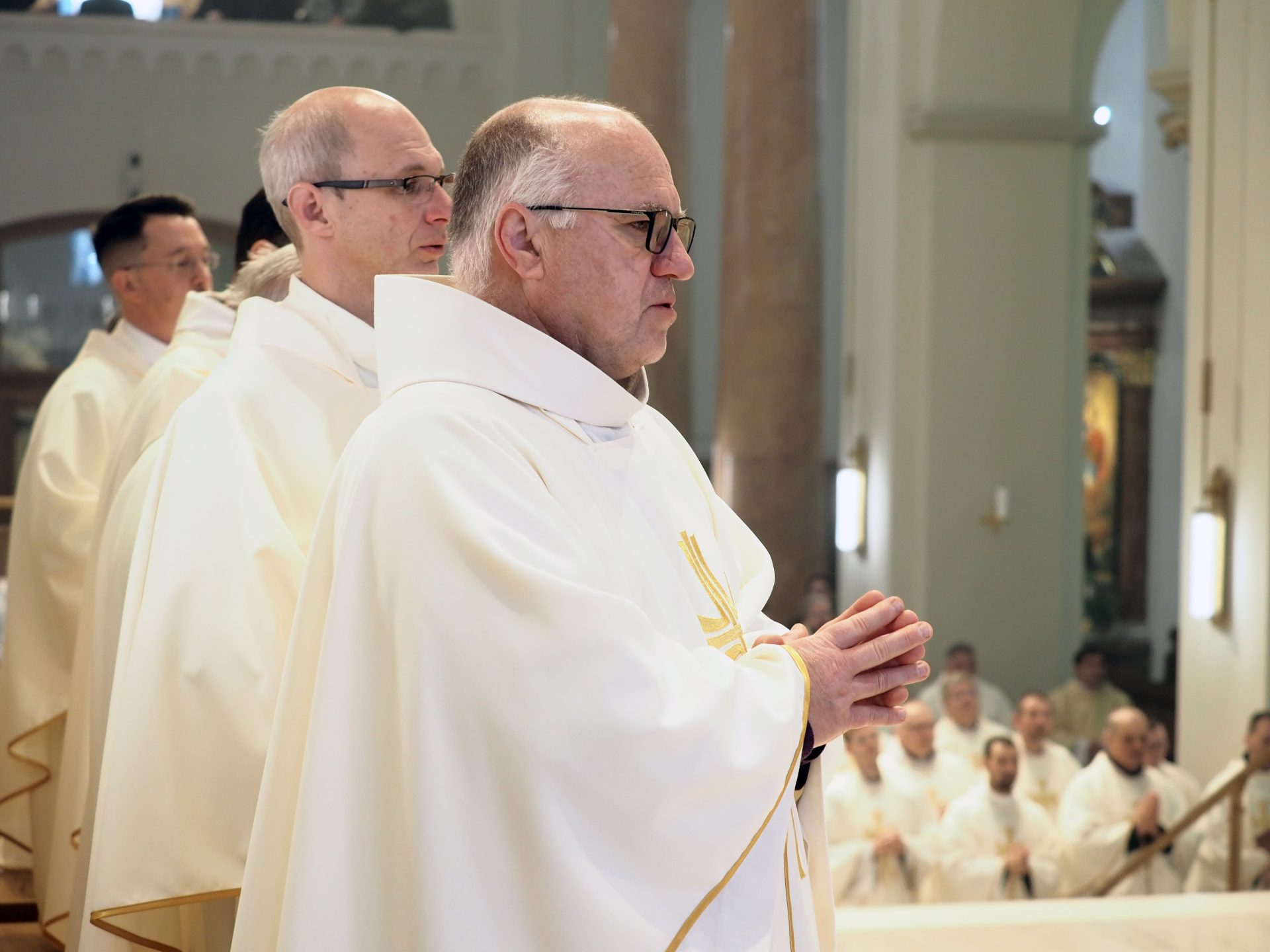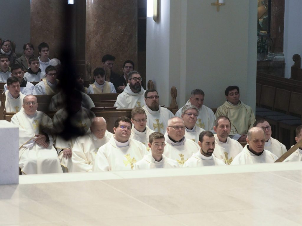 A nagyhét kiemelkedő liturgikus eseményén, az olajszentelési szentmisén együtt ünnepelt a Veszprémi Főegyházmegye papsága és hívei a veszprémi Szent Mihály Főszékesegyházban, április 2-án.