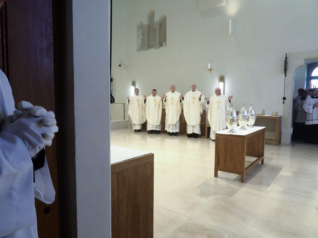 Sajátos egyháztapasztalat a nagycsütörtöki krizmaszentelési szentmise. Ahol kiemelten a papság, a szentség, a szentséget formáló erők és az imádság vannak jelen. Egyszerre visszatekintés ez: kik voltunk, kik vagyunk, és egyszerre előretekintés is. Szimbolikus és óriási ereje van annak, hogy a főszékesegyházban történik ez a mise, és külön jelentőséggel bír, hogy a hajdani Nagyszeminárium épületéből indulhattunk. Talán itt már senki sincs, aki annak idején ebbe az épületbe papnövendékként járt, azonban az egyházmegye számára fontos az épület, s az a gondolat, amit a Nagyszeminárium hordoz. Szeretnénk ma bensőségesen, méltó módon ünnepelni. Testvéri, papi közösségben és szeretnénk az Istennel való közösséget a lehető legtisztábban megélni. Ezért ismerjük el most is, rászorulunk Isten könyörületére.