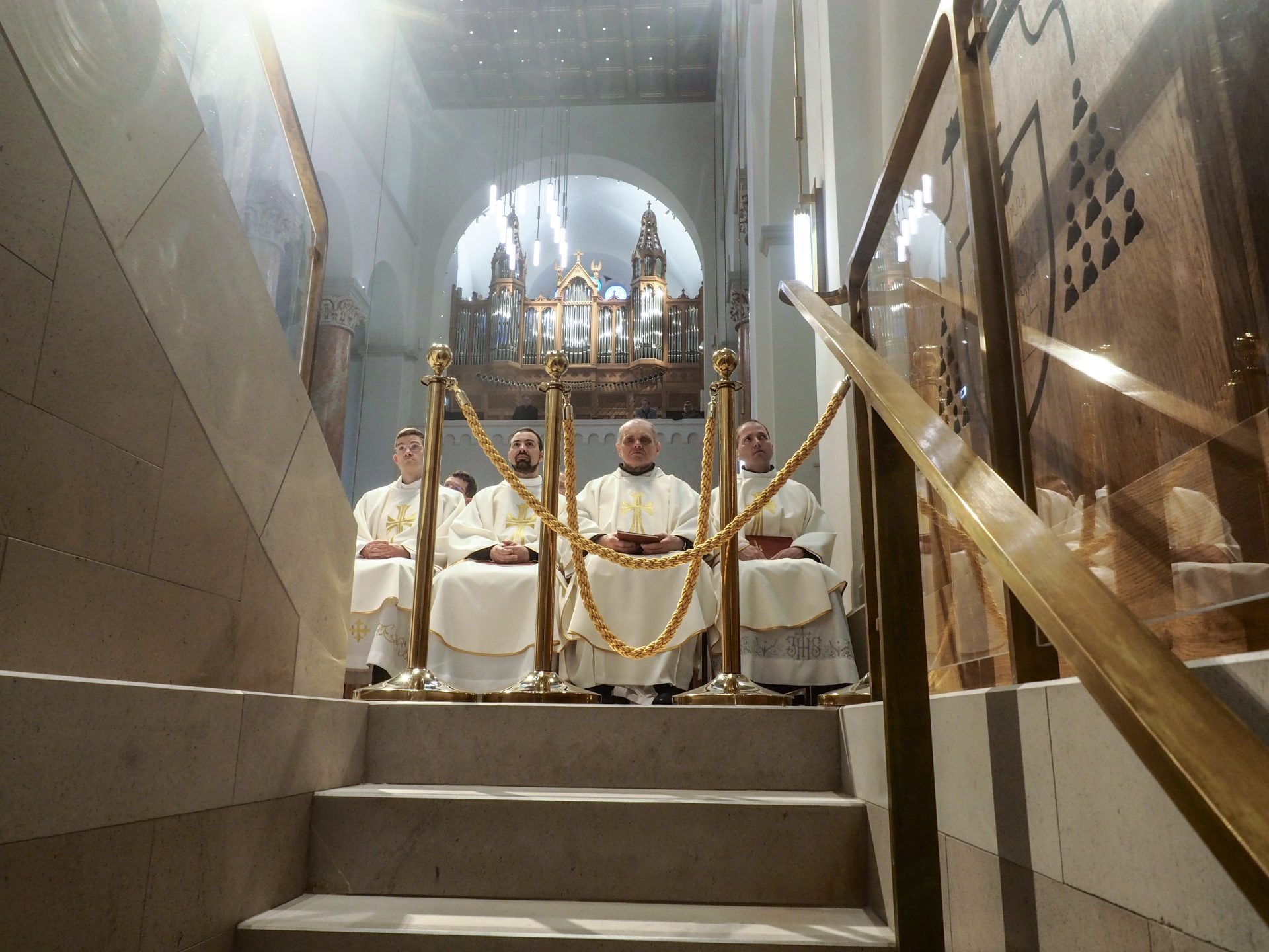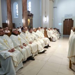 Az Isten az Ő szava által úgy beszél rólunk, mint Isten szent papjairól. Majd hozzáteszi: a nép így emlékezik meg rólatok – az igaz Isten szolgái közöttünk. Micsoda magasztos meghívás ez! És milyen nagy a mi kiválasztottságunknak, szolgálatunknak a méltósága. Ez nemcsak ünnepi pillanatokban, nemcsak rendezett körülmények között, hanem a hétköznapokban is igaz. Akkor is, amikor sokkal inkább a küzdelem, a széthúzás vagy a hiány emelkedik ki. Vagy sokkal inkább megérinthet bennünket minden munka, erőfeszítés, próbálkozás ellenére, mintha az eredmény nem mutatkozna. Mennyire szükség van a szentségnek a tudatára, a szentségnek a hordozására és tapasztalatára. Mert az Isten erre hívott, így tekint rám, bárhol is szolgálok a főegyházmegyében, bármilyen feladatom is van, bármilyen körülmények vegyenek is körül, a szentségek szolgálatára hívott.