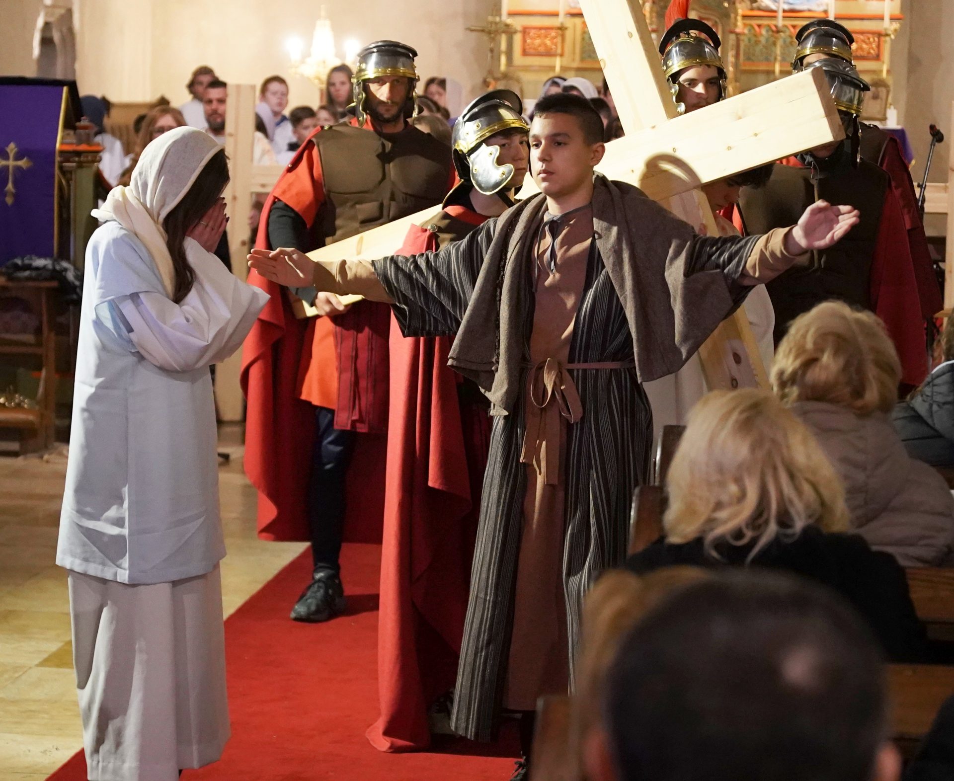A húsvéti szent idő közeledtével idén is megrendezte a Via Crucis passiójátékot a keszthelyi Ranolder Iskola közössége folytatva a tavaly újjáélesztett szép hagyományt. Az előadás – a zord idő miatt – ezúttal a Magyarok Nagyasszonya Plébániatemplomban kapott helyet, ahol a szakrális teret különösen mély lelki tartalommal töltötte meg a bemutató.