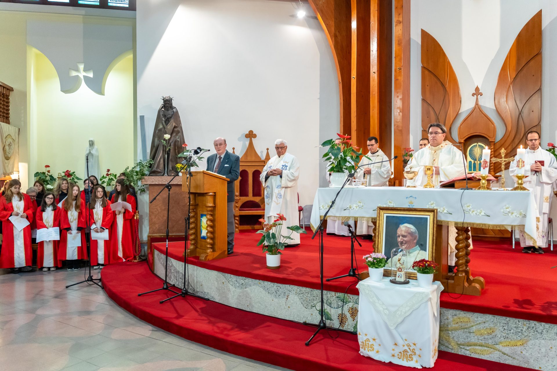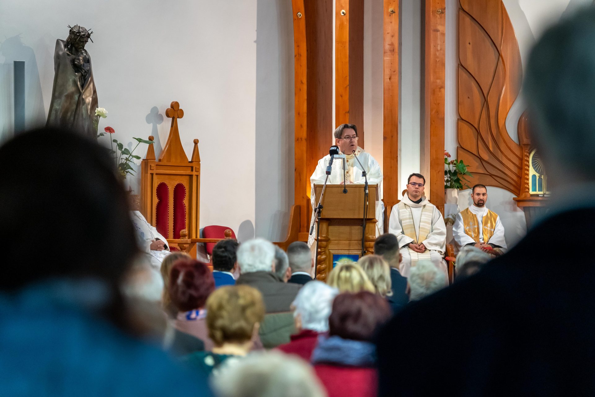 A homília végén helynök atya megindítóan idézte fel a pápa utolsó éveit: betegen, gyengülő testtel, de töretlen hittel viselte keresztjét.