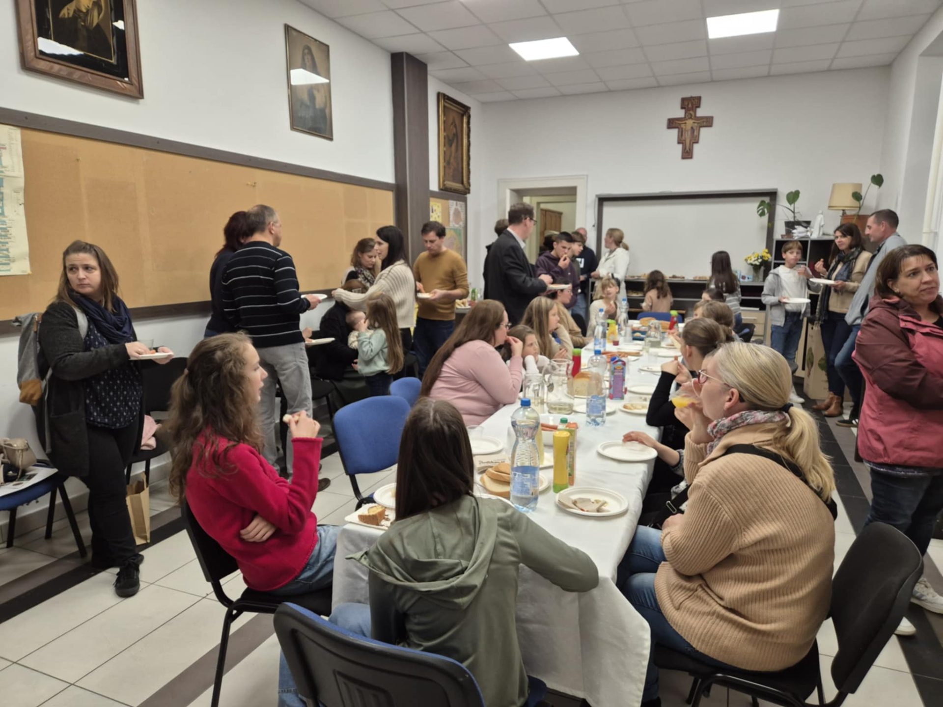 A jelenlévők meghallgatták Horváth Gergő művészettörténész előadását is, amely a plébánia kialakulásának történetét mutatta be, új felismerésekkel és sok érdekességgel gazdagítva a hallgatóságot. A nap során lehetőség nyílt személyes kérdésekre és beszélgetésre Dr. Bacsa Dávid plébános atyával, majd a közösség csendes, mély imádságban egyesült a szentségimádás alatt. A szombati együttlétet szeretetteljes, testvéri légkörű agapé zárta.