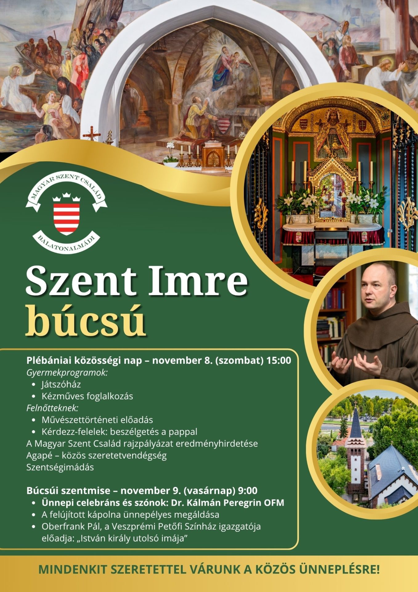 Balatonalmádi katolikus közössége november első napjaiban örömmel és hálaadással ünnepelte Szent Imre herceg búcsúját, amely évről évre a plébánia egyik legfontosabb lelki eseménye. A rendezvénysorozat egyszerre volt családi találkozás, lelki megújulás és közösségépítő ünnep, amely minden korosztályt megszólított.