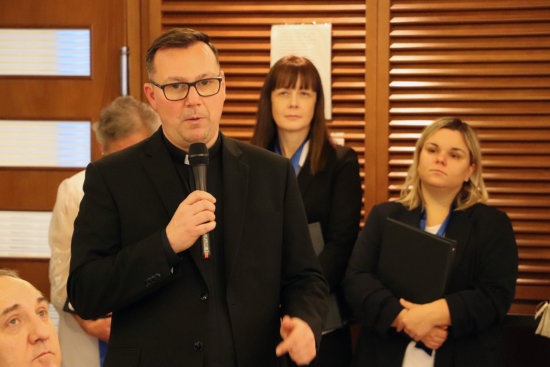 A rendezvényt Szijártó László, a Veszprém–Főegyházmegyei Karitász lelki vezetője köszöntötte. Advent harmadik vasárnapjához, az öröm gyertyájához kapcsolódva egy személyes történeten keresztül mutatott rá arra, hogyan válik Isten szeretete kézzelfoghatóvá az emberi törődésben. Egy kórházi ágyhoz kötött idős asszony történetét idézte fel, aki egy egyszerű, mégis mély gesztus – egy nővér mosolya és gondoskodása – által élte meg, hogy imádságai nem voltak hiábavalók. A lelki vezető hangsúlyozta: Isten sokszor nem úgy segít, ahogyan mi elképzeljük, hanem egymáson keresztül mutatja meg irgalmát és közelségét. A Karitász és a segítő szervezetek szolgálata éppen ezt a szeretetet jeleníti meg nap mint nap.