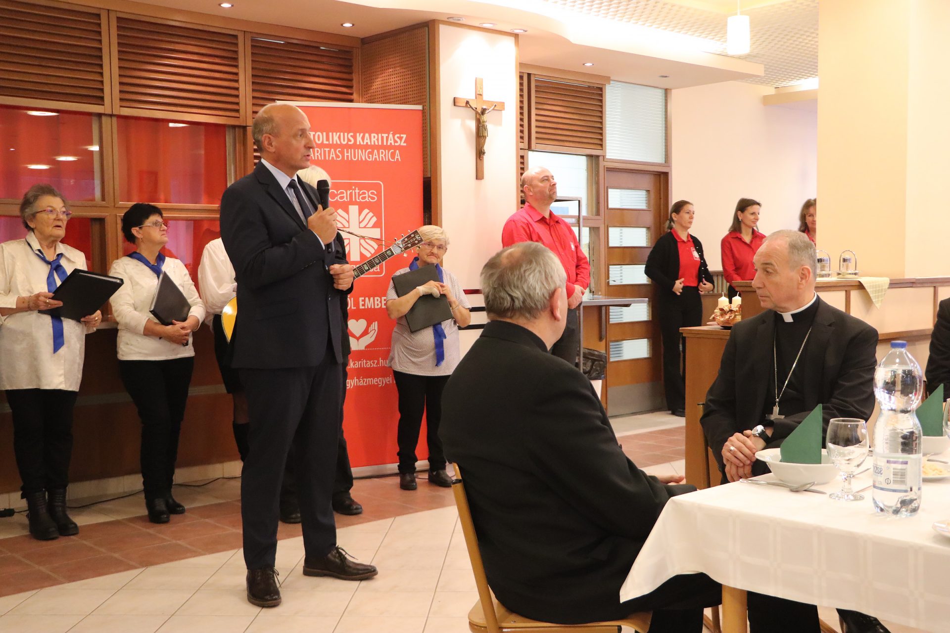 A megjelenteket Ghiczy László, a Veszprém–Főegyházmegyei Karitász igazgatója is köszöntötte. Beszédében kiemelte, hogy az advent az elcsendesedés ideje, ugyanakkor annak is, amikor újra megtanulunk egymásra figyelni. A közös jelenlét, az egymásra szánt idő olyan ajándék, amely sokszor többet ér bármilyen tárgyi segítségnél. A személyes kapcsolatok – hangsúlyozta – hosszú távon adnak erőt, bátorítást és reményt.