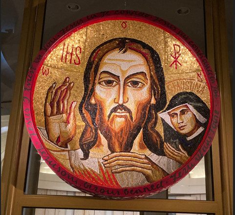 A két ország közötti magyar vonatkozások sorában igazi meglepetést az Isteni Irgalmasság Bazilikájában tett látogatásunk okozta. A csodálatos egyedülálló Bazilikát II. János Pál pápa szentelte fel 2002. augusztus 17 – én. Szent Fausztina nővérről és a templom történetéről az Irgalmasság Anyja Nővéreinek Kongregációjának szerzetesnővére mesélt a diákoknak. A templom altemplomában öt kápolna található, és közülük az egyik a magyar kápolna. Csodálatos mozaikdíszítés keretezi a falakat, melyen lengyel és magyar szentek láthatók. Ezért nevezik a kápolnát a Szentek közössége kápolnának. Megtudtuk, hogy a kápolnát a Magyar Katolikus Egyház adományaként 2004. október 9-én szentelte fel Erdő Péter bíboros, prímás, Esztergom-budapesti érsek. Az idegenvezetés közben rácsodálkozhattunk az oltár fölött látható hatalmas hársfából készült pajzsra, melyen uralkodó Krisztus látható a háttérben Fausztina nővérrel.