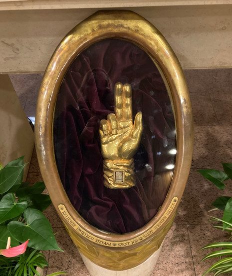 Az oltár előtt egy díszes ereklyetartóban Szent István karereklyéjének egy darabját fedeztük fel. Az ereklyét még Nagy Lajos magyar és lengyel király vitte Lengyelországba 1370-ben a két ország egységének jeléül, de Magyarországon ennek az ereklyének a létezése később feledésbe merült.
