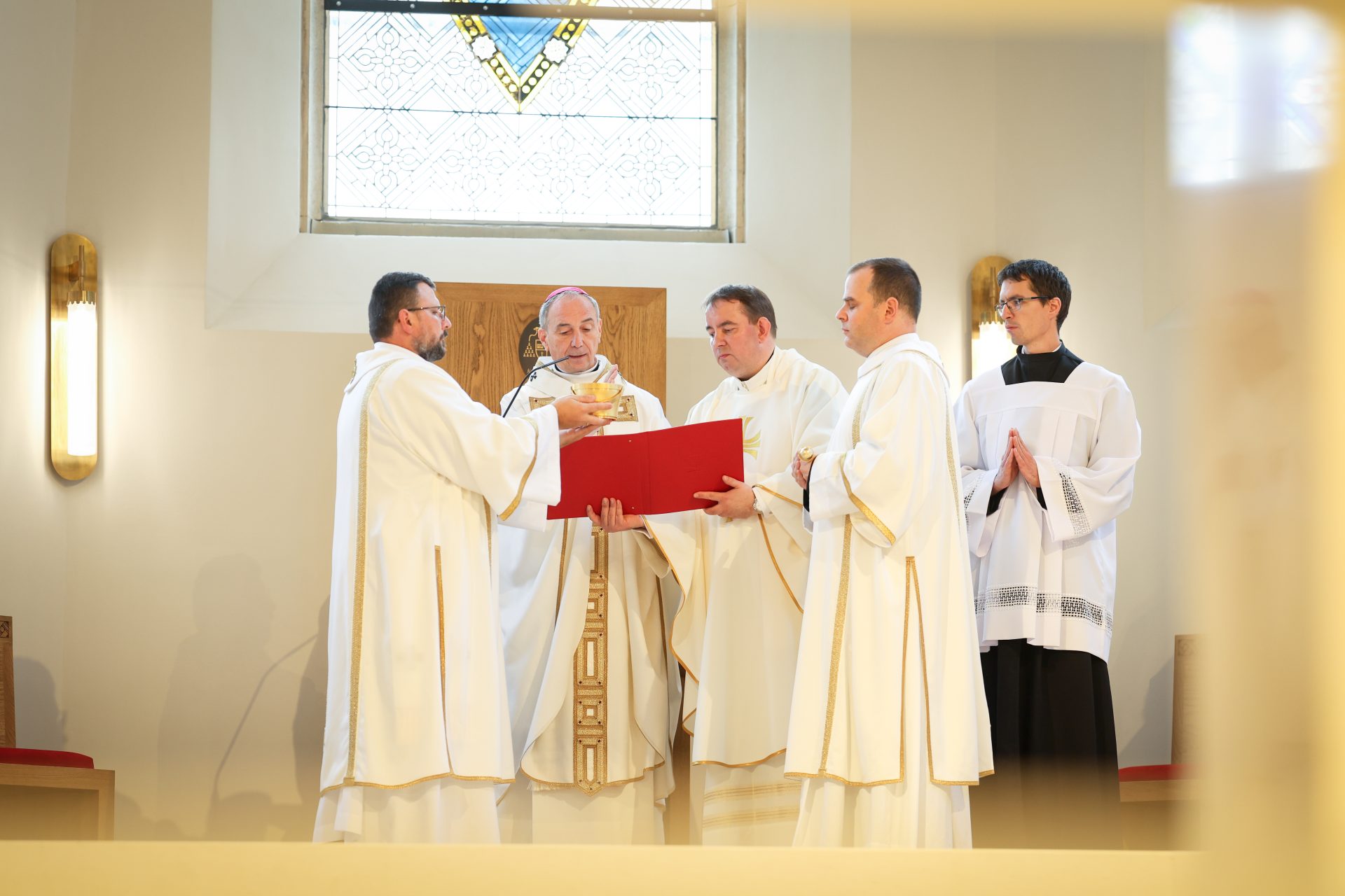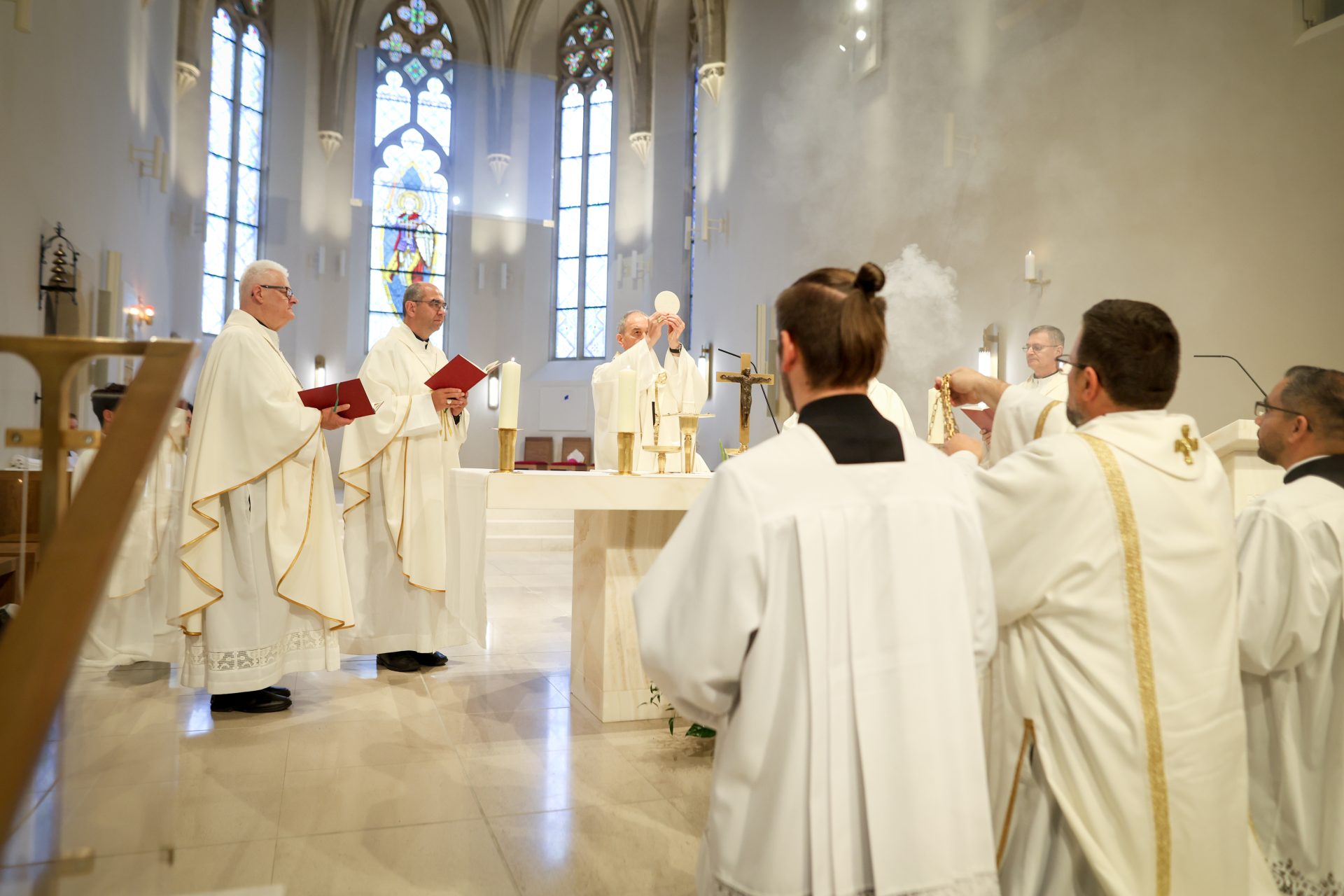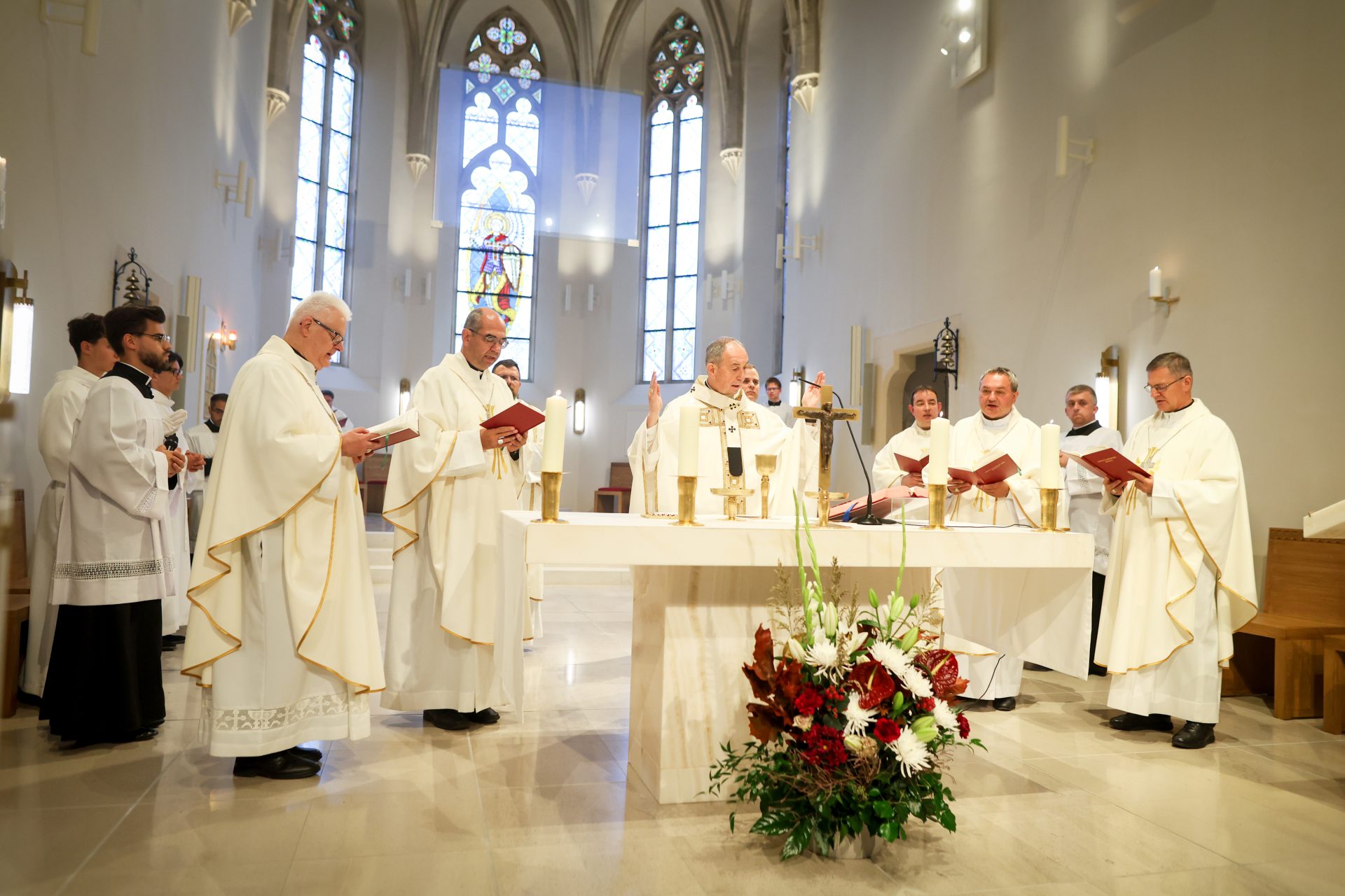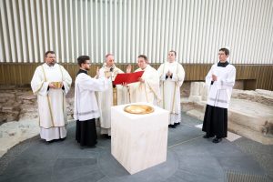 Udvardy György érsek atya a folytatásban a felszentelte a főtemplom új, ónixból készült szembemiséző oltárát, amely a templom 2023-as újranyitásakor már megáldásban részesült, és amelyben az első magyar szent család – Szent István király, Boldog Gizella királyné és Szent Imre herceg – ereklyéi nyugszanak.